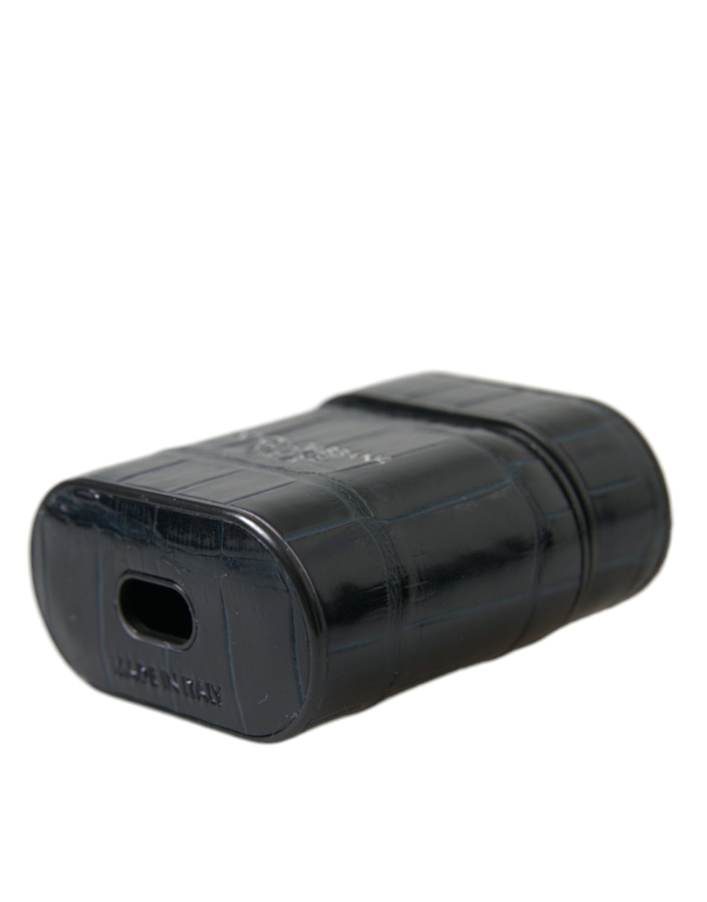 Black Crocodile Leather Silver Metal Logo Airpods Case