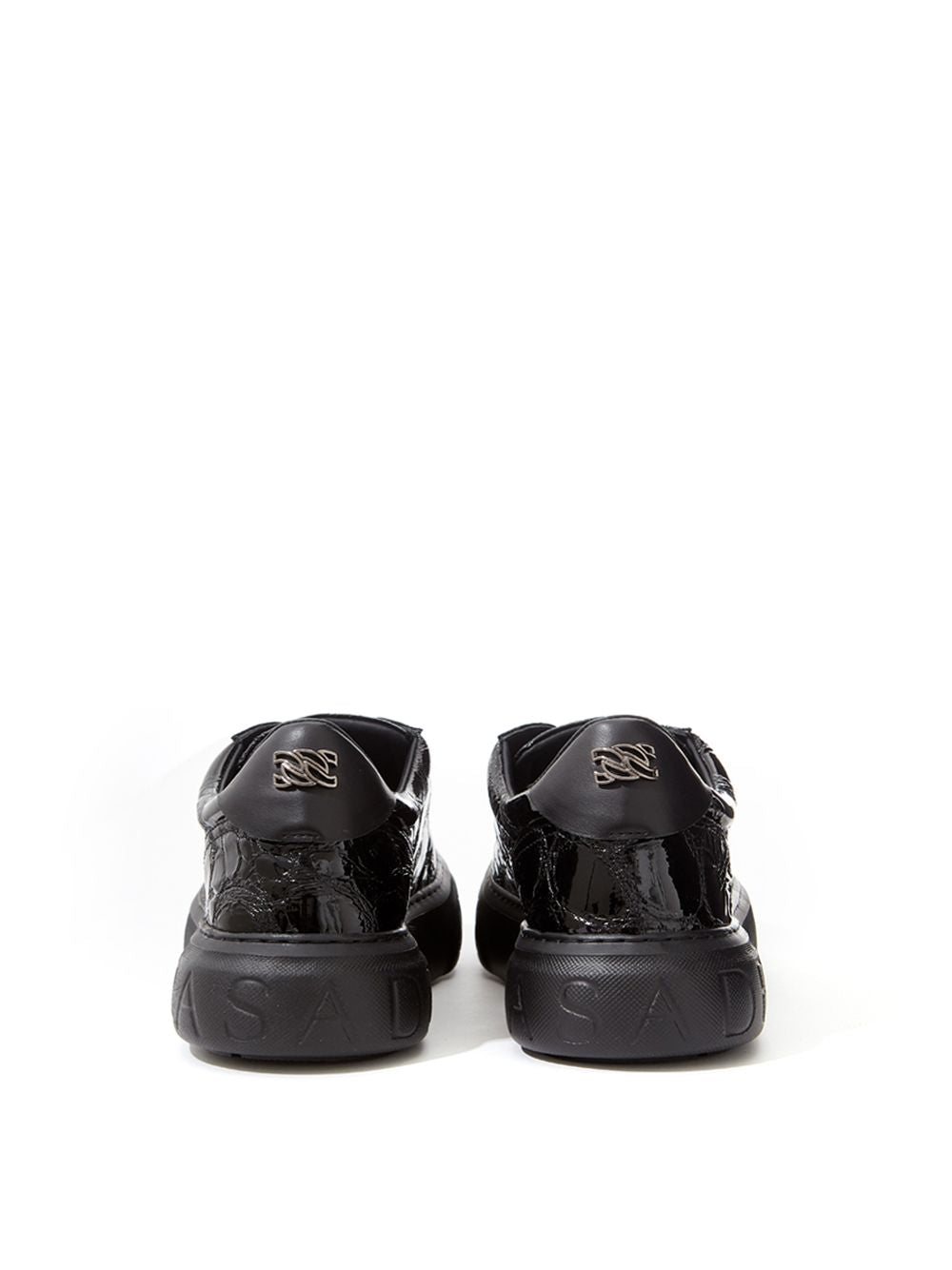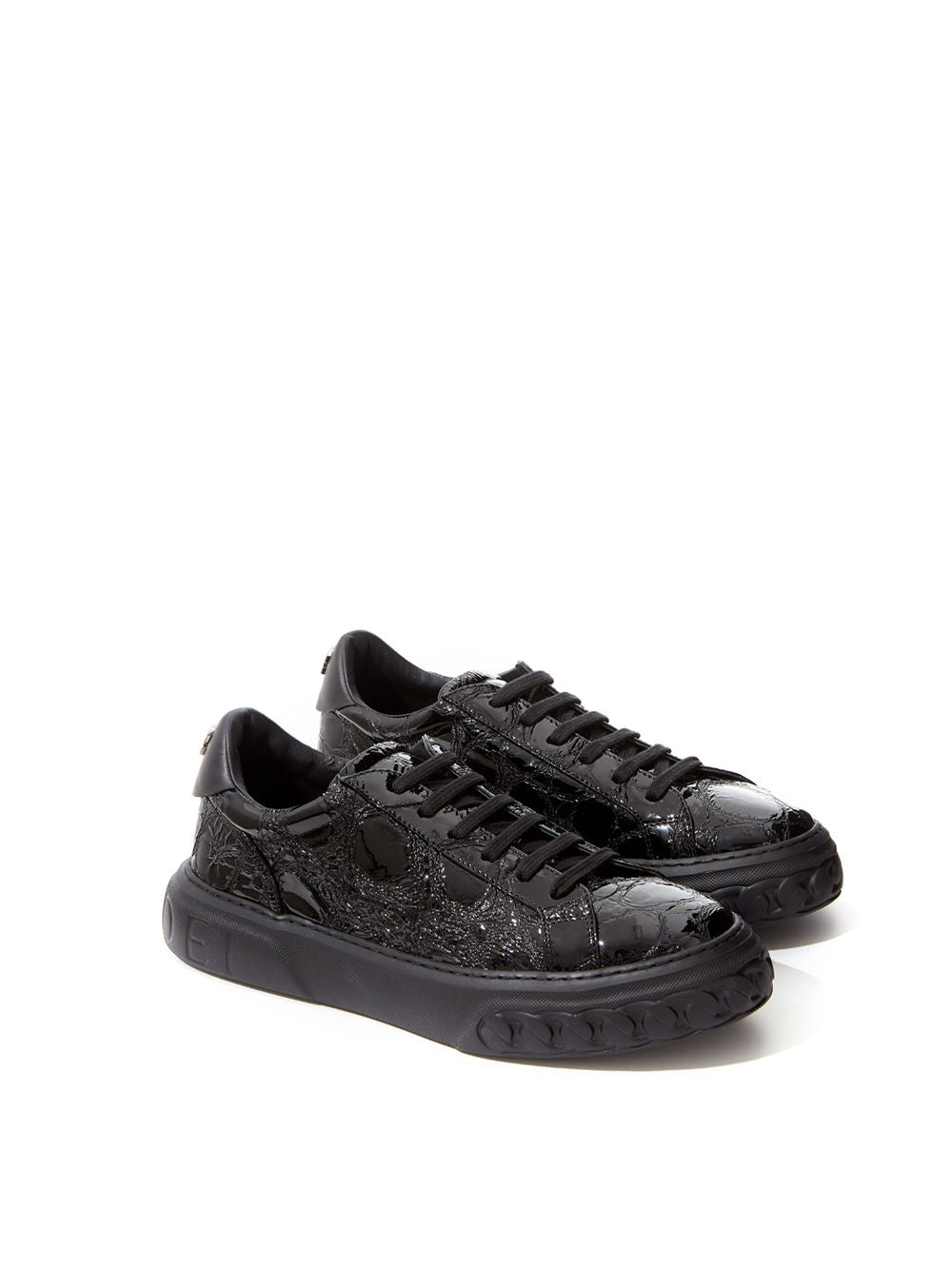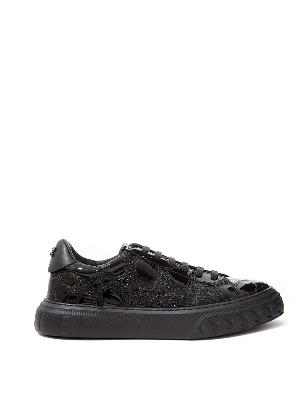Elegant Black Croc-Print Leather Sneakers