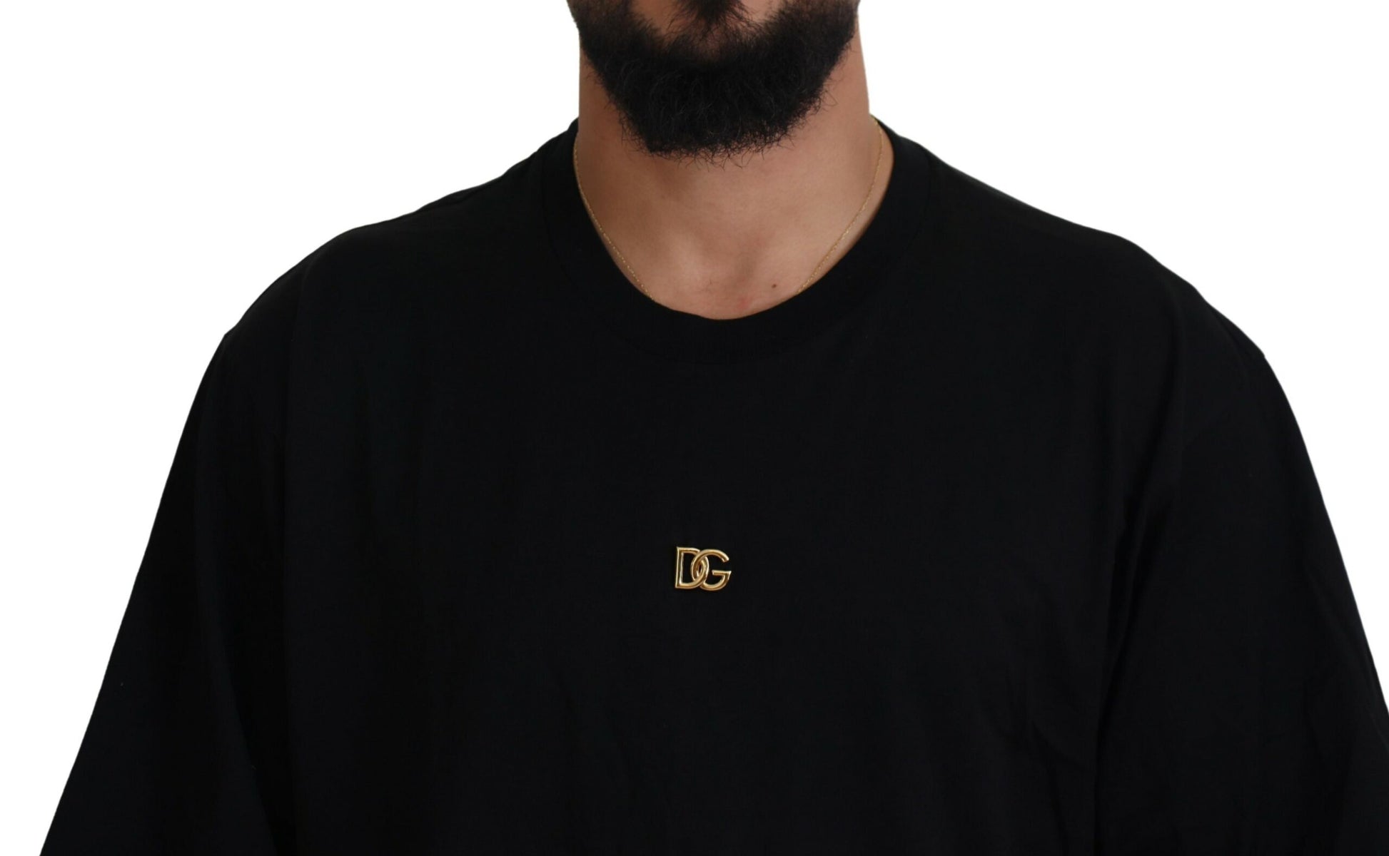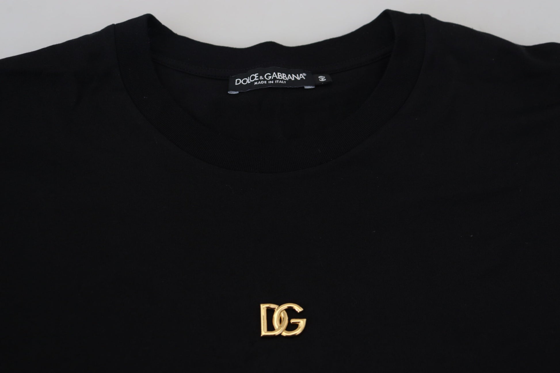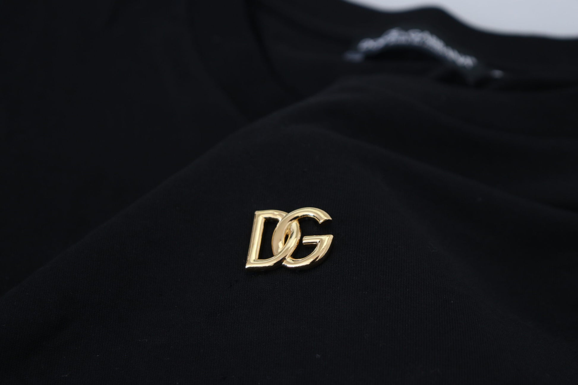 Discover the epitome of Italian luxury with our sleek and stylish crewneck t-shirt, flaunting a striking gold DG logo appliqué for a touch of opulence. Perfectly crafted by Dolce & Gabbana, this masterpiece offers both comfort and high-fashion appeal. Embrace a bold, black hue and regular fit that promises to elevate your wardrobe. Ideal for any occasion, stand out with a hallmark of designer excellence.