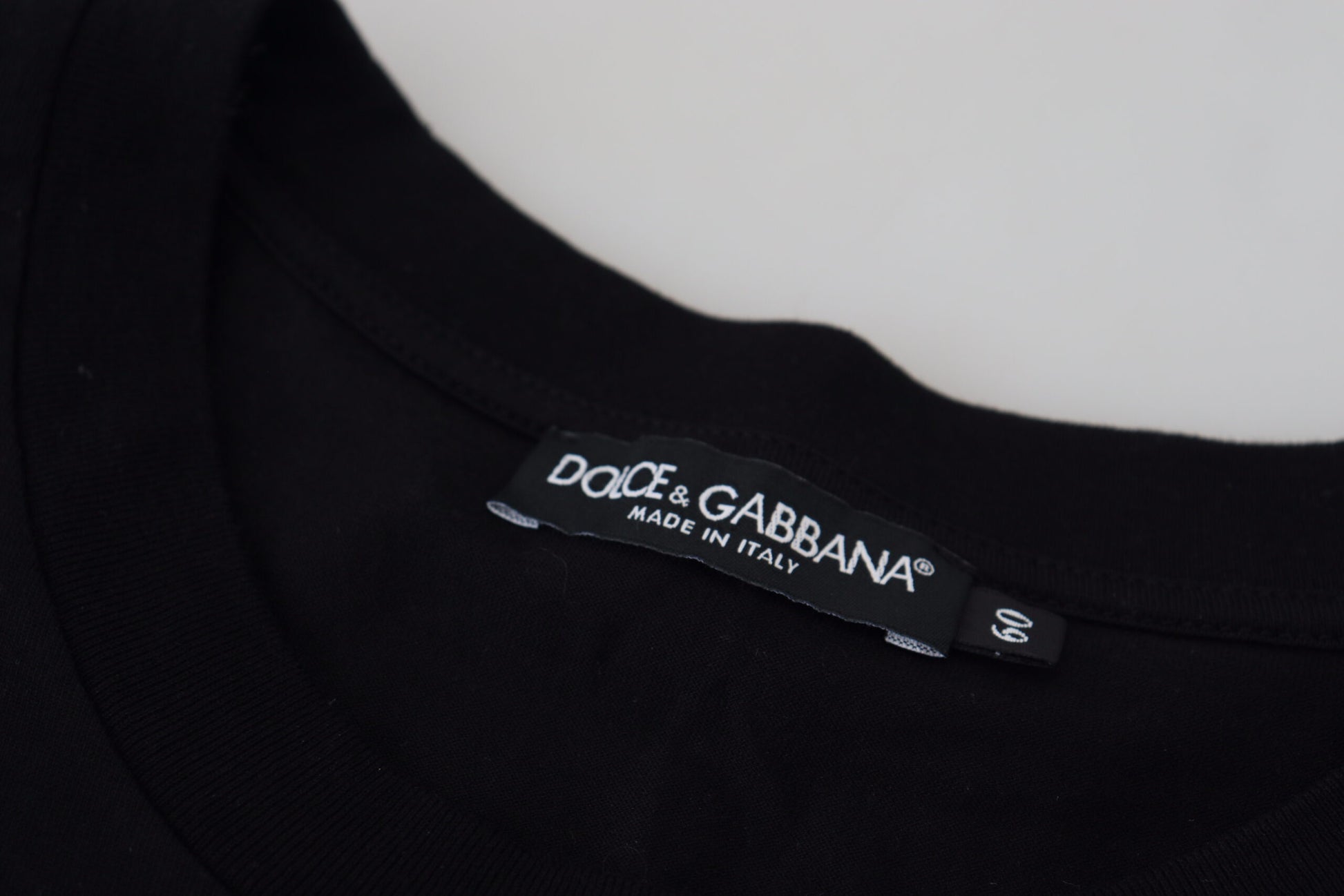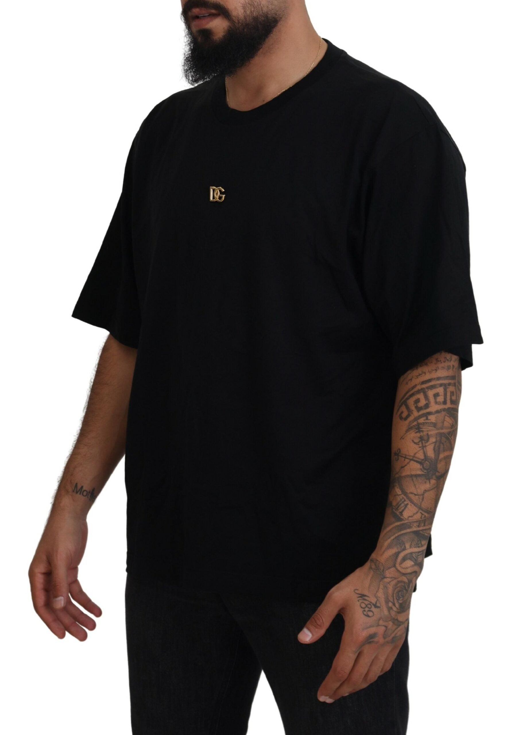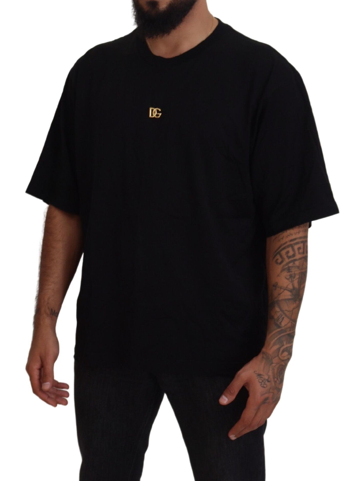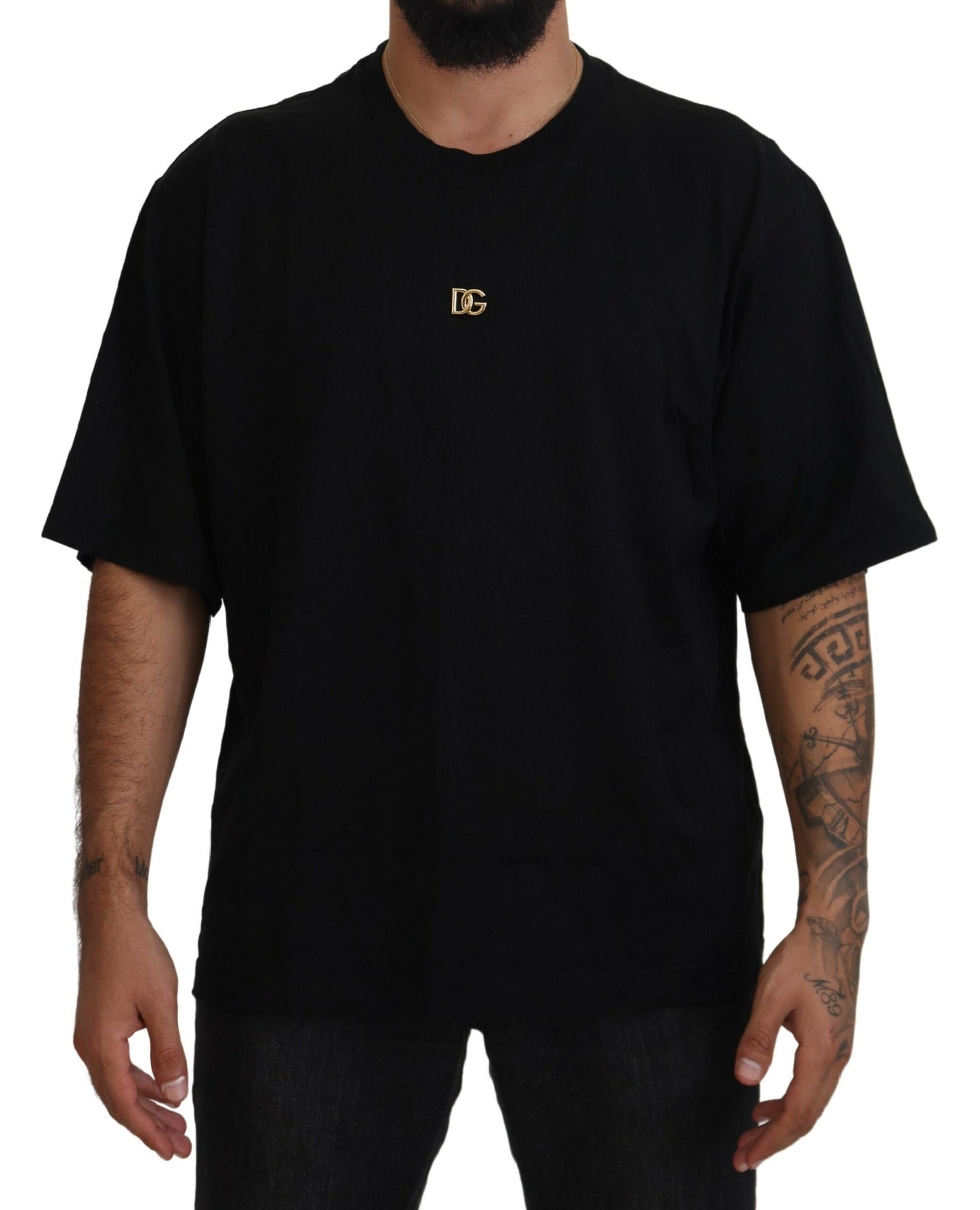 Discover the epitome of Italian luxury with our sleek and stylish crewneck t-shirt, flaunting a striking gold DG logo appliqué for a touch of opulence. Perfectly crafted by Dolce & Gabbana, this masterpiece offers both comfort and high-fashion appeal. Embrace a bold, black hue and regular fit that promises to elevate your wardrobe. Ideal for any occasion, stand out with a hallmark of designer excellence.