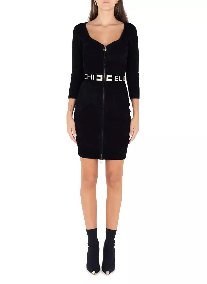 Discover the allure of a figure-accentuating sheath dress, expertly crafted from a luxurious blend of wool, acrylic, viscose, and polyamide to offer not only warmth but also an elegant drape. Featuring a gracefully shaped neckline and sophisticated three-quarter sleeves, this dress is adorned with a notable band at the waist, showcasing a subtle yet stylish logo detail. The double-slider zip closure ensures a perfect fit, making it a seamless blend of fashion and function. This exquisite piece is proudly made in Italy, attesting to its premium quality and design excellence.