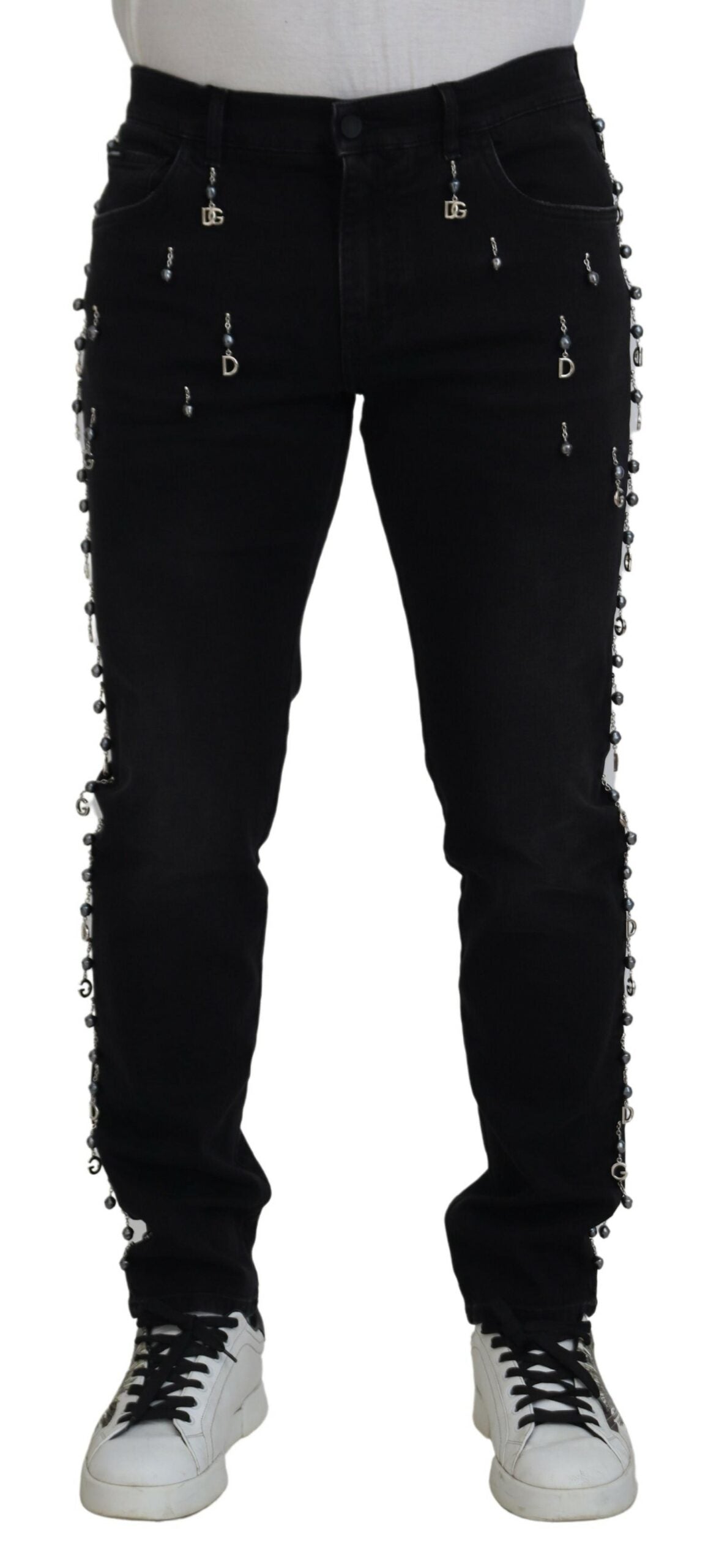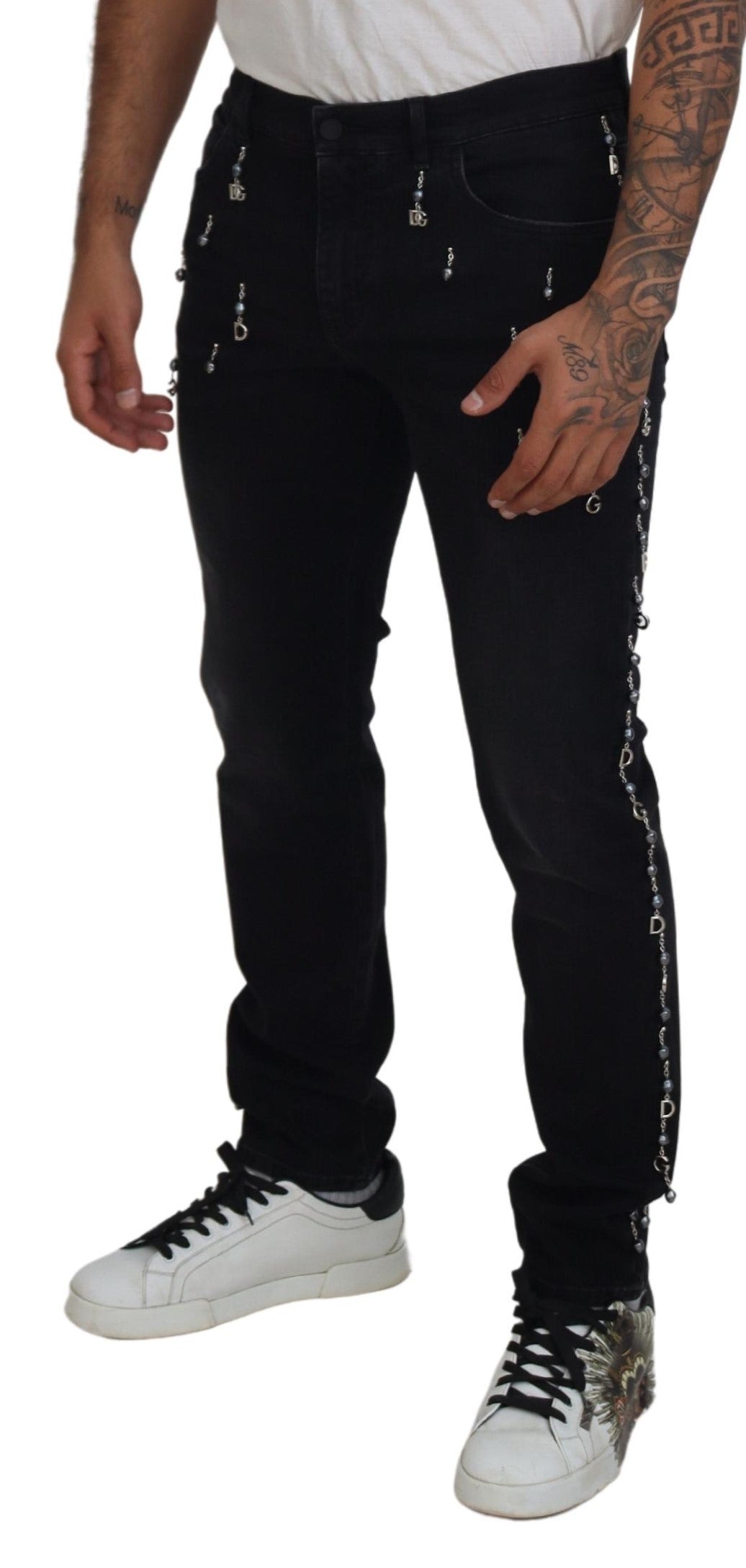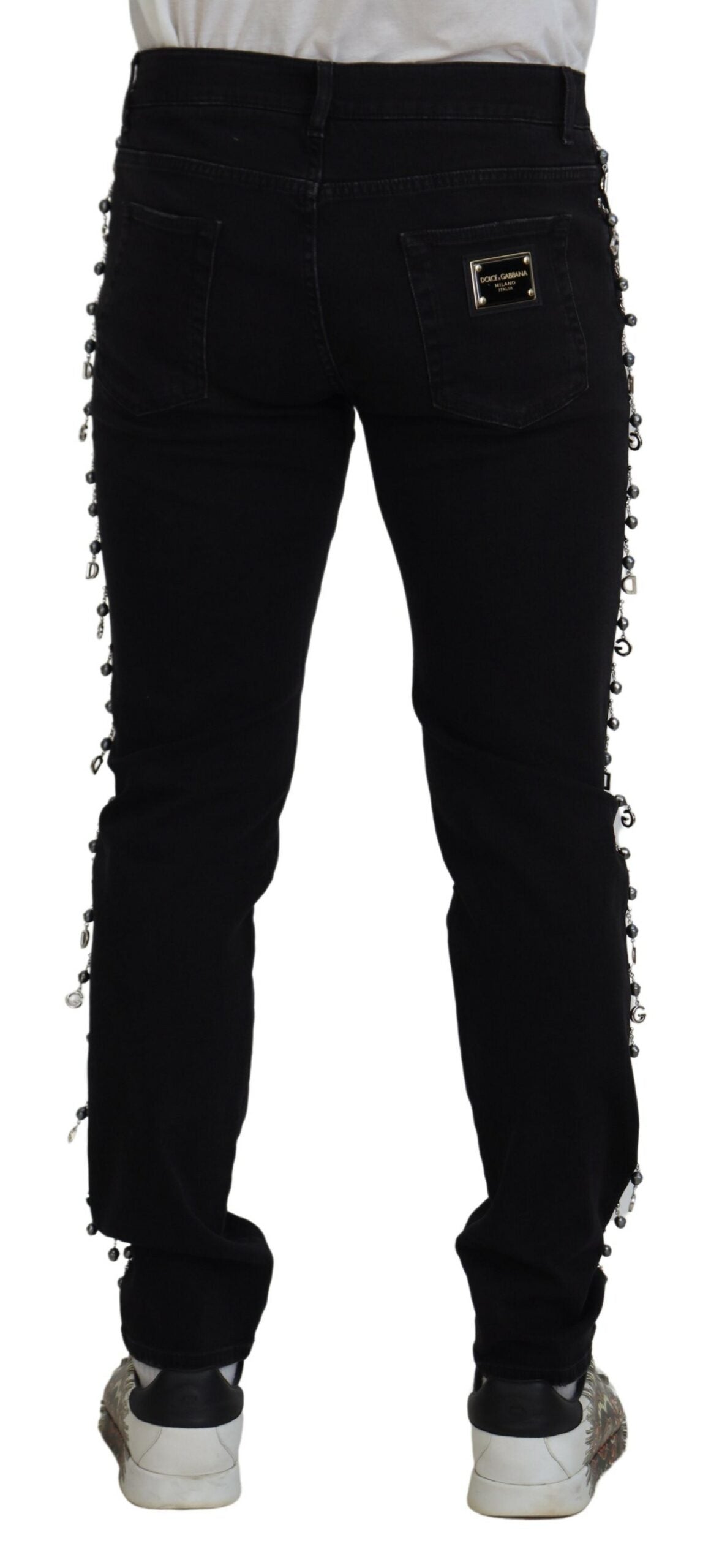 Infuse your wardrobe with a touch of Italian luxury with these exquisite black skinny jeans by Dolce & Gabbana. Crafted with the finest blend of cotton and elastane for a superior fit, these jeans boast a meticulous design, enhanced with intricate embellishments that echo the brand’s commitment to elegance and craftsmanship. Perfect for any fashion-forward individual, these jeans come new with tags from Dolce & Gabbana’s exclusive MainLine collection, ensuring authenticity and high-end style. Team them up with a crisp shirt and loafers for a refined ensemble, or go casual with a t-shirt and sneakers for an upscale, off-duty look.