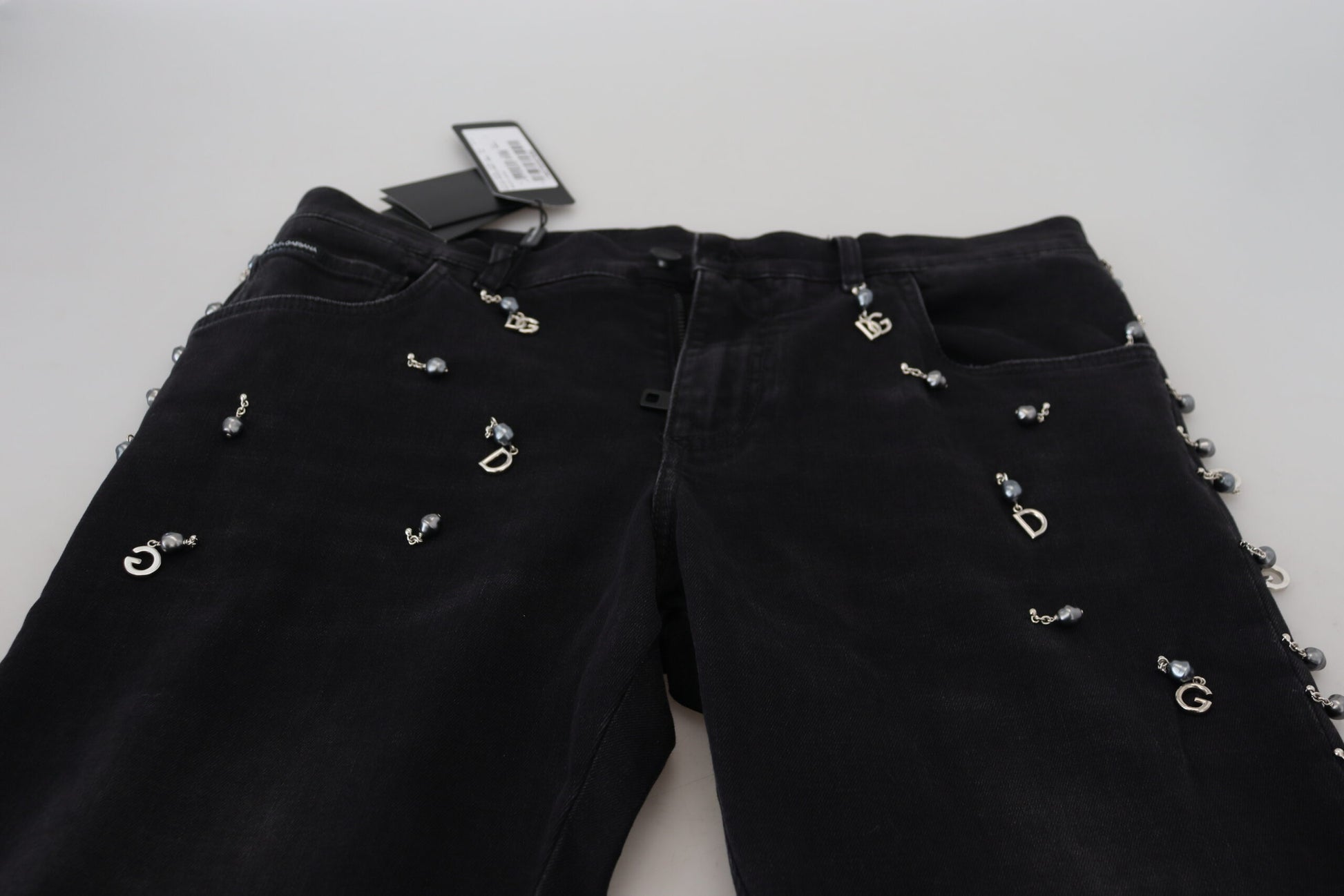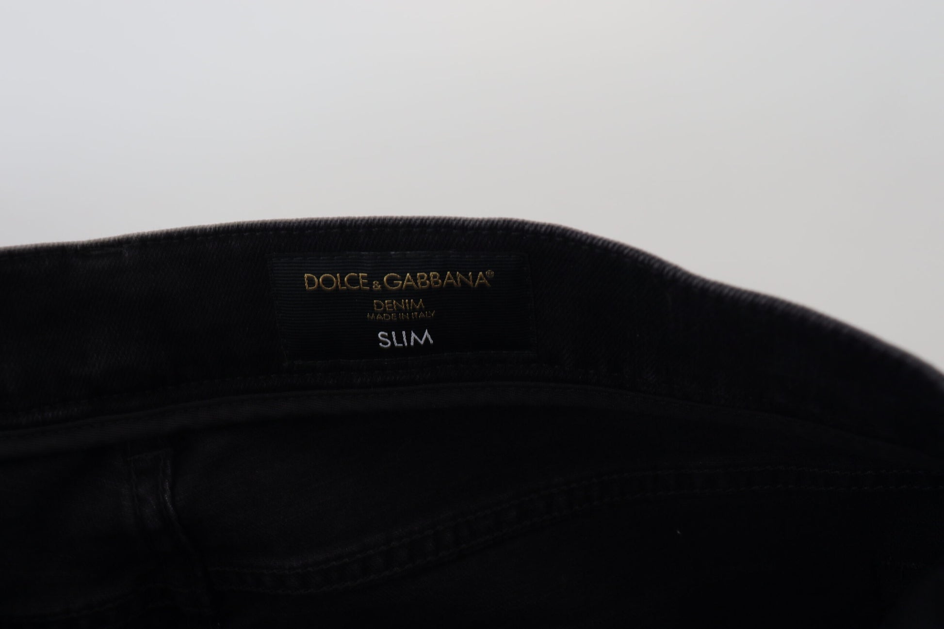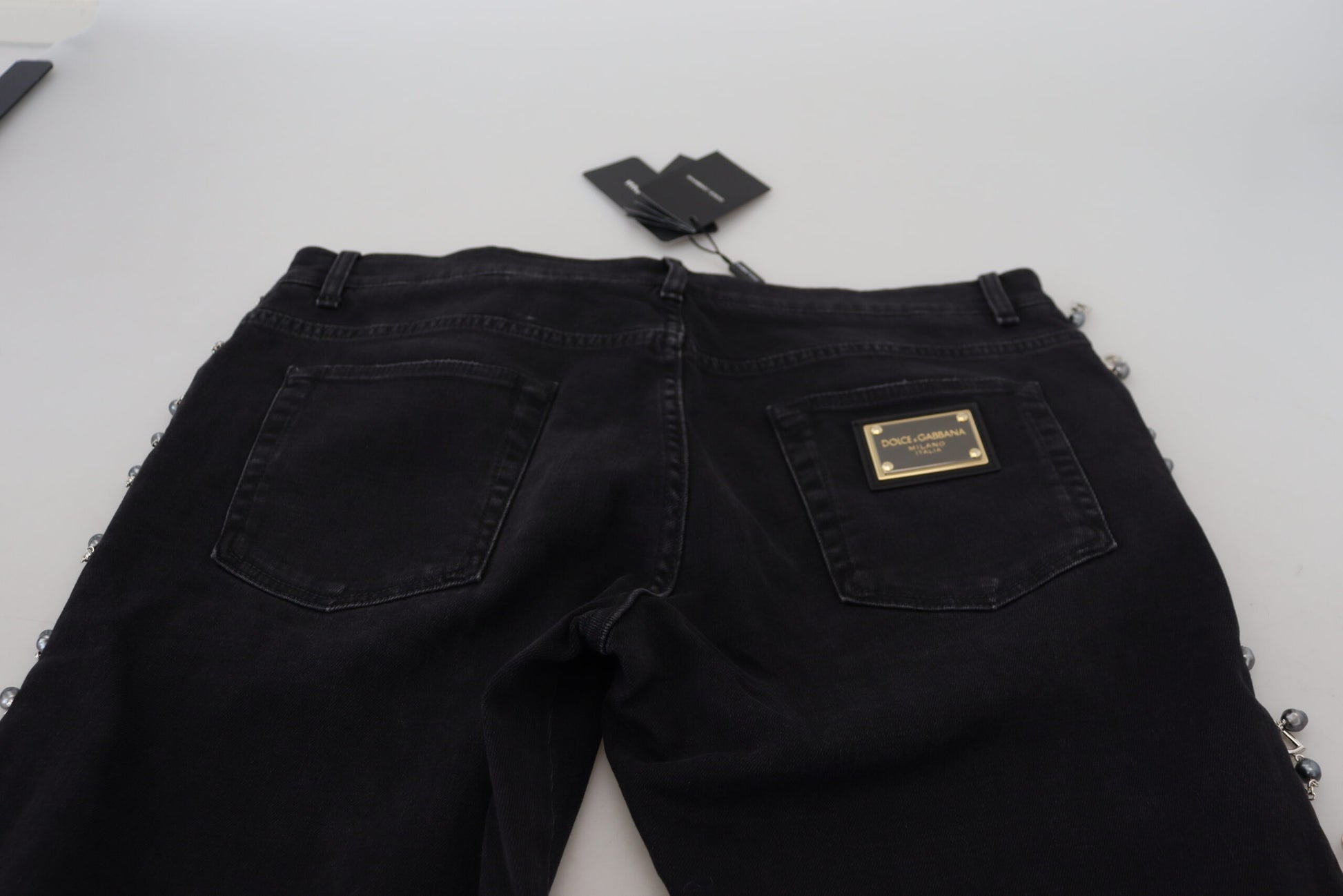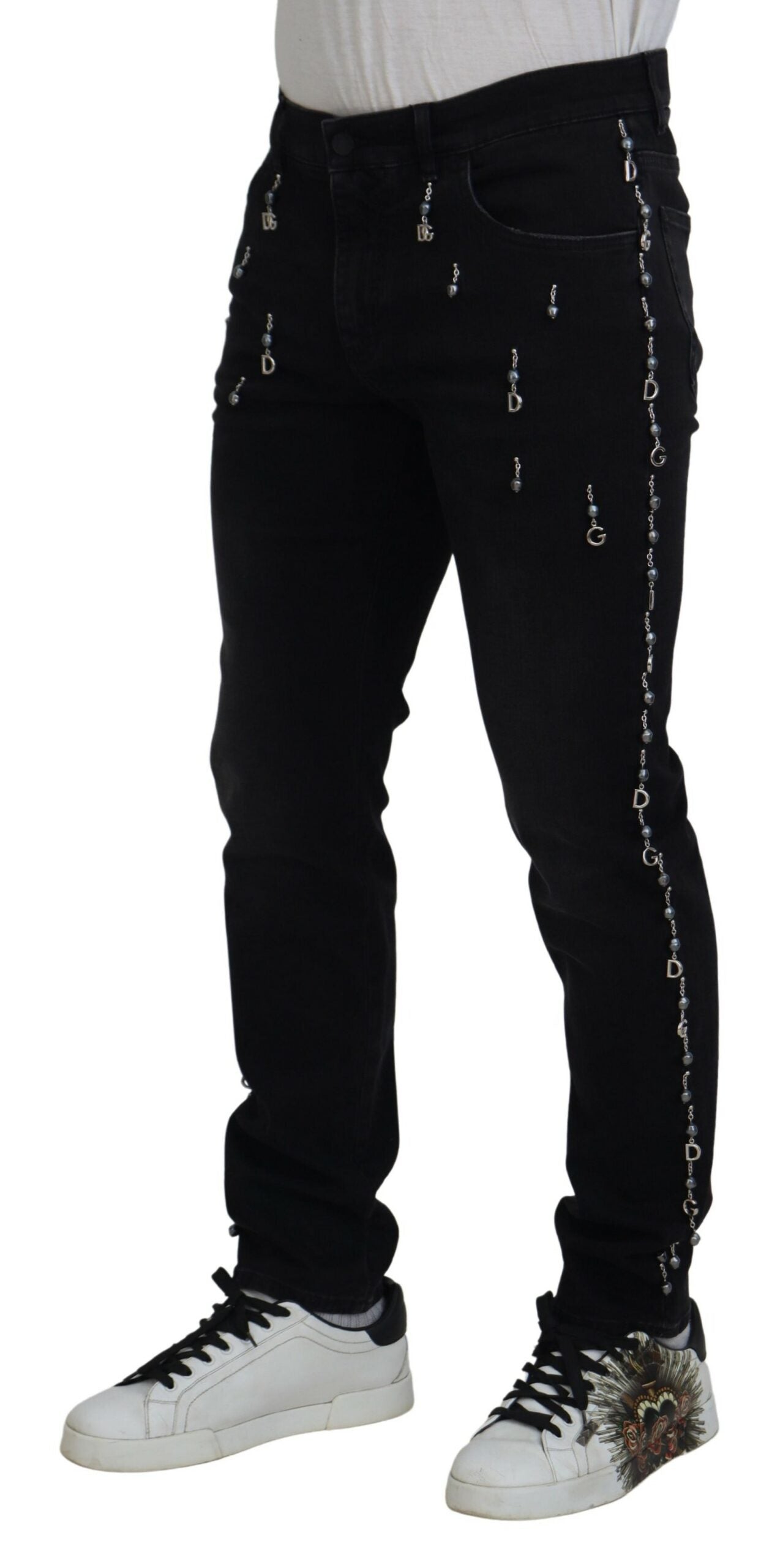 Infuse your wardrobe with a touch of Italian luxury with these exquisite black skinny jeans by Dolce & Gabbana. Crafted with the finest blend of cotton and elastane for a superior fit, these jeans boast a meticulous design, enhanced with intricate embellishments that echo the brand’s commitment to elegance and craftsmanship. Perfect for any fashion-forward individual, these jeans come new with tags from Dolce & Gabbana’s exclusive MainLine collection, ensuring authenticity and high-end style. Team them up with a crisp shirt and loafers for a refined ensemble, or go casual with a t-shirt and sneakers for an upscale, off-duty look.