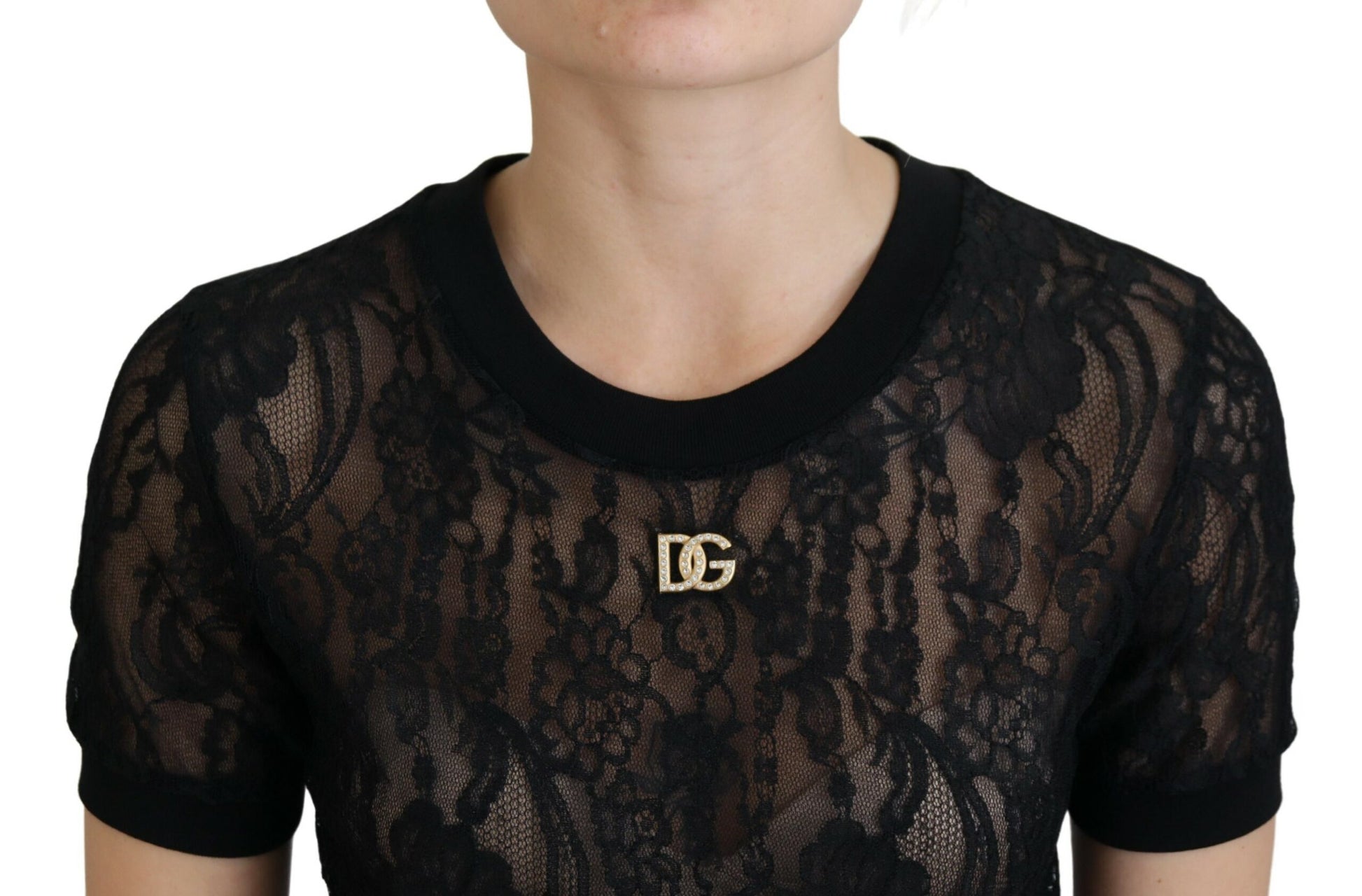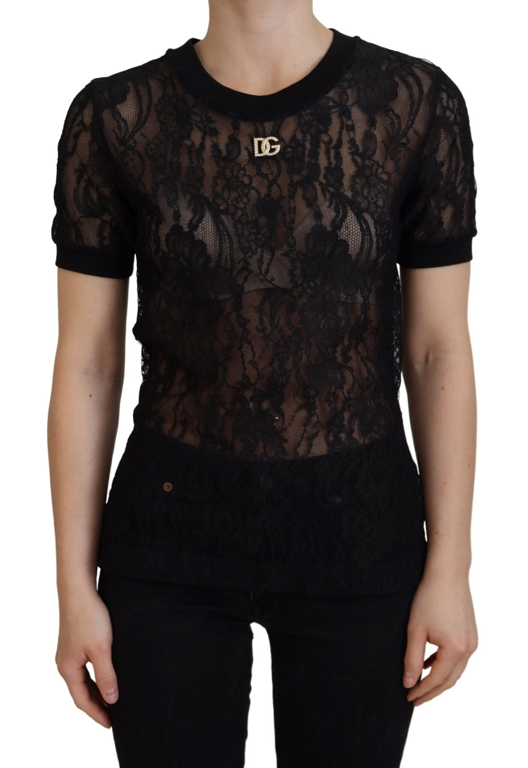 Discover the epitome of elegance with this gorgeous black lace top from the luxurious Dolce & Gabbana collection. Meticulously crafted, this blouse elegantly combines the sophistication of silk with the comfort of cotton, designed to add a touch of Italian finesse to your wardrobe. Perfect for upscale events or that special evening out, this piece is a testament to timeless style and the brand’s attention to detail.