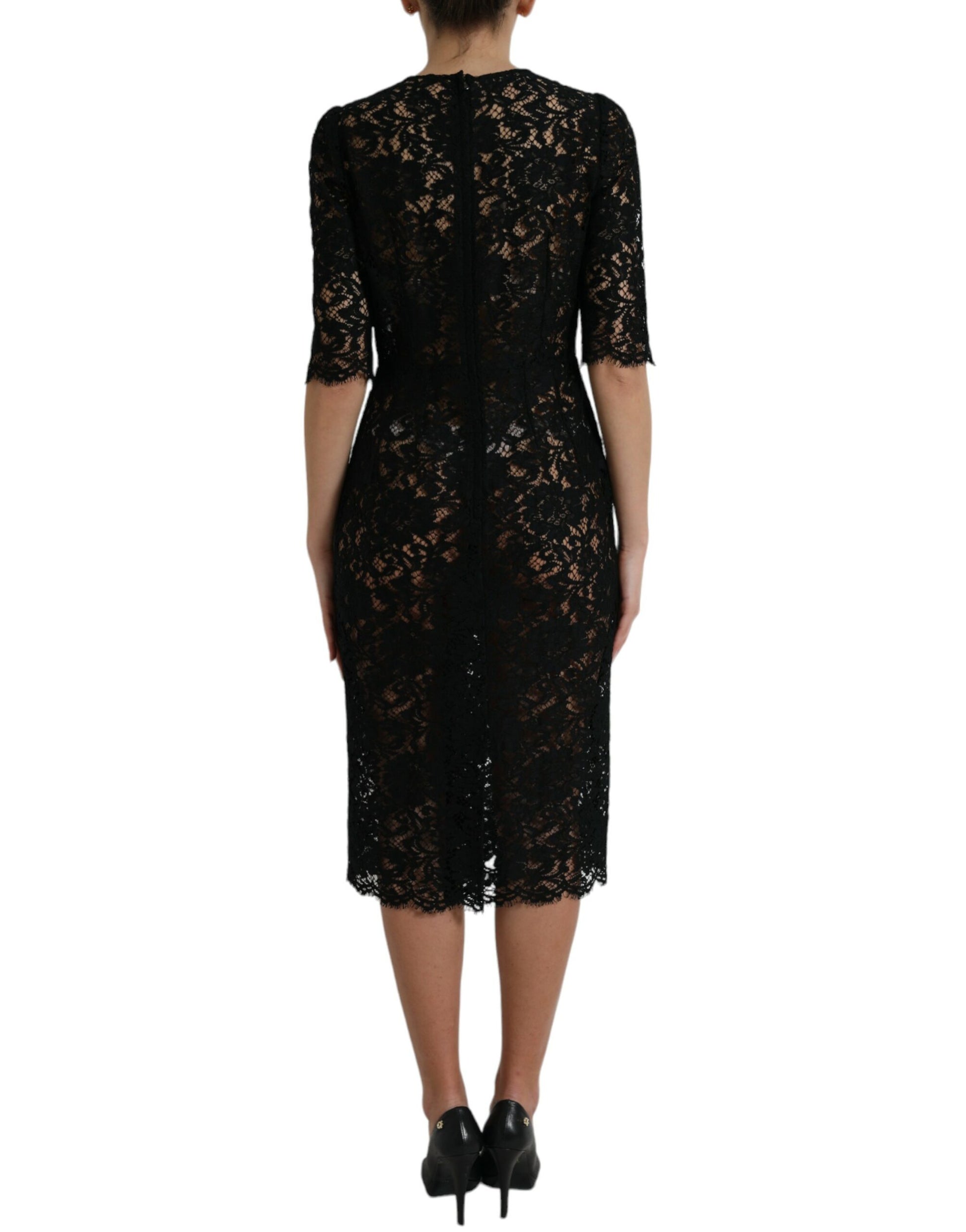Gorgeous brand new with tags, 100% Authentic Dolce & Gabbana black floral lace sheath midi dress.