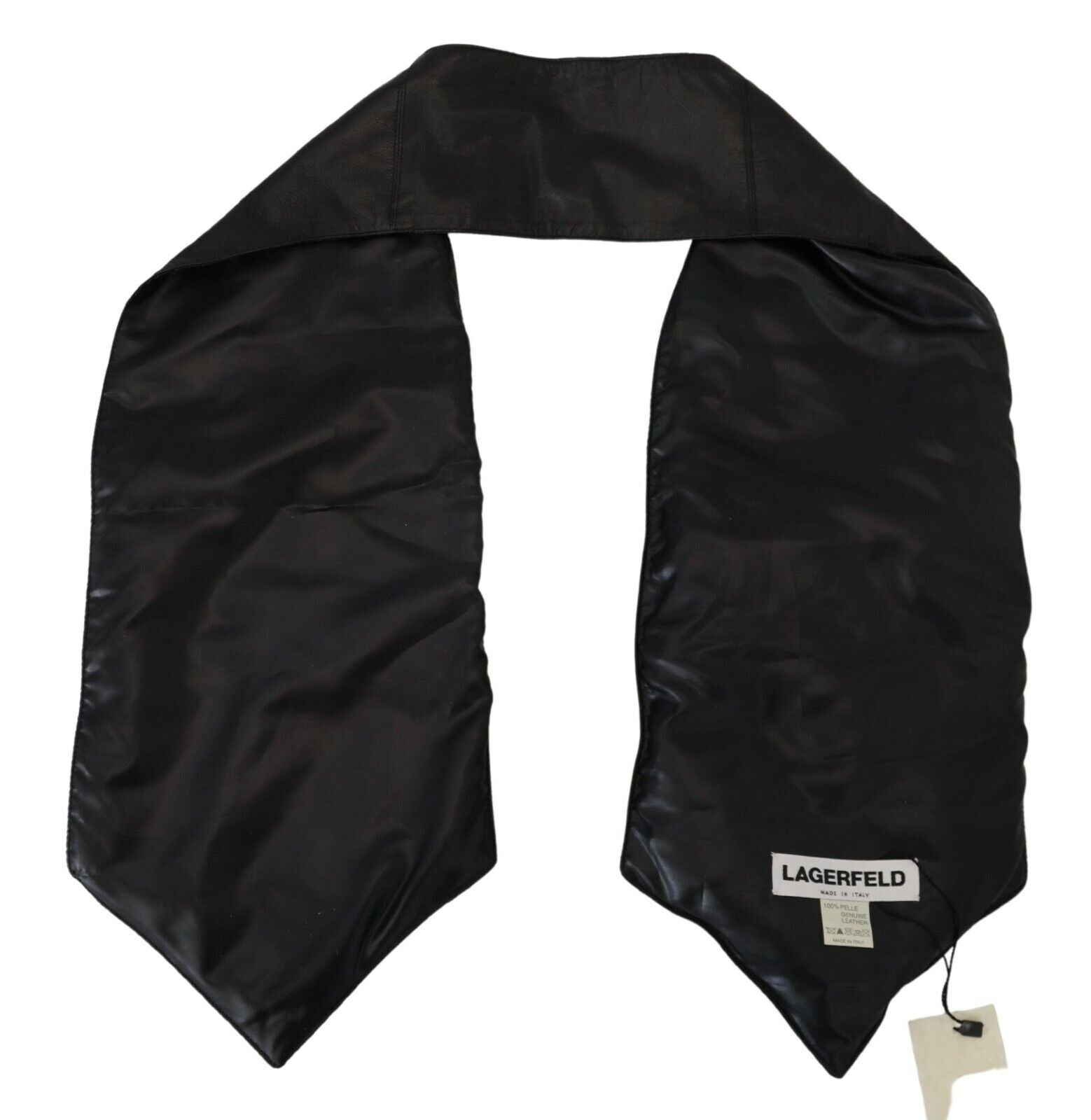 Discover the epitome of sophistication with this Karl Lagerfeld leather tie. Its sleek black hue and exquisite material make it an essential accessory for any fashion-forward individual. Perfect for adding a touch of luxury to your formal attire, this tie promises to elevate your style quotient with Karl Lagerfeld’s renowned design aesthetic.