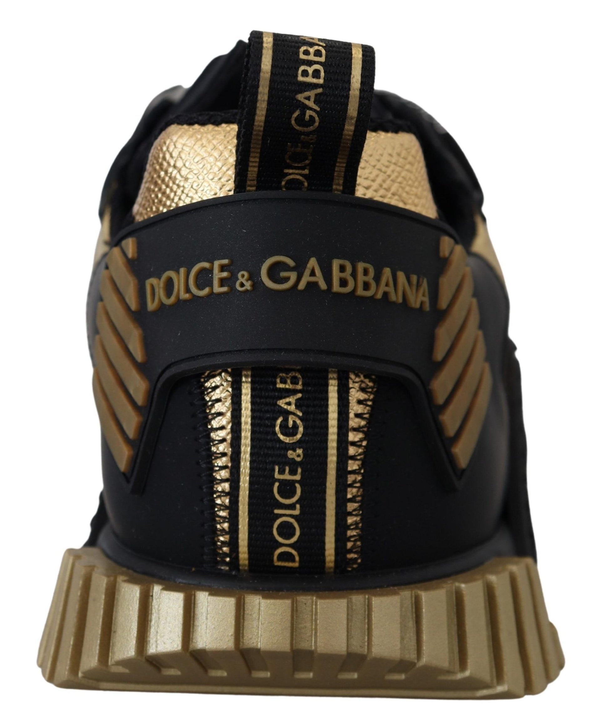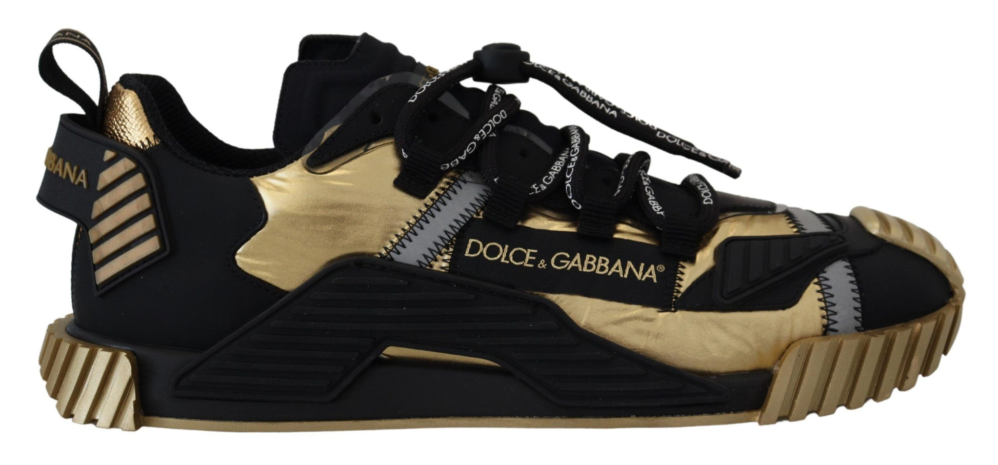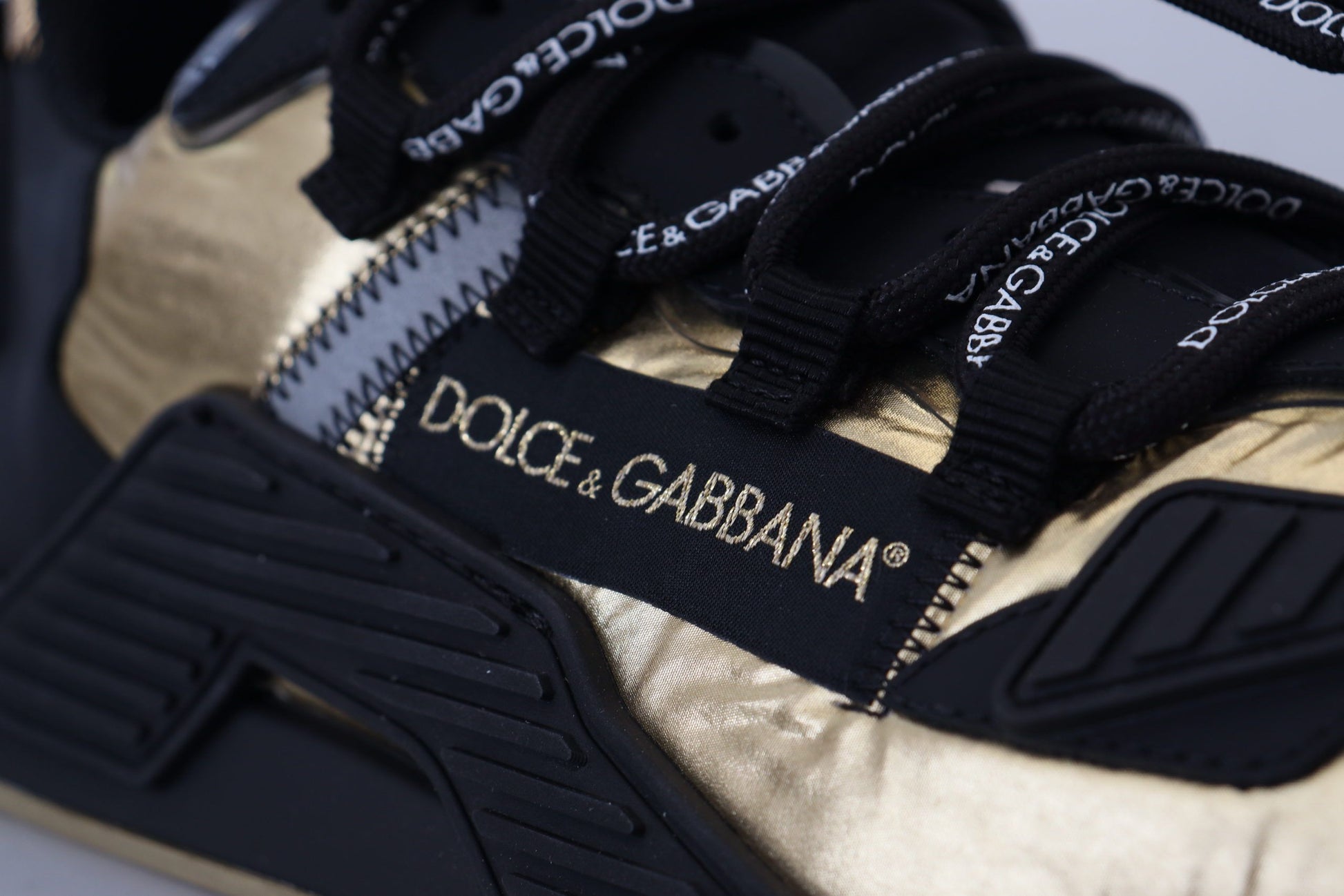 Discover the epitome of Italian craftsmanship with these stunning Dolce & Gabbana NS1 Sneakers. Perfect for fashion-forward individuals, these shoes blend comfort and style seamlessly. The unique combination of nylon, leather, elastane, PVC, cotton, viscose, and acetate guarantees both durability and a touch of luxury. Dressed in a sophisticated black with gold accents, including the brand’s iconic logo, these sneakers will elevate your daily ensemble.