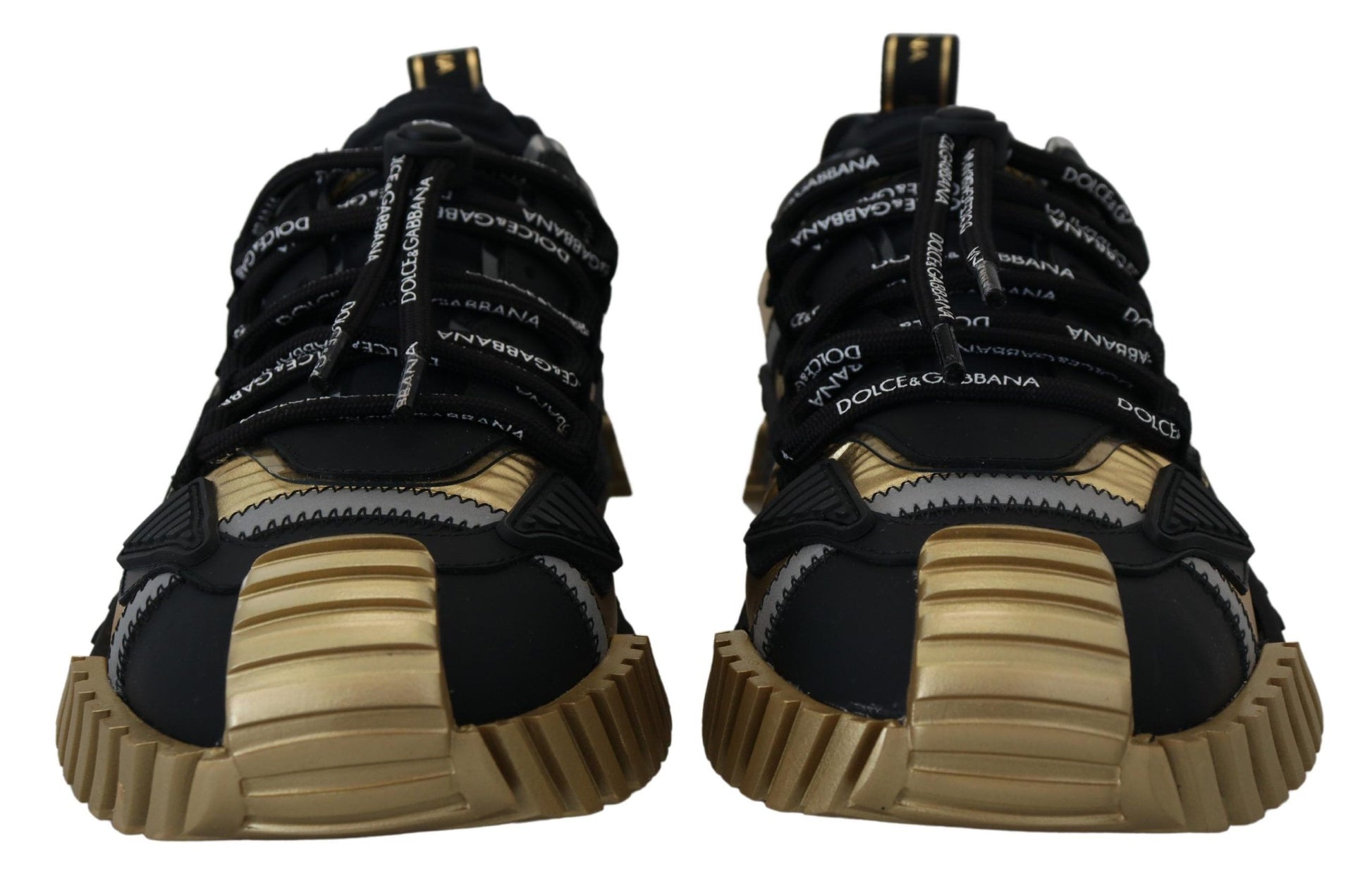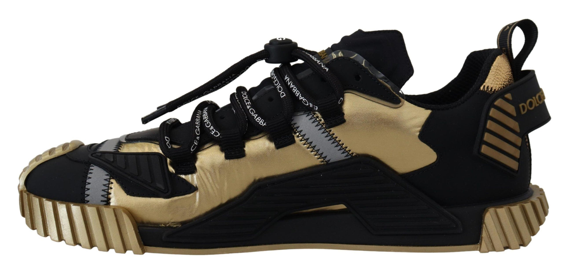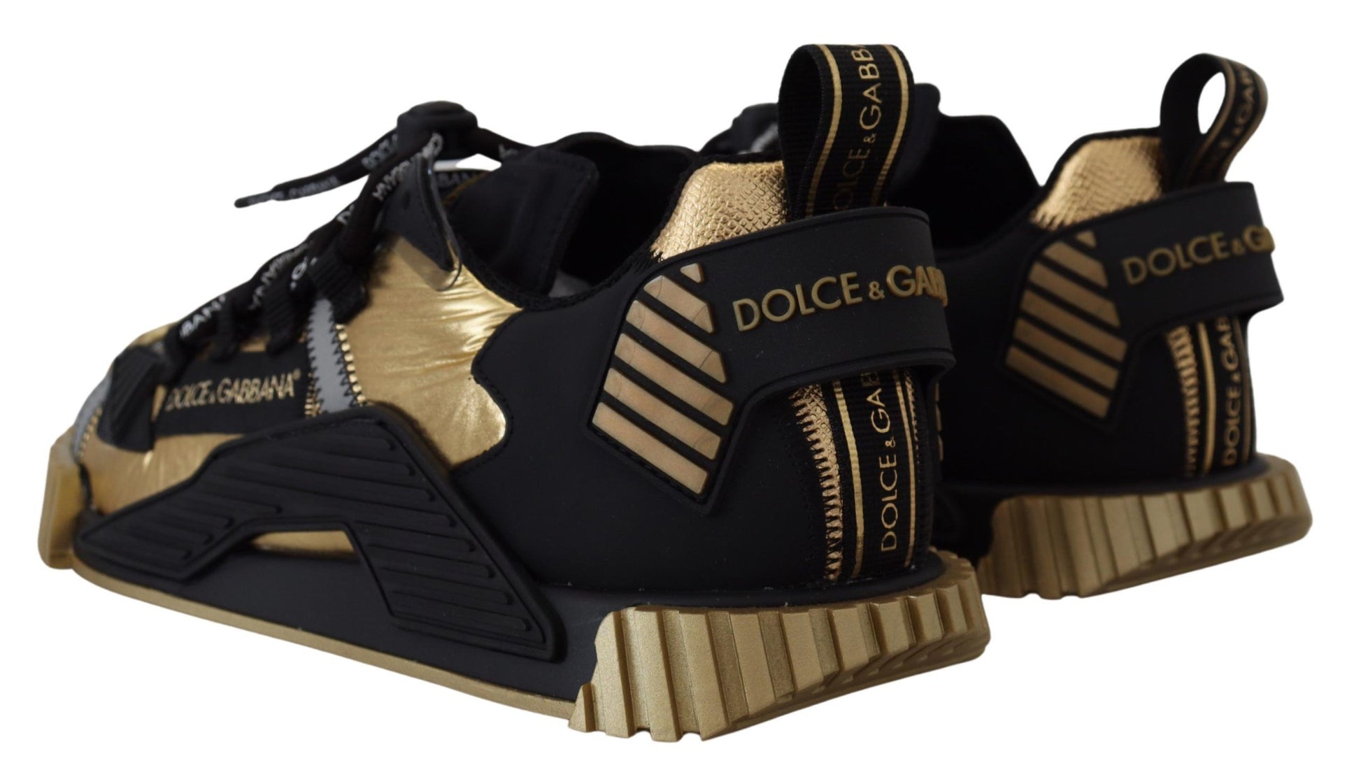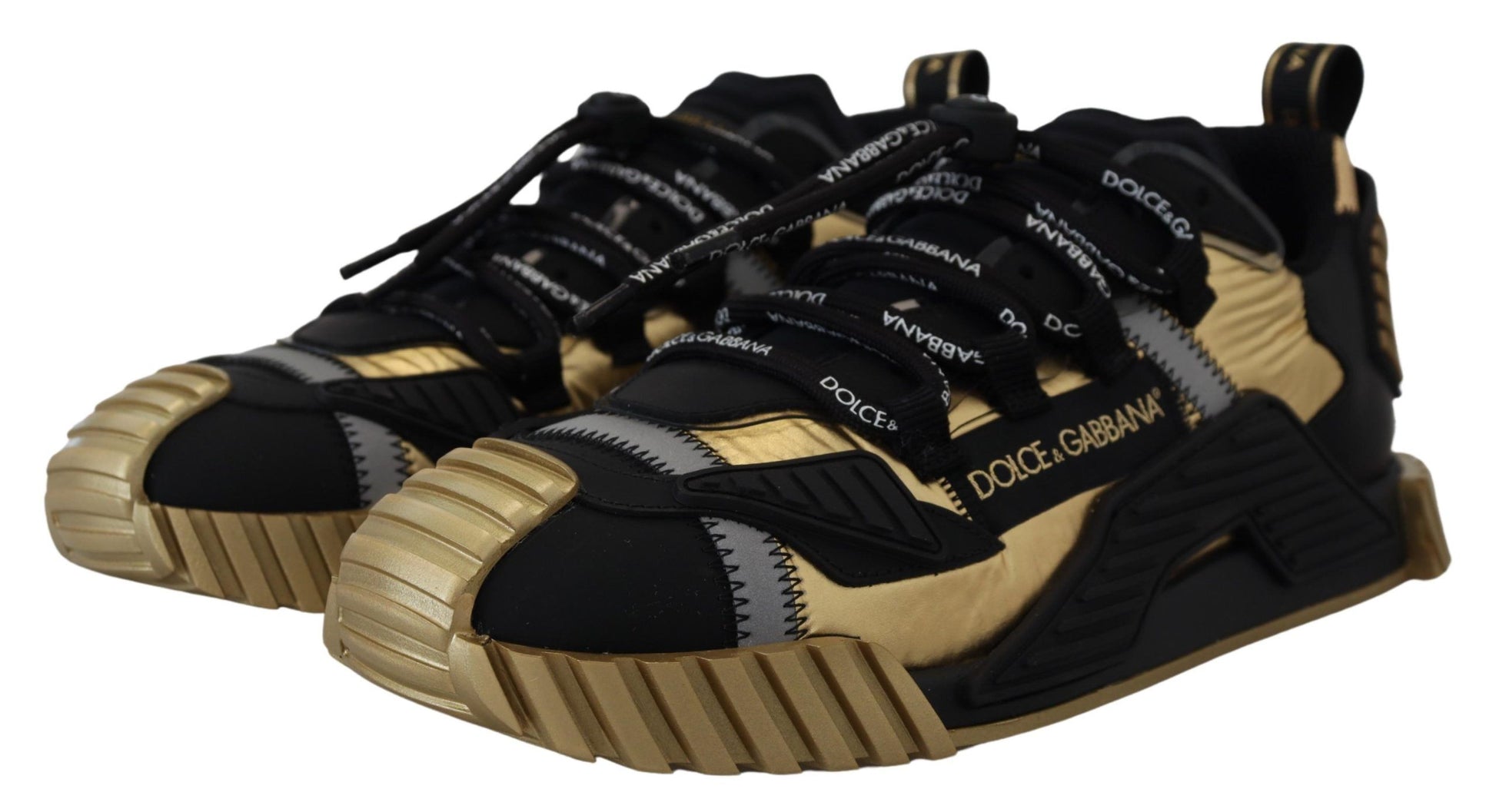 Discover the epitome of Italian craftsmanship with these stunning Dolce & Gabbana NS1 Sneakers. Perfect for fashion-forward individuals, these shoes blend comfort and style seamlessly. The unique combination of nylon, leather, elastane, PVC, cotton, viscose, and acetate guarantees both durability and a touch of luxury. Dressed in a sophisticated black with gold accents, including the brand’s iconic logo, these sneakers will elevate your daily ensemble.