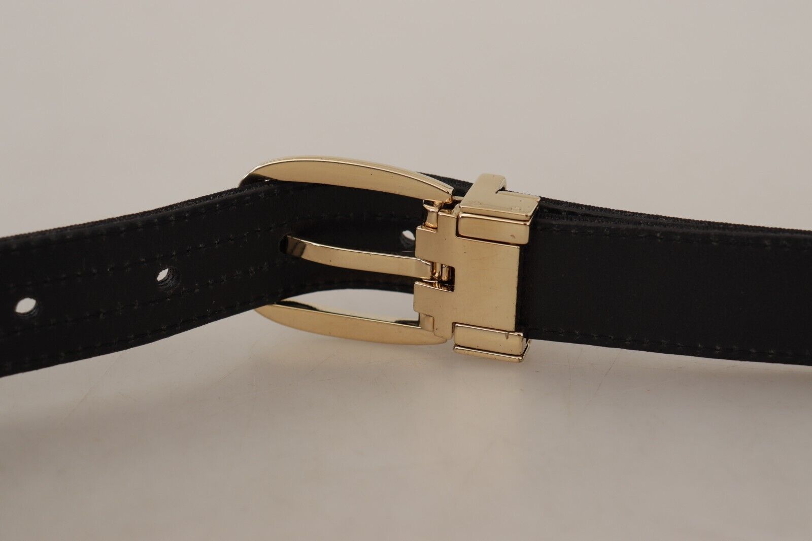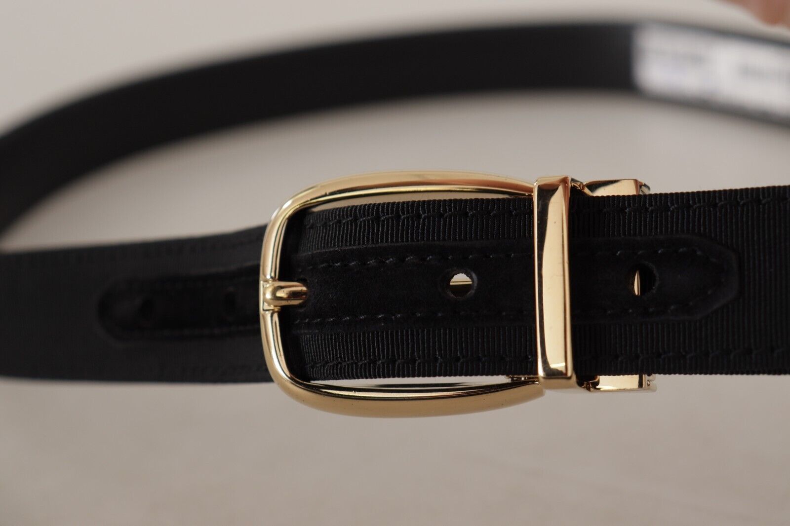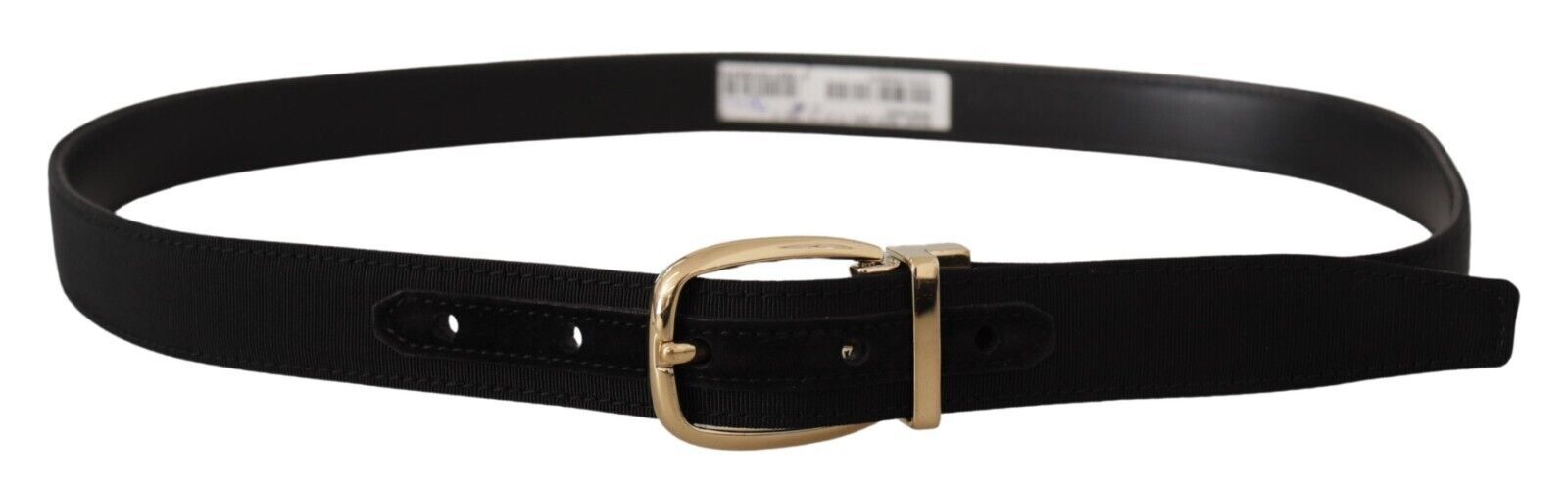 Indulge in the epitome of Italian craftsmanship with this luxurious black grosgrain leather belt from Dolce & Gabbana. This stunning accessory is perfect for adding a touch of elegance and sophistication to any ensemble, featuring a striking gold tone buckle that is sure to make a statement. Exceptionally crafted and designed to uplift your style quotient, this belt is a must-have for those who appreciate the finer things in life.