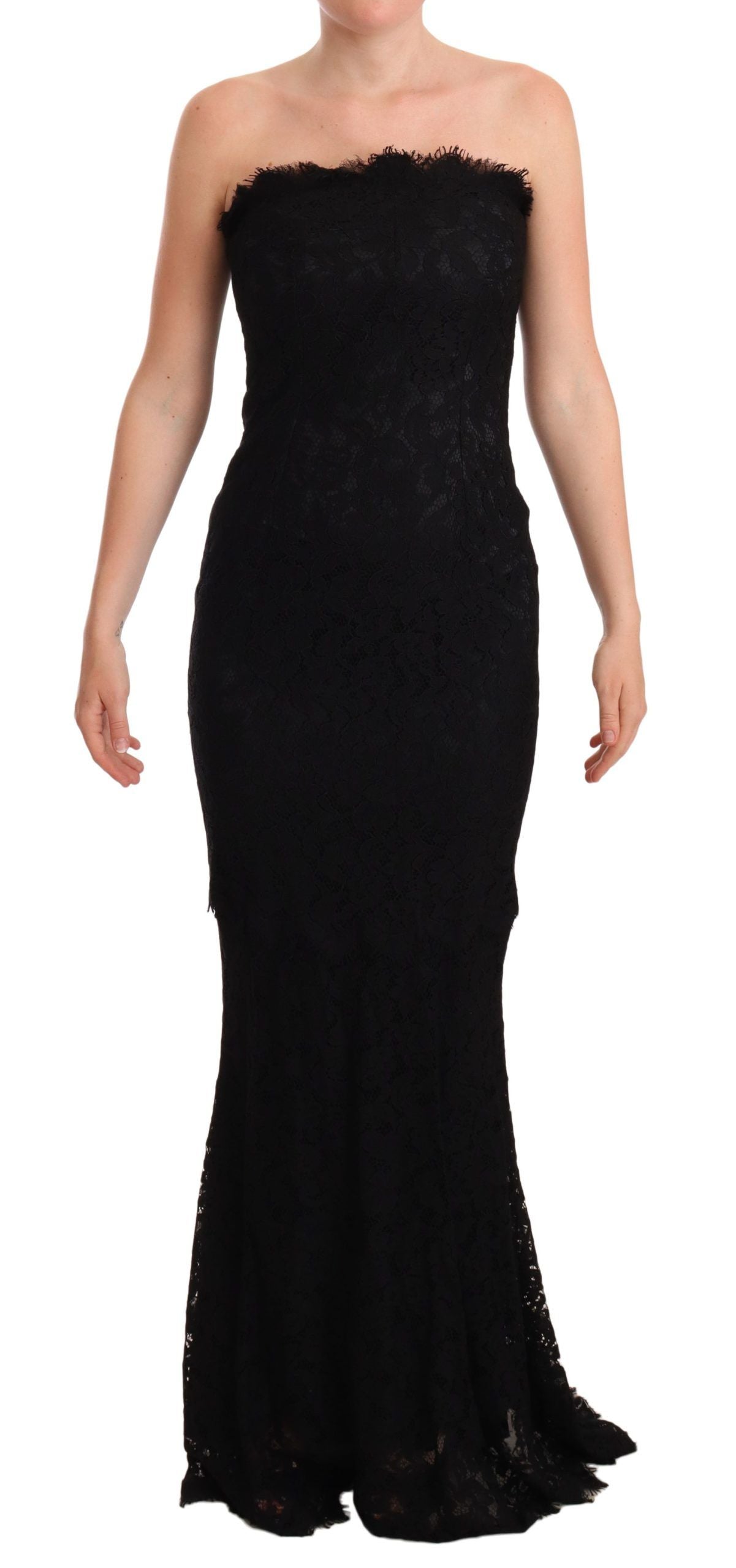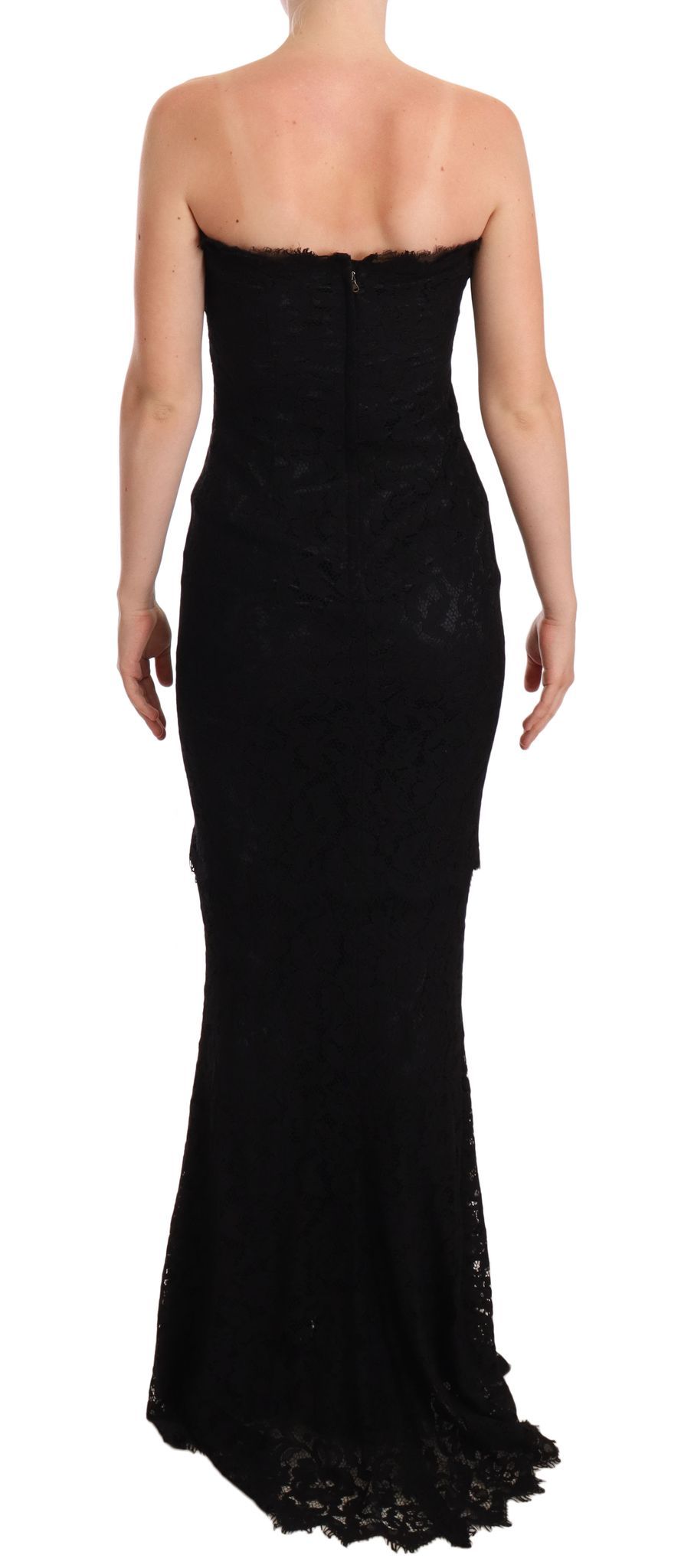 Indulge in the epitome of elegance with this stunning strapless mermaid long gown by Dolce & Gabbana. Crafted with care in Italy, this gorgeous dress boasts a sleek black color that exudes timeless sophistication. Designed to sculpt and flatter your silhouette, it features a concealed back zip closure for a seamless look. The luxurious silk inner lining ensures comfort throughout the evening, while the exquisite blend of materials promises a perfect fit with a touch of stretch.
