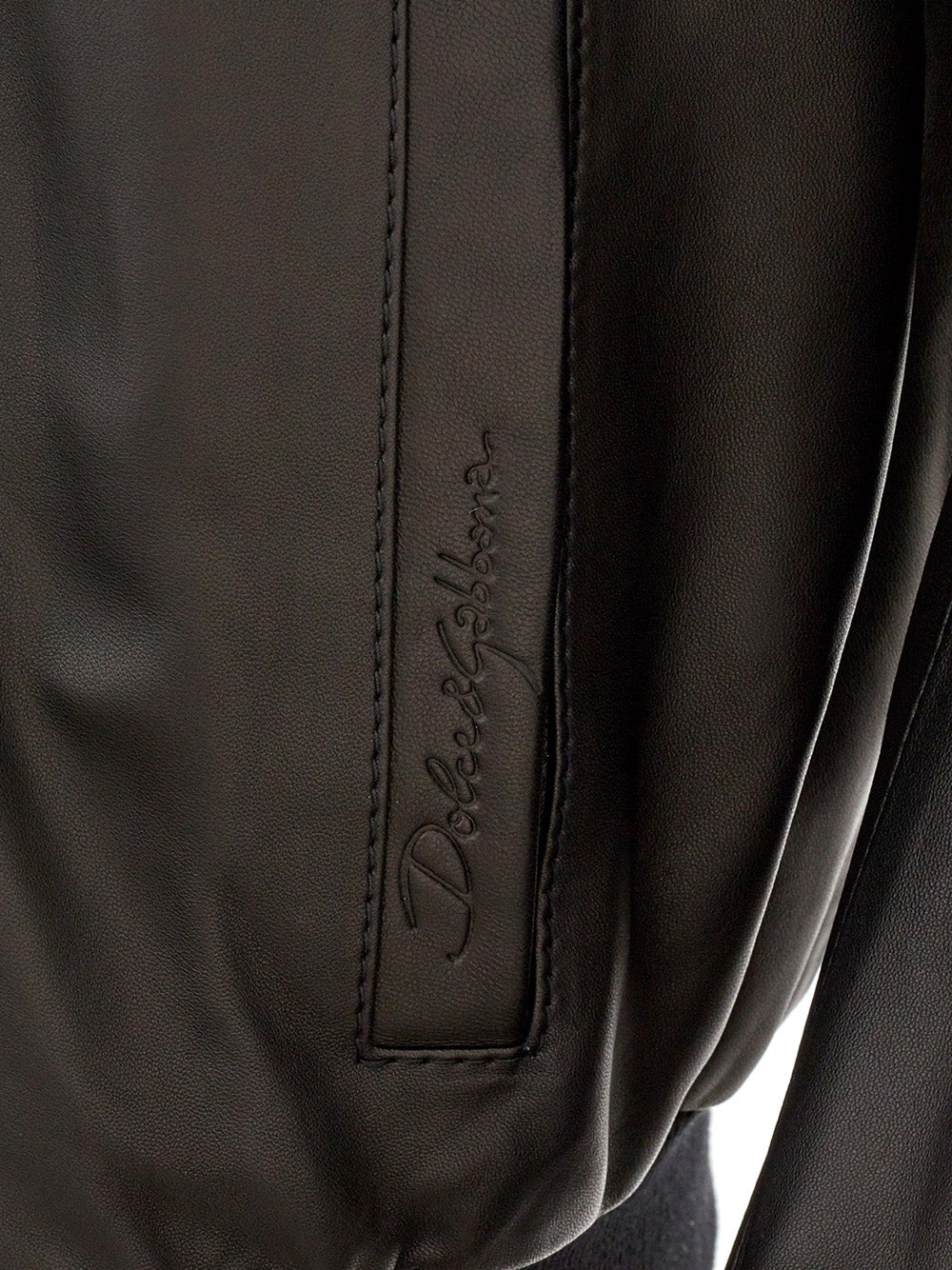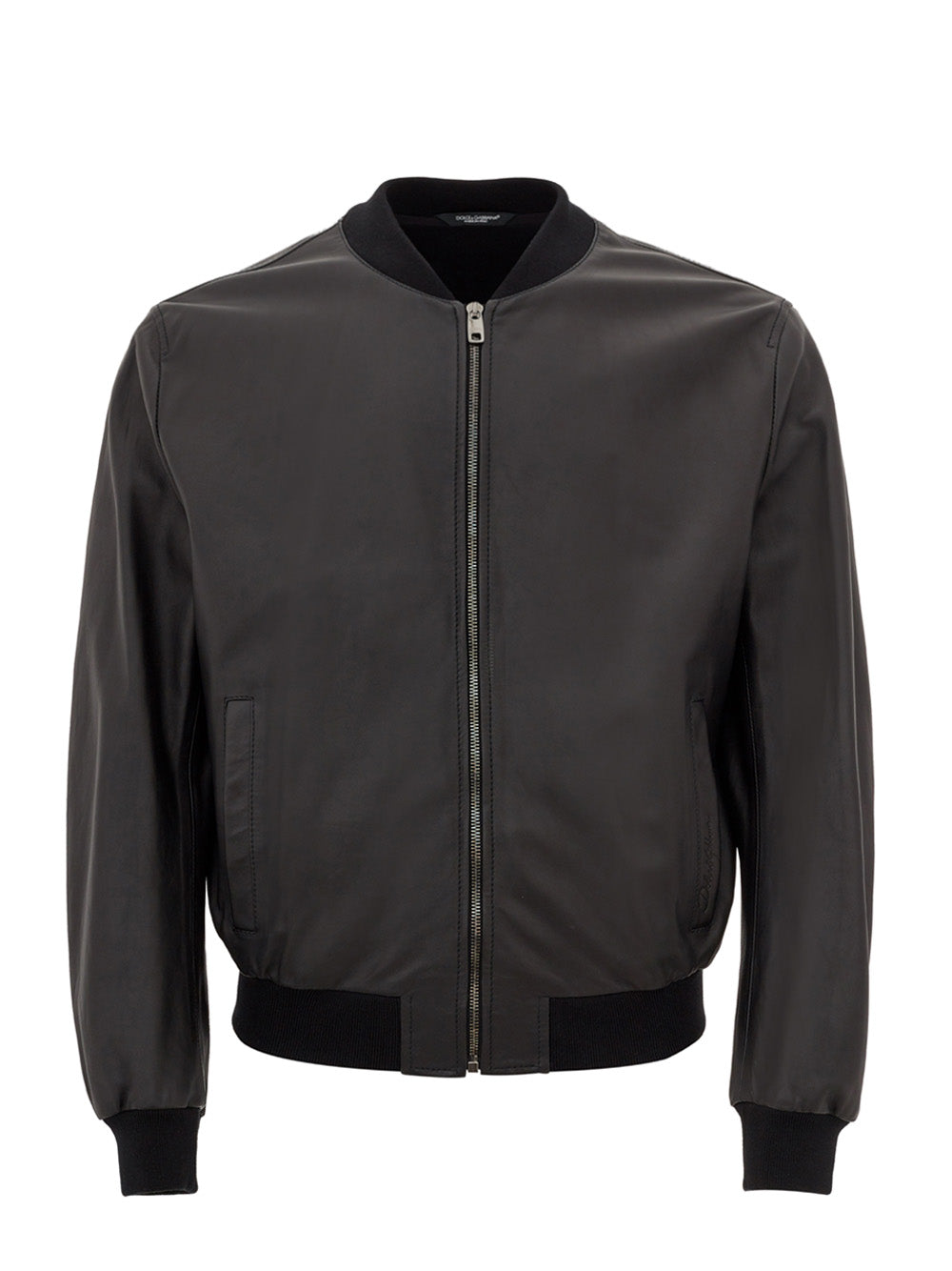 Indulge in the epitome of luxury with this stunning Dolce & Gabbana leather bomber jacket. Crafted from the finest materials, this brand new piece comes with tags, featuring a sleek zip closure and a pair of handy side pockets accented with subtle logo detailing. Designed to offer a flattering slim fit, it includes an elastic waistband and cuffs, ensuring a perfect blend of style and comfort. This chic jacket, dyed in a classic black hue, adds a touch of sophistication to any ensemble.