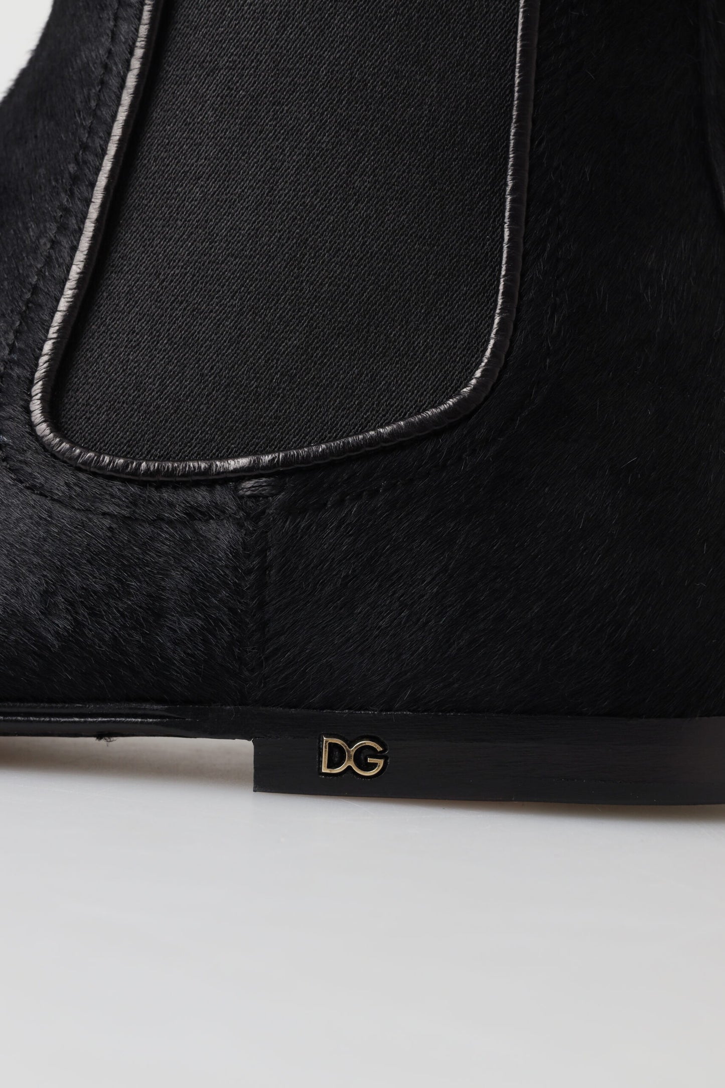 Step into effortless style and comfort with these exquisite, brand new Chelsea boots by Dolce & Gabbana. Crafted with the finest 100% leather, these black boots are a testament to Italian craftsmanship and luxury fashion. The elegant design features stretch bands on the sides to ensure easy wear, while the iconic logo detail adds a touch of exclusivity to your ensemble. Perfect for making a bold fashion statement, these boots are sure to elevate any look.
