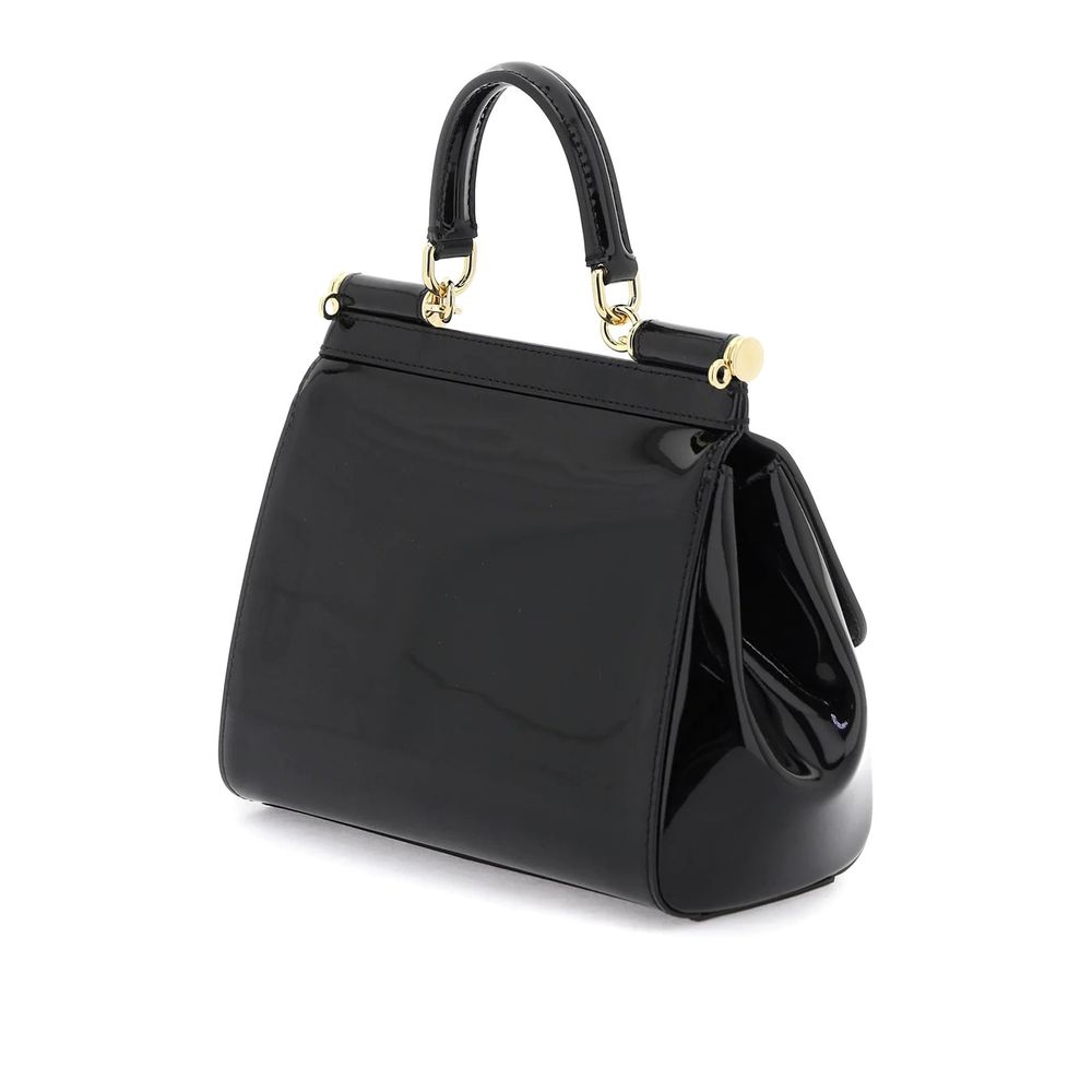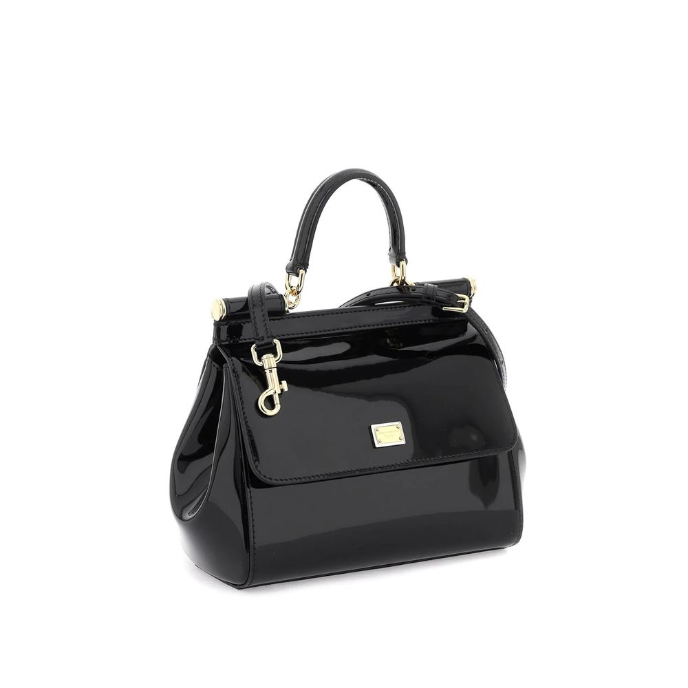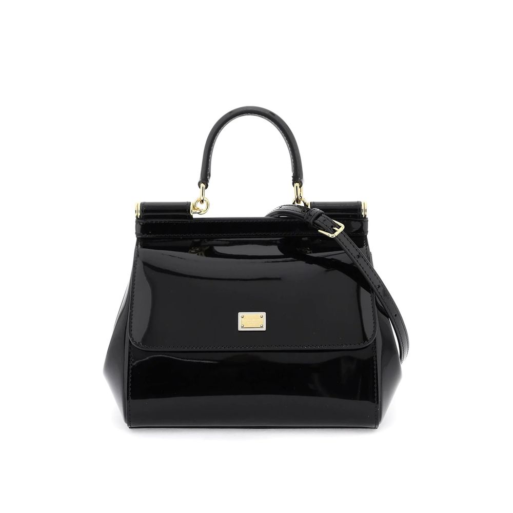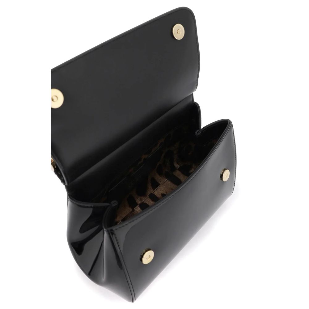 Discover the epitome of Italian luxury with this refined Sicily bag, crafted from lustrous patent leather. Designed to elevate your ensemble, it features a sleek handle, a versatile removable and adjustable shoulder strap, and secures with a sophisticated flap accented by a double magnetic closure. The front proudly displays an iconic logo plaque, while the interior boasts a chic leopard-print fabric lining. The bag’s gold-tone metal hardware adds a final touch of glamour to this exquisite accessory, perfect for any occasion.