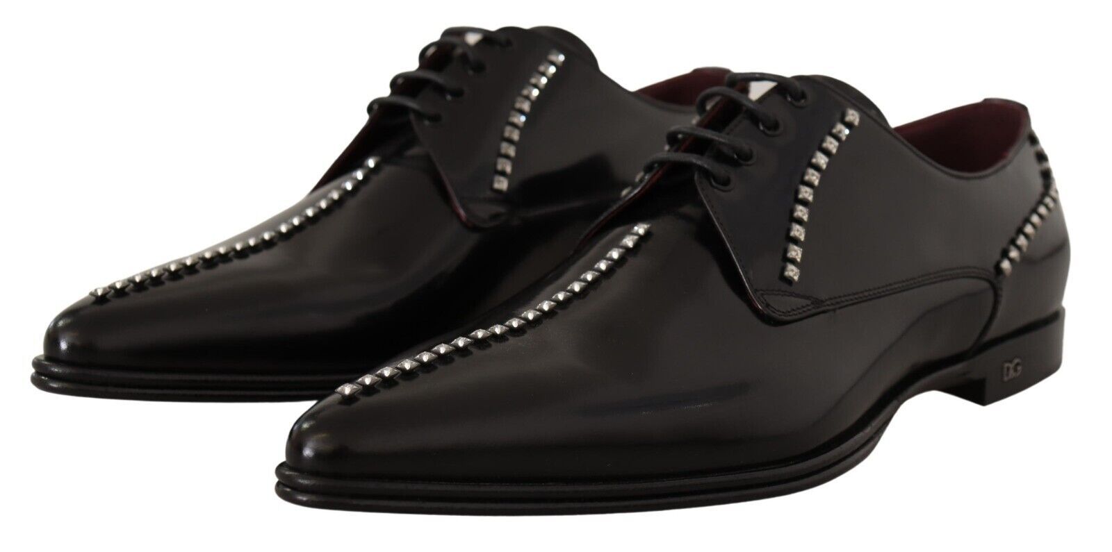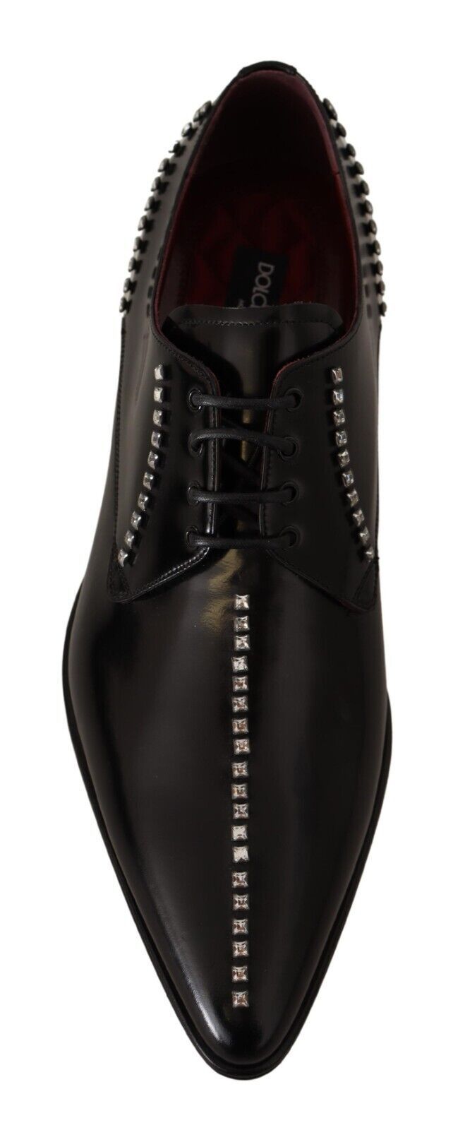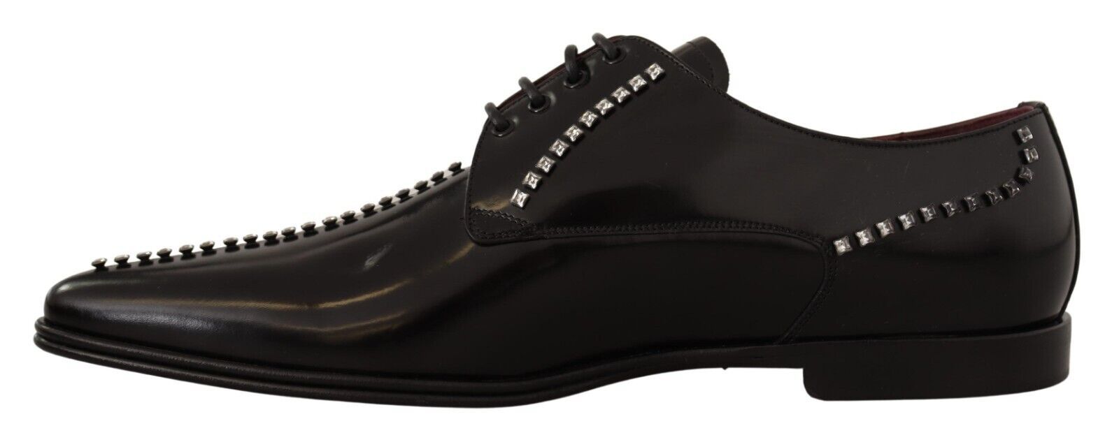 Step into luxury with these pristine Dolce & Gabbana dress shoes, crafted from the finest 100% leather. Adorned with sparkling clear crystals, these lace-up formal shoes are a testament to extraordinary craftsmanship and elegance. With a sleek black color and a refined leather sole, they promise to be the show-stopper at any formal event. Made in Italy, these shoes are a rare find, offering unparalleled exclusivity and style.