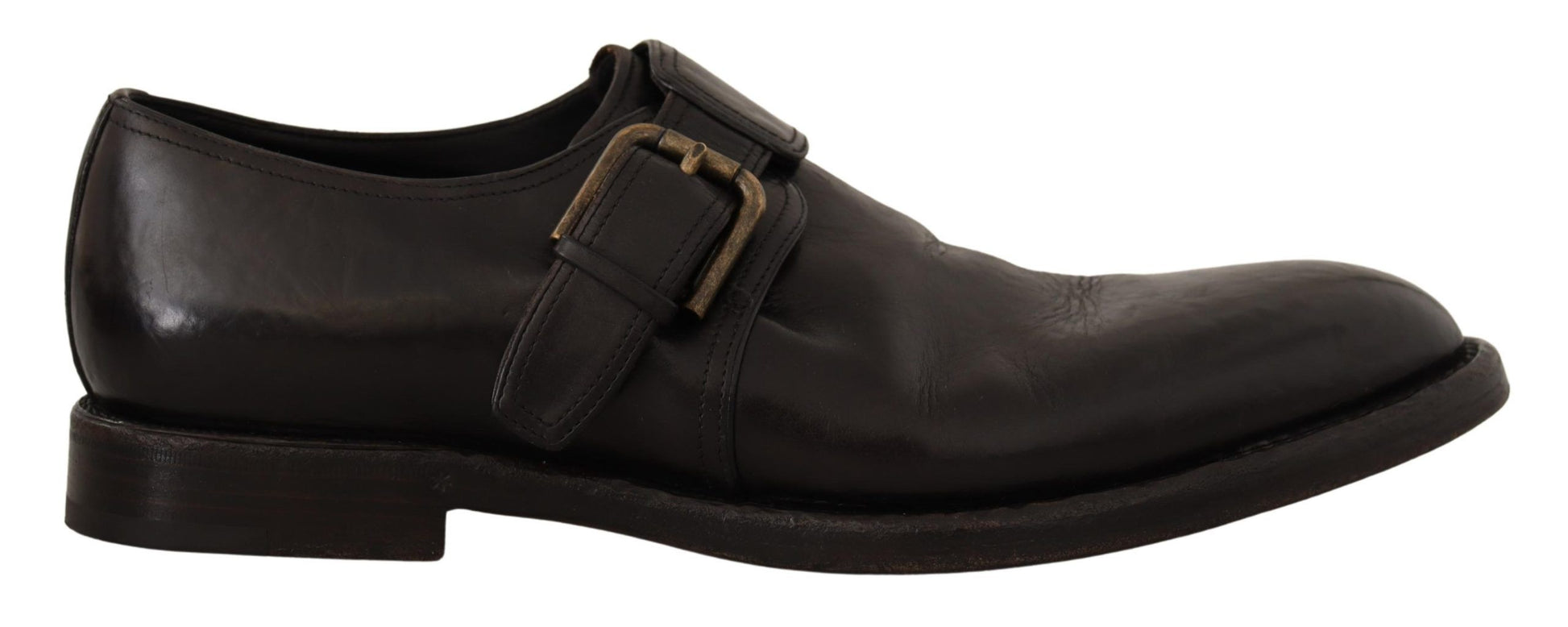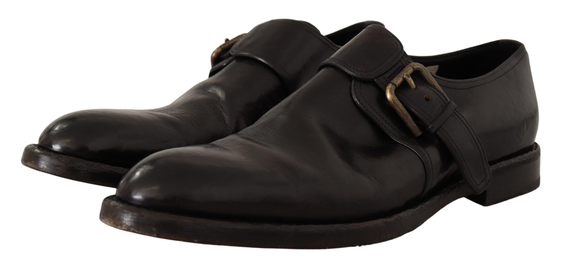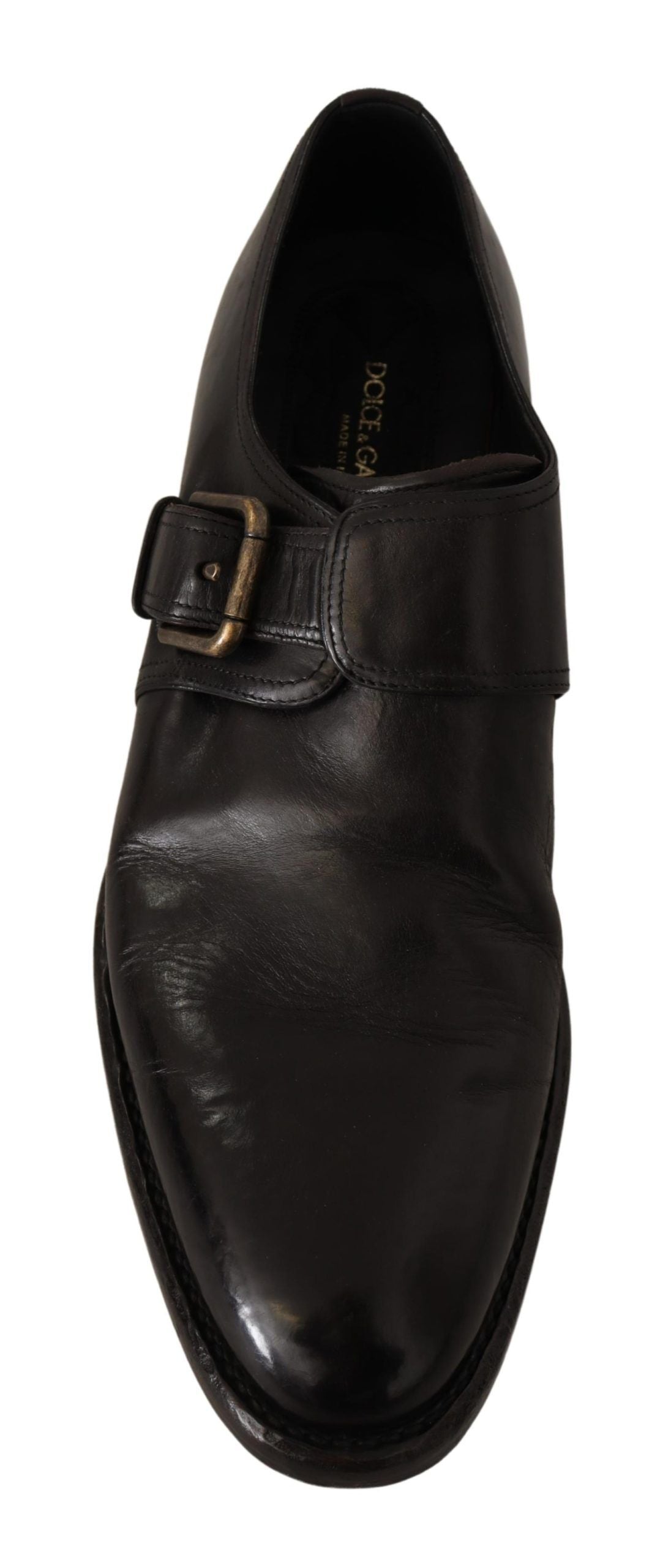 Step into the world of sophistication with these handsome, brand new shoes that define luxury. Crafted from 100% premium leather, these lace-up dress shoes feature the timeless Monk Strap design that perfectly balances classic elegance and modern style. Their stunning black color and high-end craftsmanship, courtesy of Dolce & Gabbana, make these shoes a necessary addition to any distinguished gentleman’s wardrobe. Made in Italy, these shoes come with a promise of durability and a vintage look that adds character to their design. Experience the union of comfort and designer luxury that is inherent in every stitch.