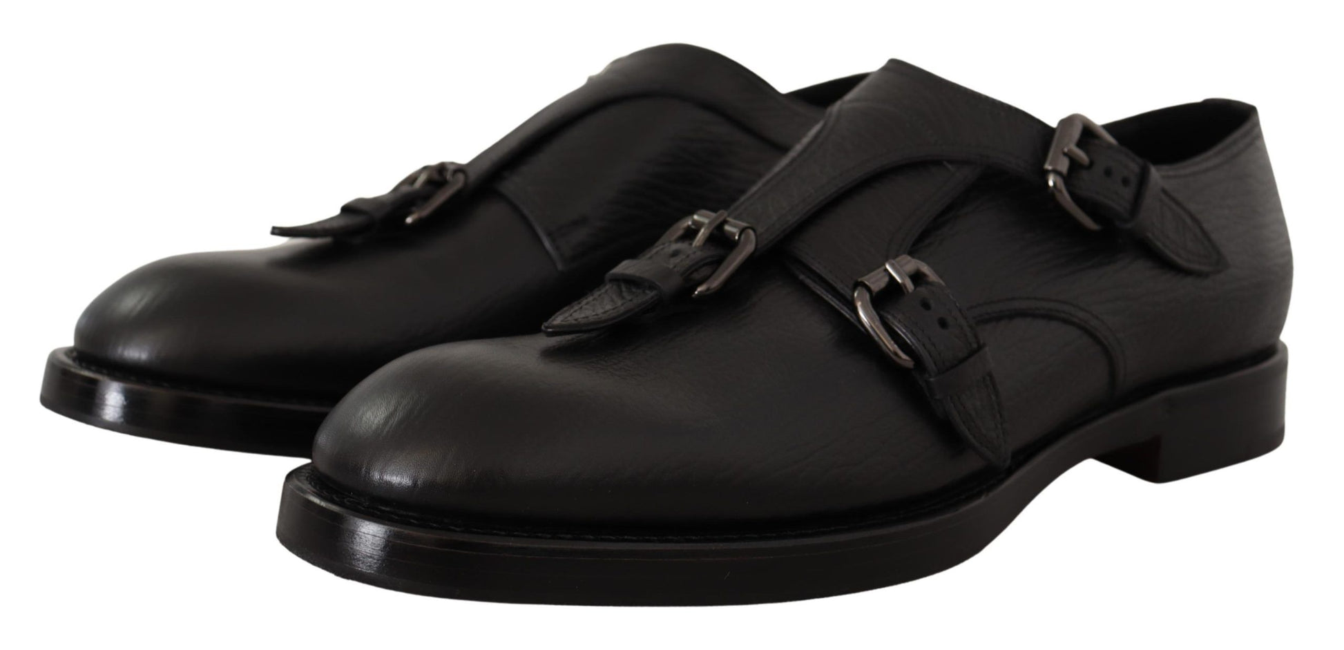 Step into sophistication with these luxurious black Monk Strap dress shoes, a testament to timeless style and fine Italian craftsmanship. These formal shoes are genuine Dolce & Gabbana products, brand new with tags, and ready to complete any dapper gentleman’s attire with an exclusive touch and a vintage flair.