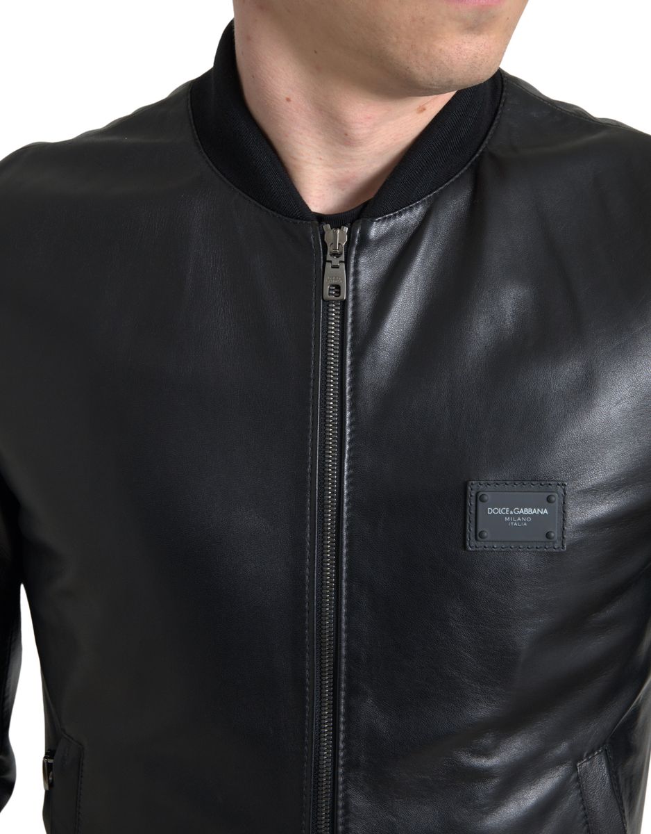 Indulge in the epitome of luxury with this 100% Authentic black leather bomber jacket from Dolce & Gabbana. Perfect for any discerning gentleman looking to add a touch of elegance and high fashion to his wardrobe. This jacket is not only a style statement but also a testament to the brand’s commitment to quality with its sumptuous lambskin material and meticulous Italian craftsmanship.