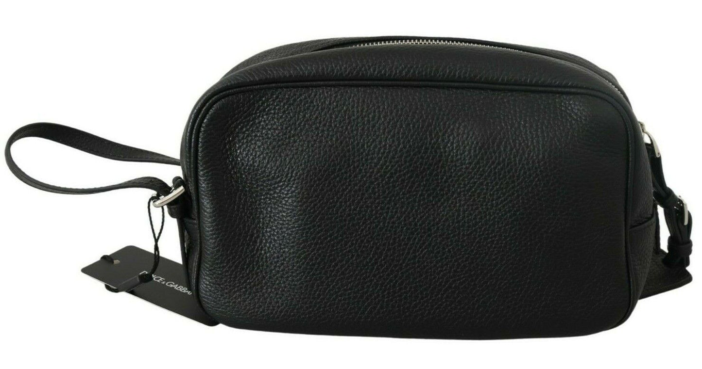 Indulge in the epitome of sophistication with this sleek black leather wristlet clutch bag from the renowned Dolce & Gabbana. This exquisite accessory is not only a statement of style but also a hallmark of quality and luxury, perfect for the discerning gentleman. With its practical wristlet strap, it offers the utmost convenience for carrying your essentials.