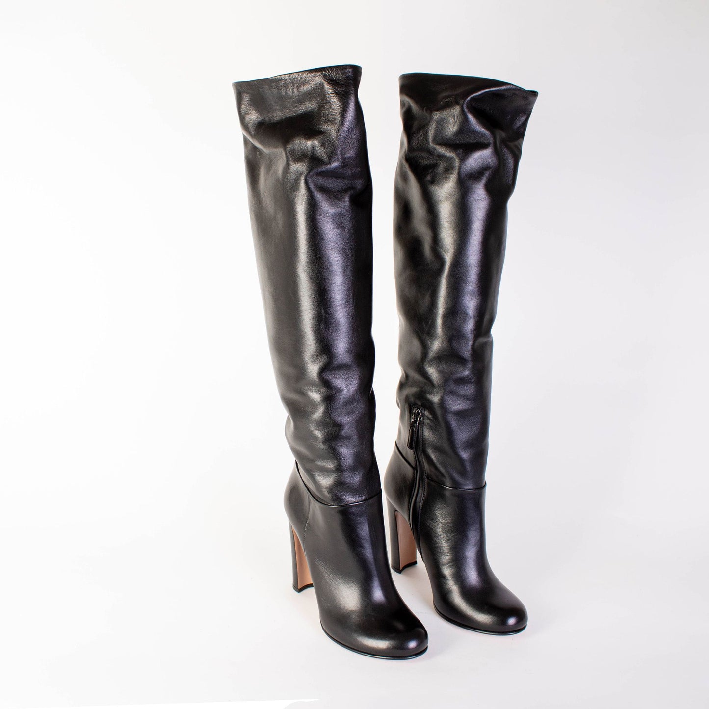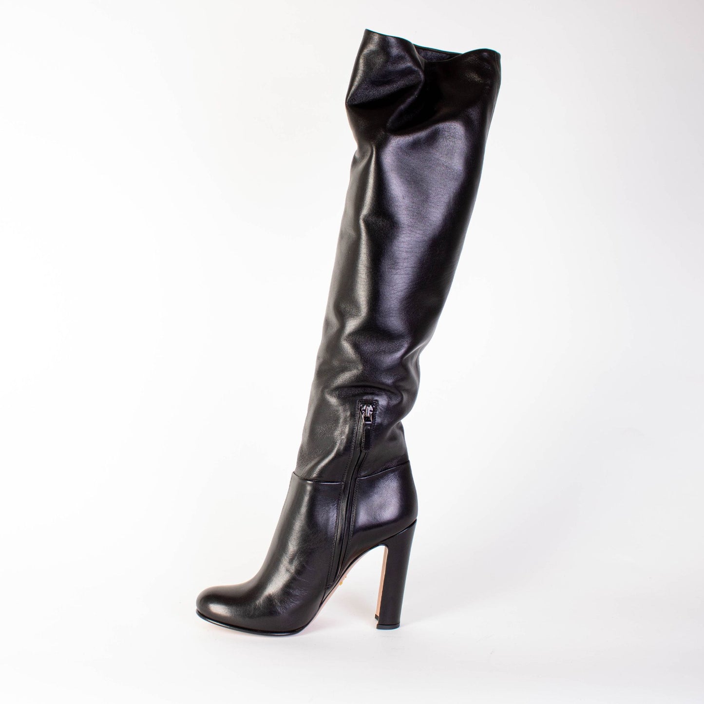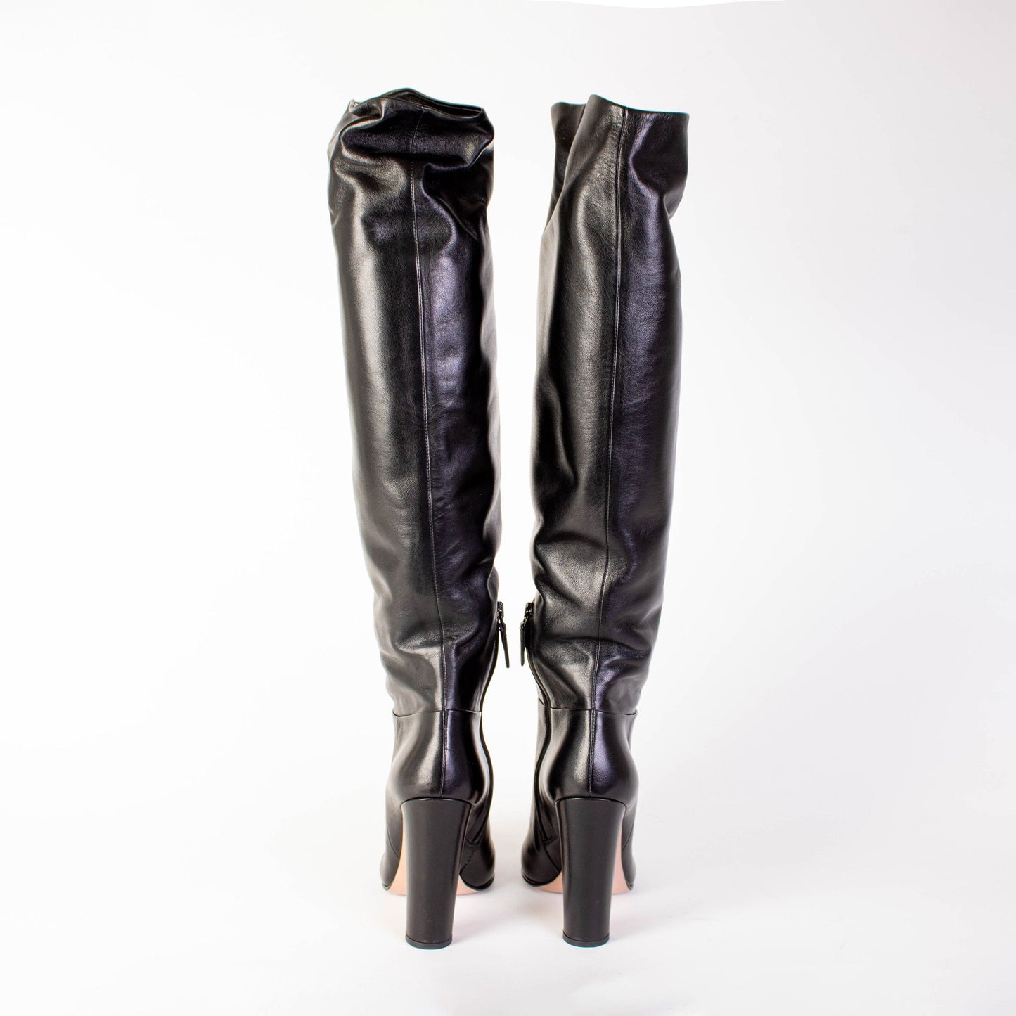 Discover the epitome of sophistication with these stunning new boots, complete with tags for guaranteed authenticity. Ideal for those seeking a blend of luxury and practicality, these black leather boots offer a sleek design with a convenient half zip closure on the side, adding both style and ease to your footwear collection. Designed by the renowned Prada, these boots embody elegance and high-fashion craftsmanship.