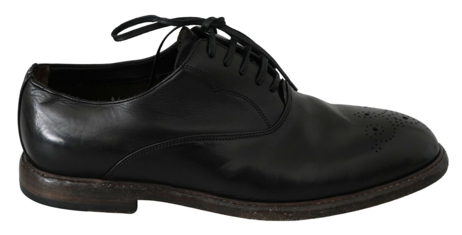 Step into sophistication with these brand-new, 100% authentic men’s dress shoes. Crafted from the finest leather, these lace-up formal derby shoes offer a sleek black color perfect for any high-class event. Each pair is a testament to exquisite craftsmanship and luxury design, hailing straight from Italy. The attention to detail is evident with logo detailing and a luxurious leather outer and inner sole. Embrace the exclusivity and elevate your formal attire with these impressive shoes by Dolce & Gabbana.