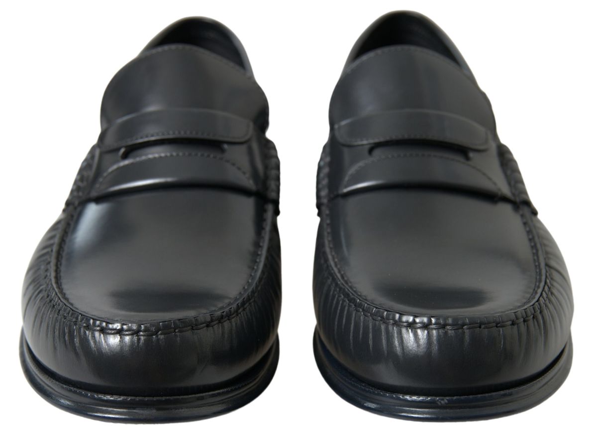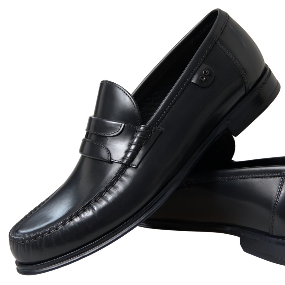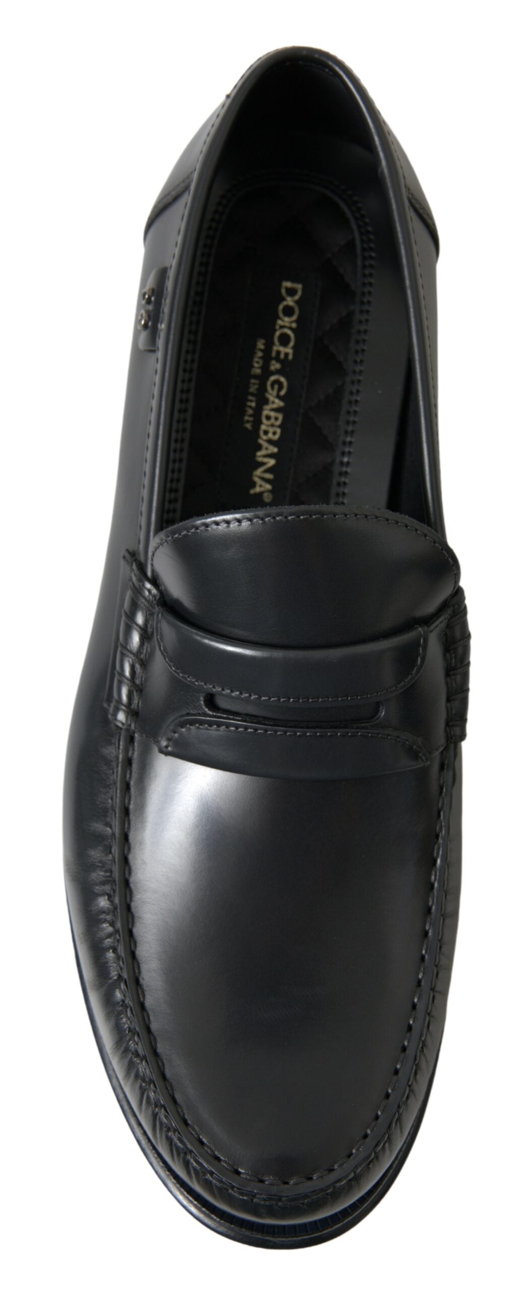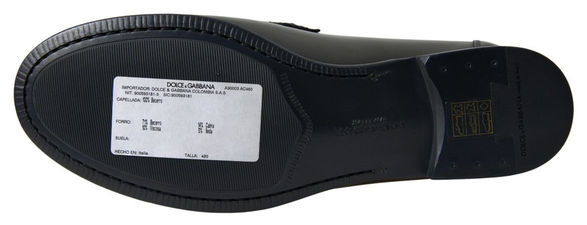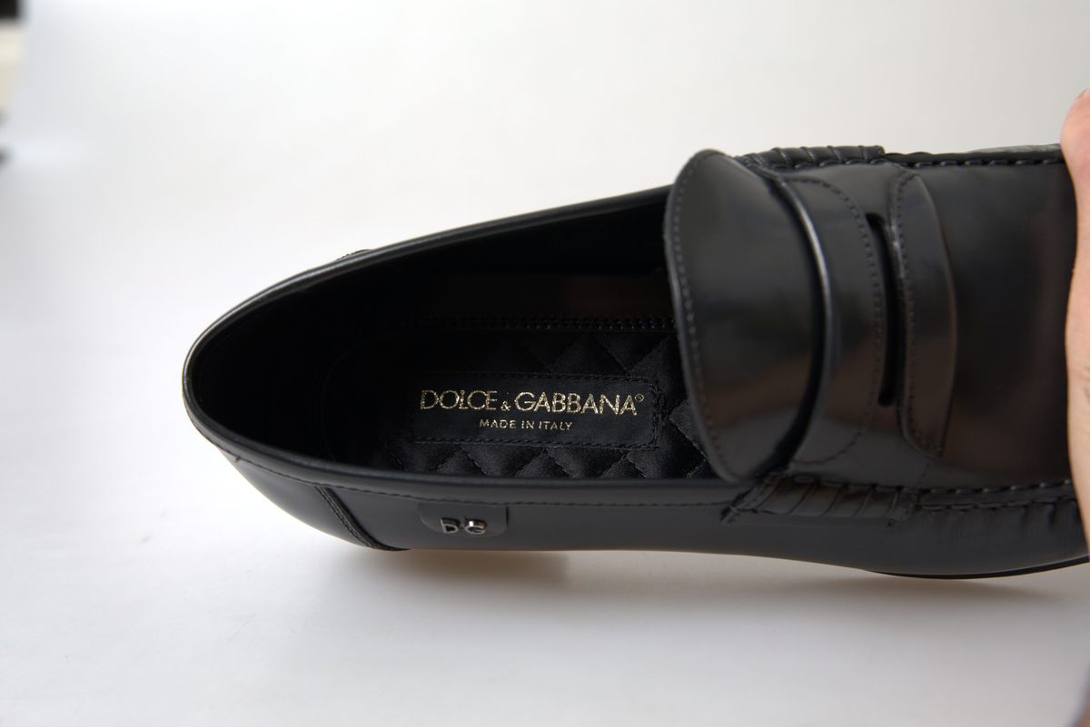 Step into luxury with these exquisite black loafers from the renowned house of Dolce & Gabbana. Perfect for formal events or adding a touch of class to your everyday wardrobe, these shoes are a testament to high craftsmanship and timeless style. Each pair boasts the iconic logo details and is crafted in Italy, ensuring authenticity and exclusivity.
