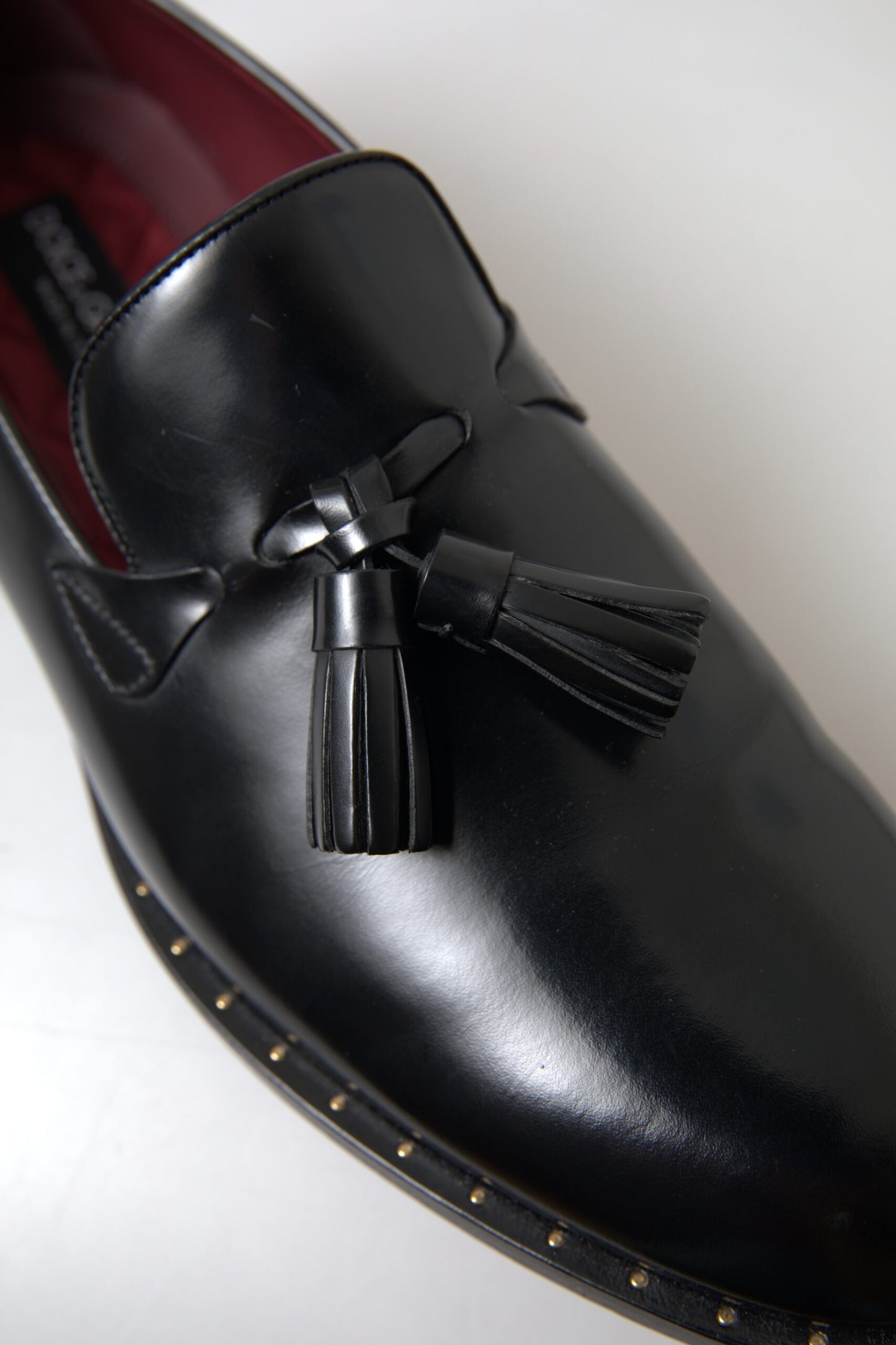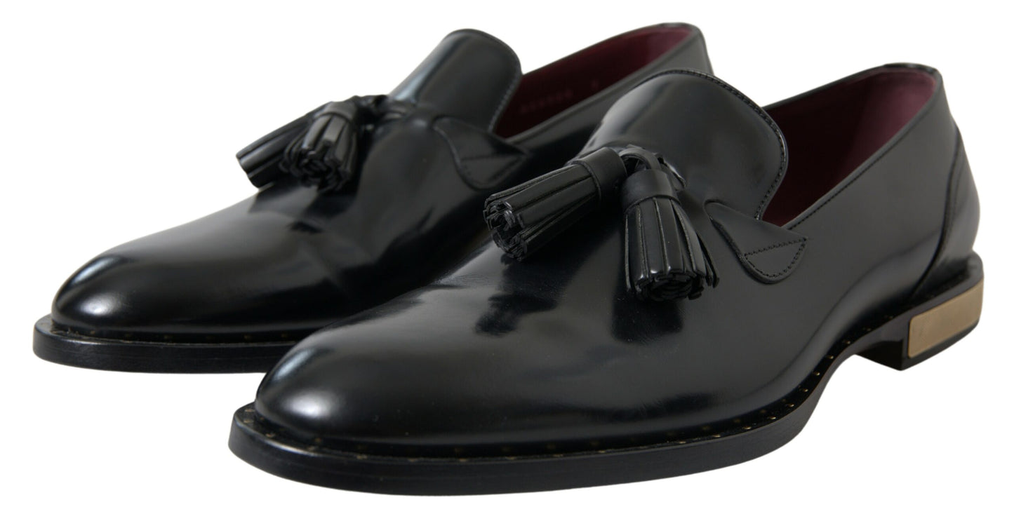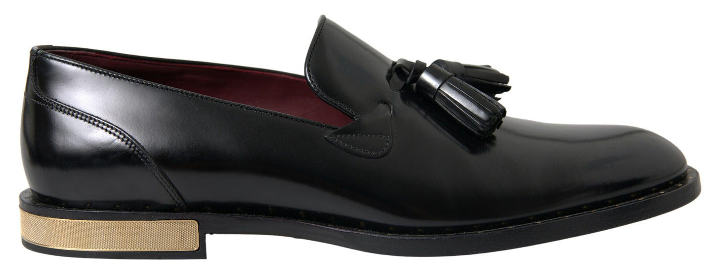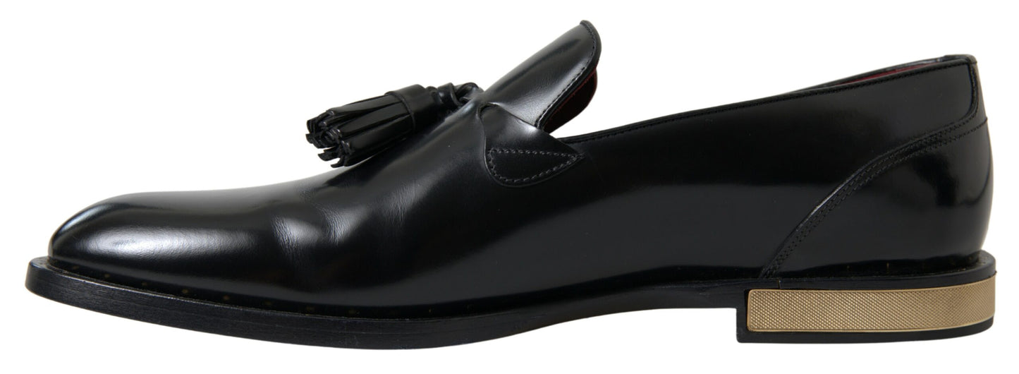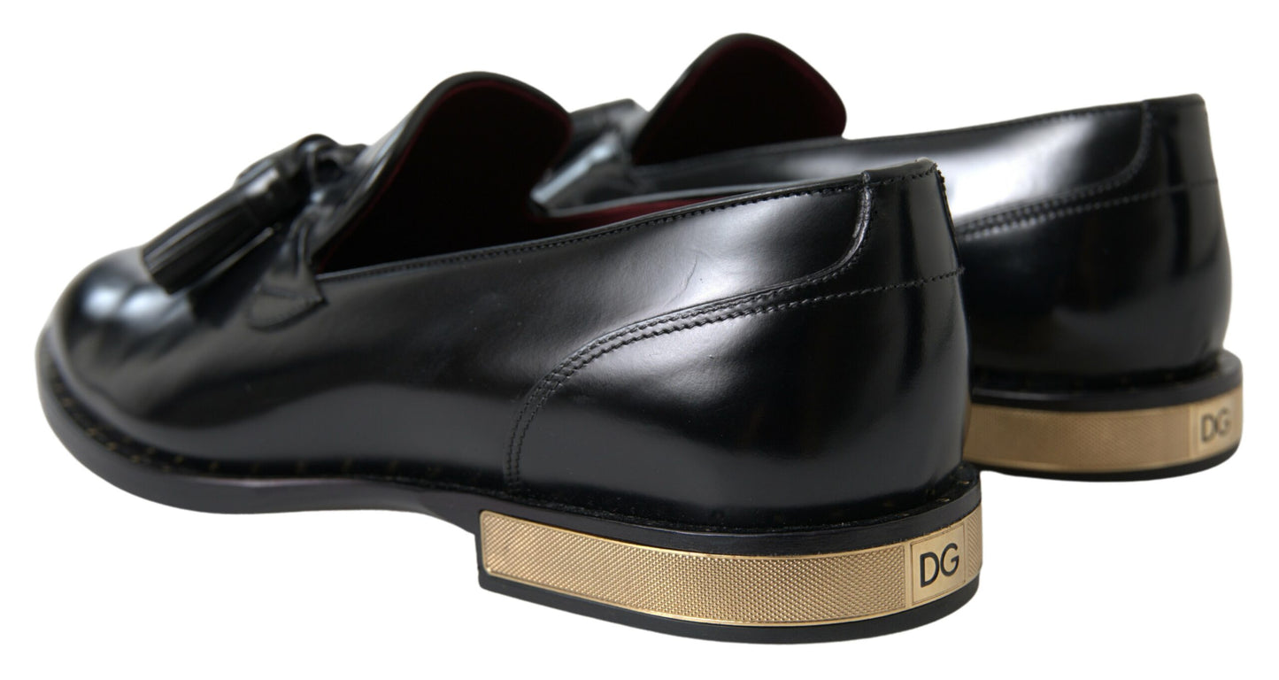 Step into luxury with these exquisite loafers, perfect for the distinguished gentleman. Adorned with eye-catching gold tassels, crafted with the finest leather, and boasting the impeccable Italian craftsmanship that Dolce & Gabbana is renowned for, these shoes are the epitome of elegance and sophistication. Ideal for formal occasions or adding a touch of class to any outfit.