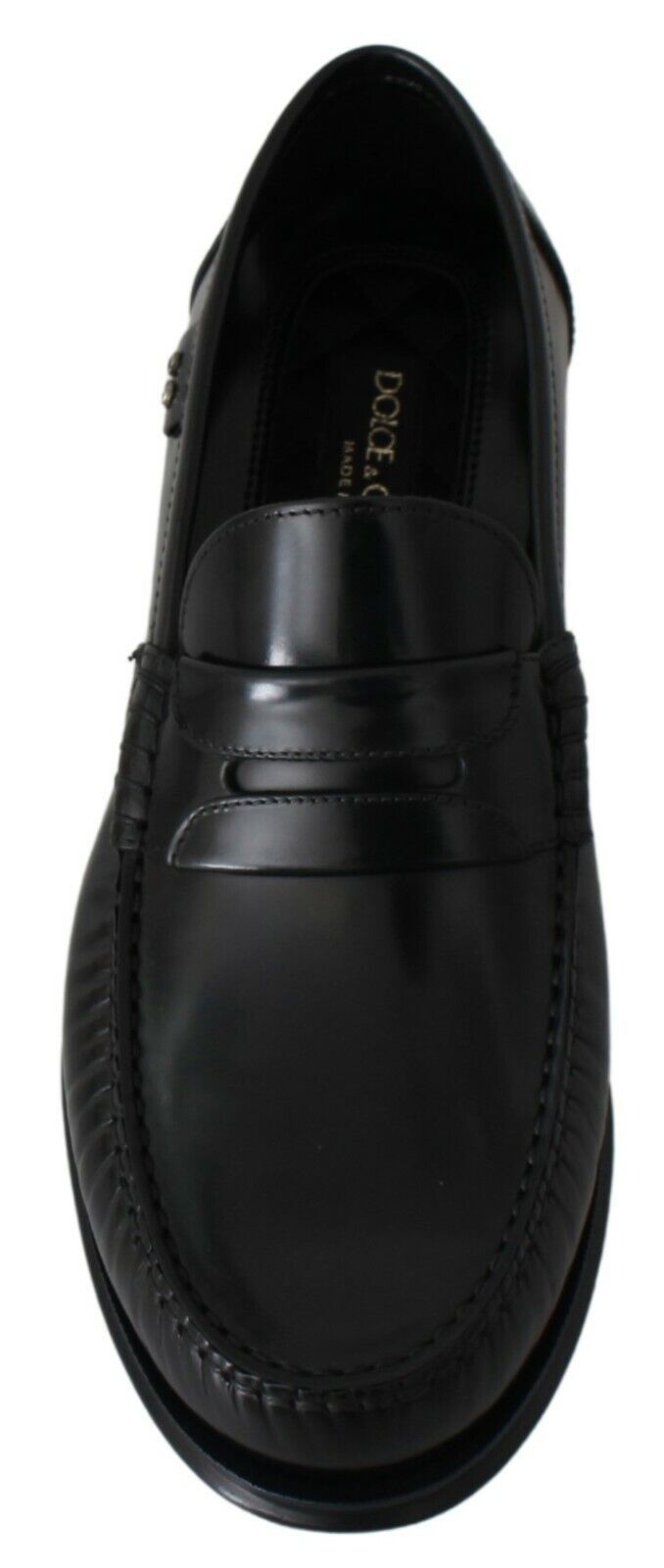 Step into luxury with these sumptuous black loafers from Dolce & Gabbana. Crafted from the finest 100% leather, these moccasins are synonymous with elegance and comfort. The sleek black color ensures versatility and class, making them the perfect addition to any distinguished gentleman’s wardrobe. These loafers are not just shoes but a statement of sophistication, with the iconic brand’s logo subtly displayed as a testament to high fashion. Make your mark with these impeccable Italian-made shoes.