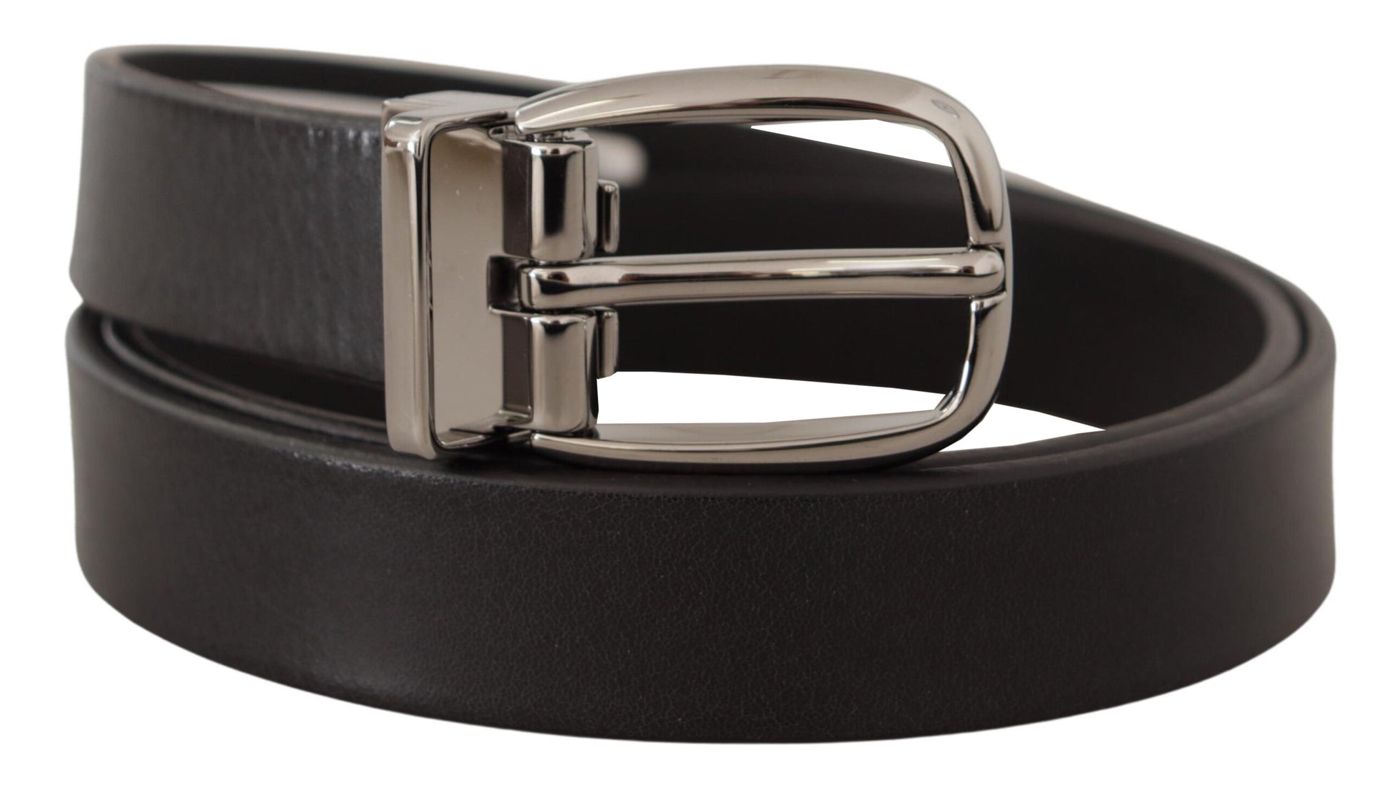 Adorn your waist with the epitome of luxury with this exquisite black leather belt. A distinctive piece from the renowned fashion house, Dolce & Gabbana, this belt guarantees to add a touch of elegance to any ensemble. Crafted in Italy, its fine leather construction speaks volumes about its quality, while the sleek metal buckle adds a note of sophistication to your outfit, making it the perfect accessory for both formal and casual looks.