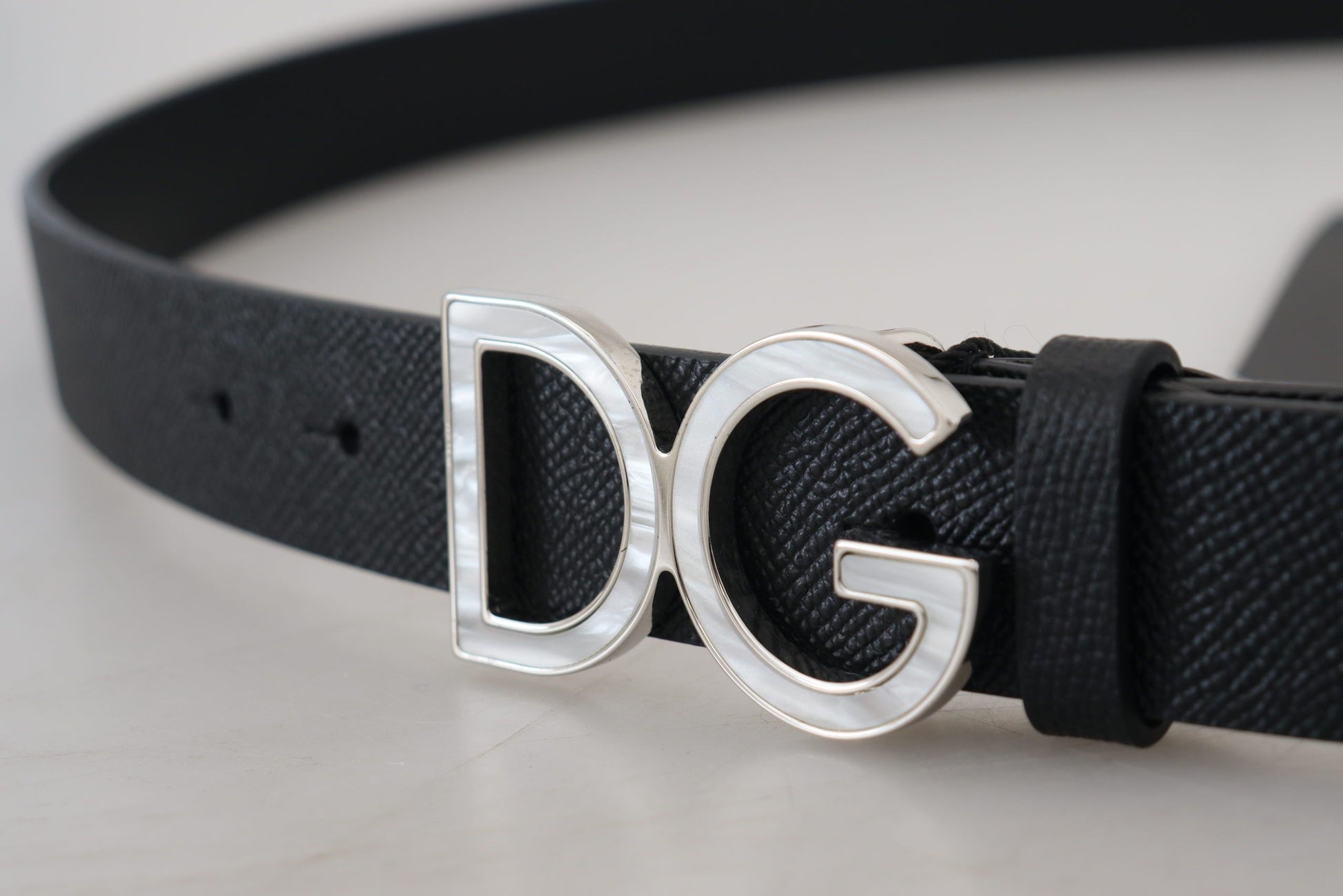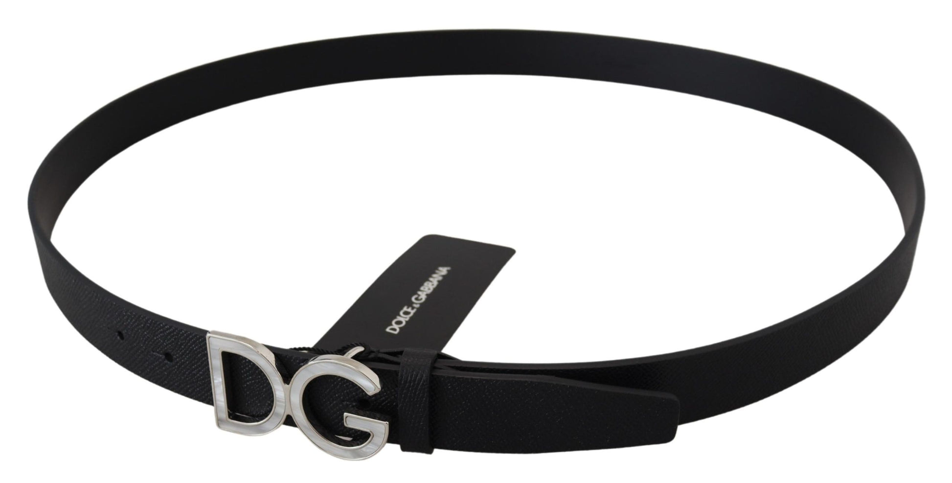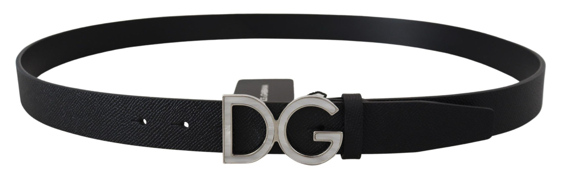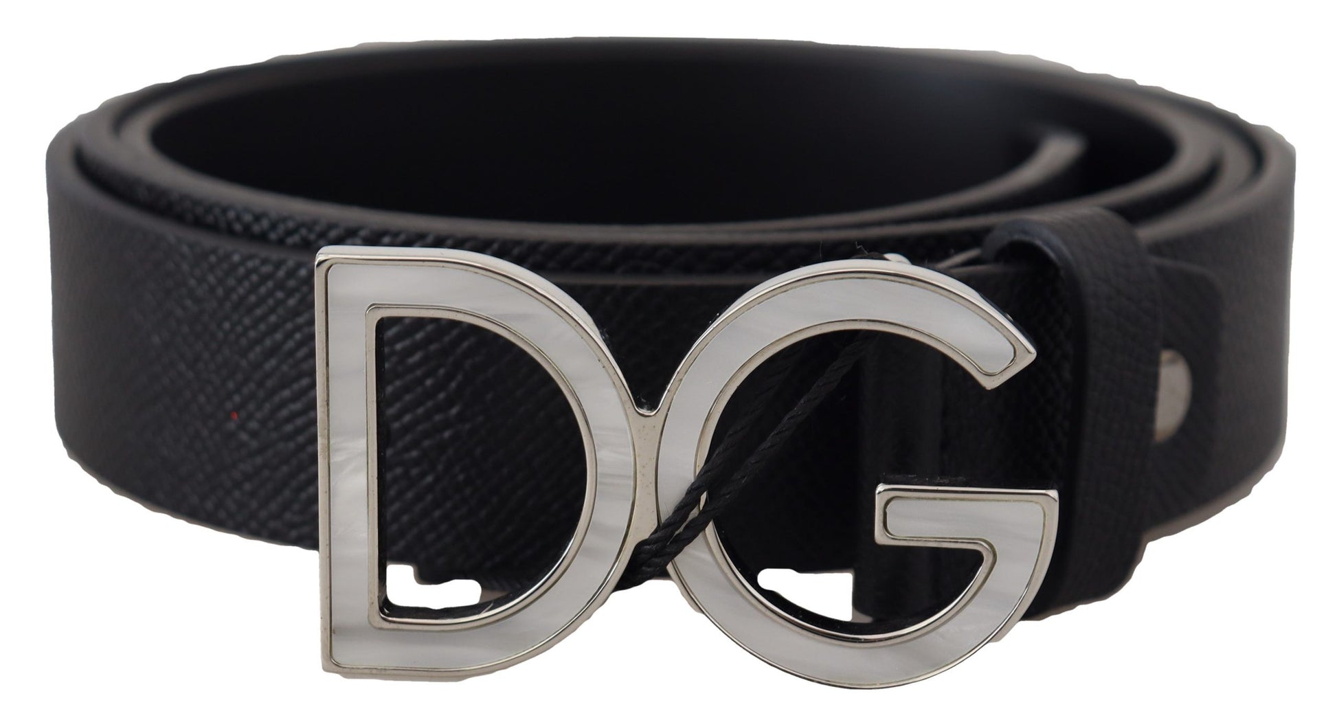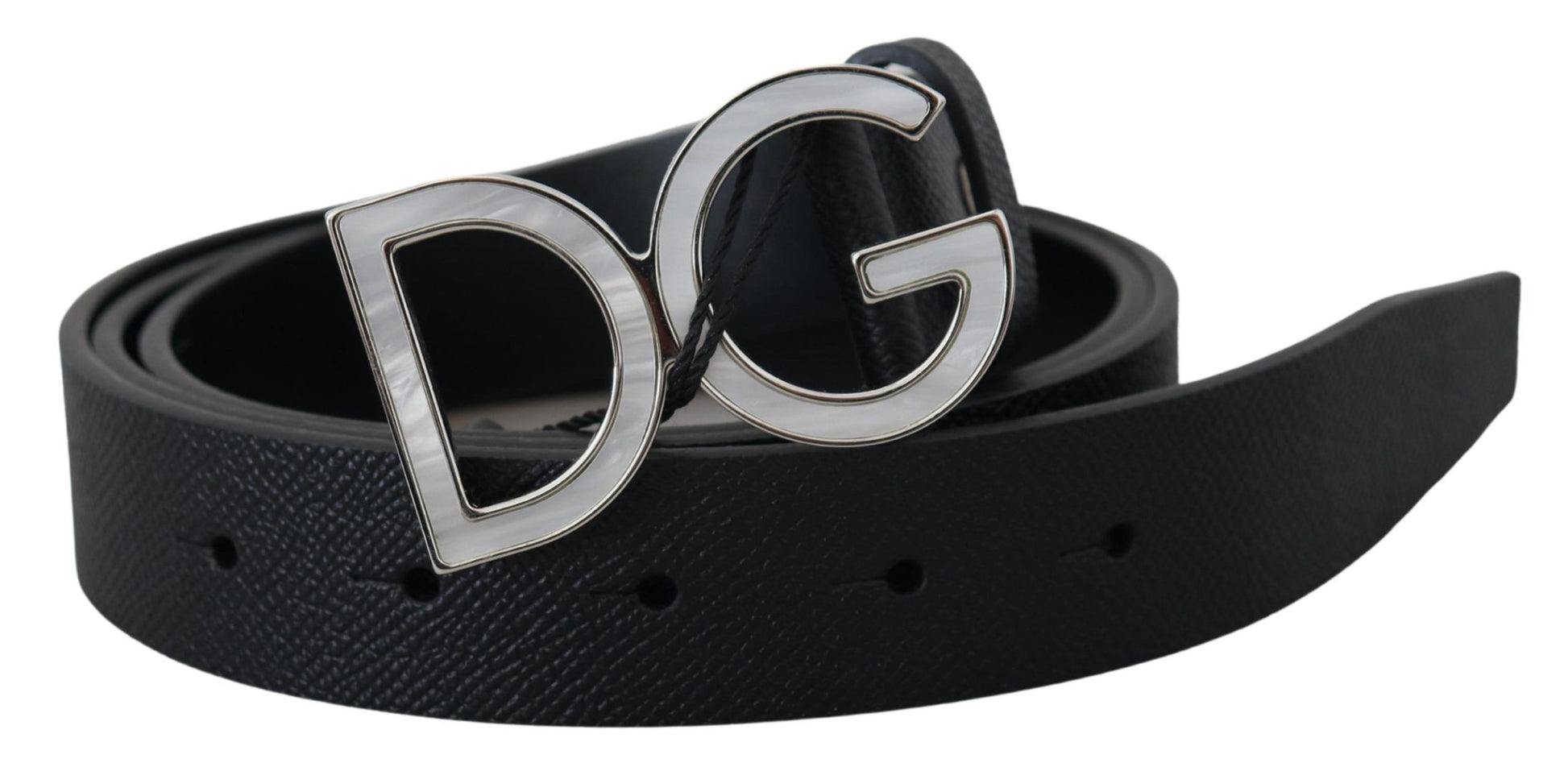 Exude sophistication with our stunning black leather belt, a must-have accessory for the fashion-forward individual. Crafted from the finest 100% calf leather, this piece from Dolce & Gabbana boasts a luxurious DG logo metal buckle that adds a touch of glamour to any ensemble. Ideal for adding polished detail to your outfit, this Italian-made belt is an emblem of style and elegance.