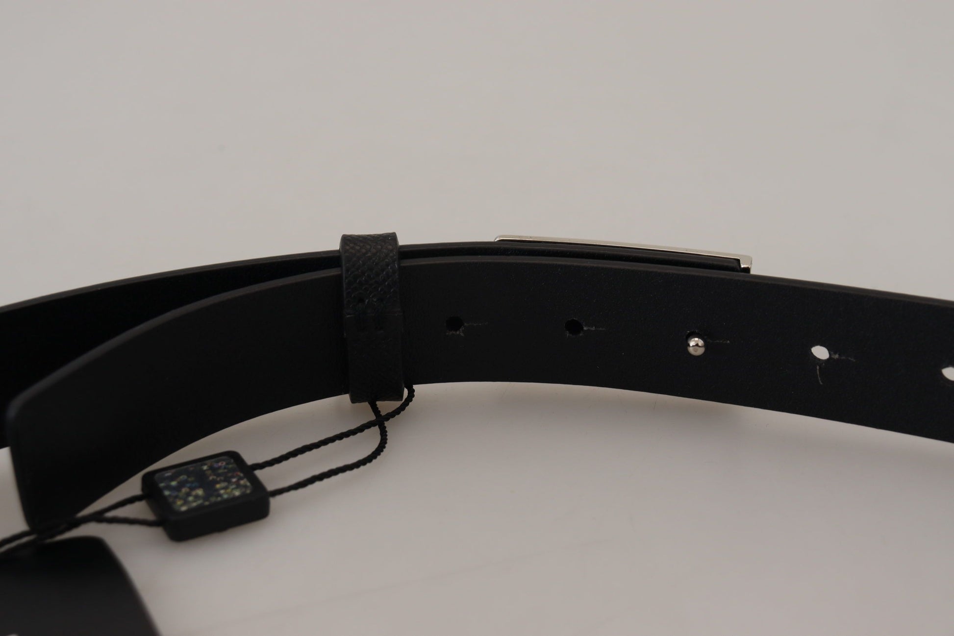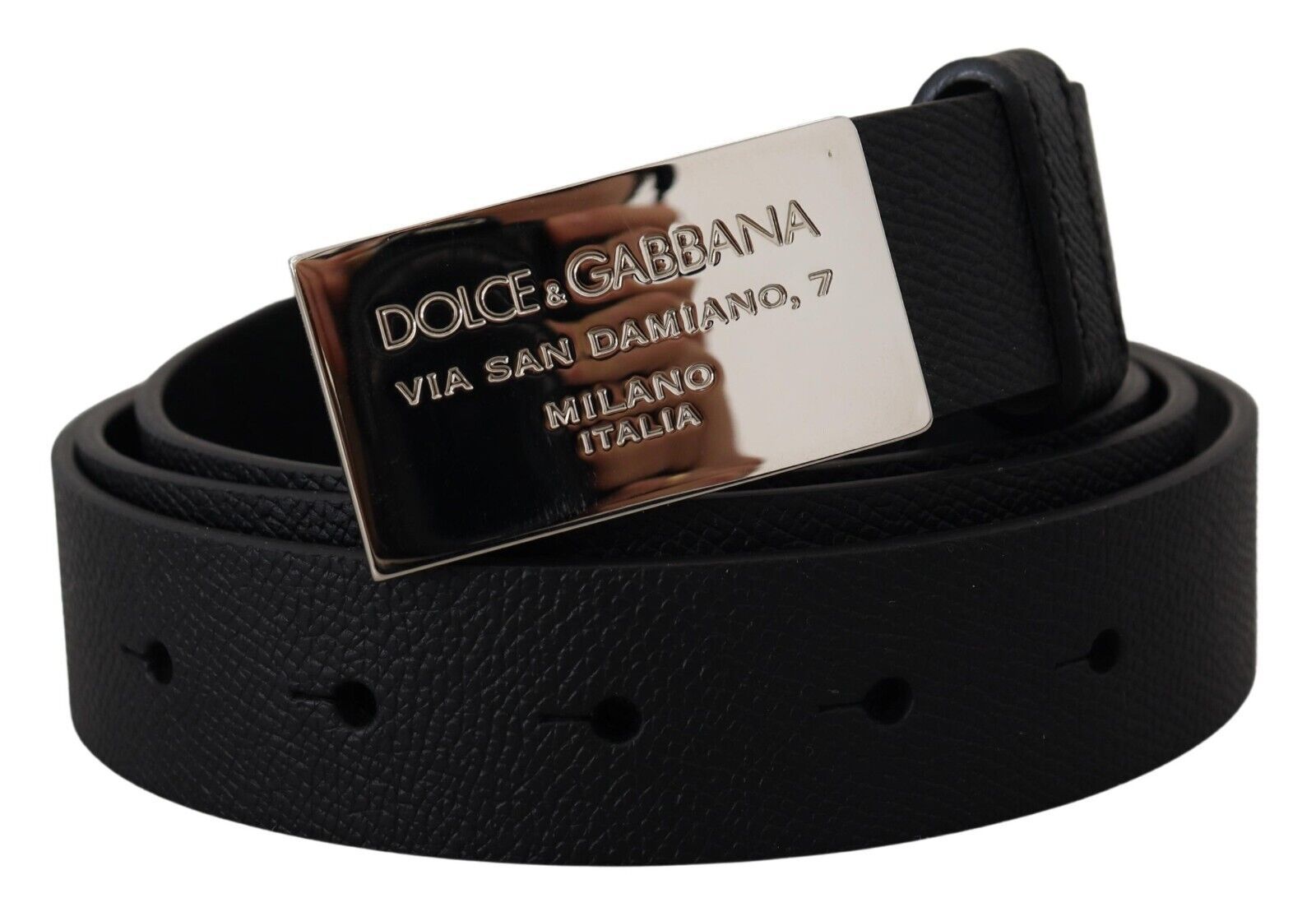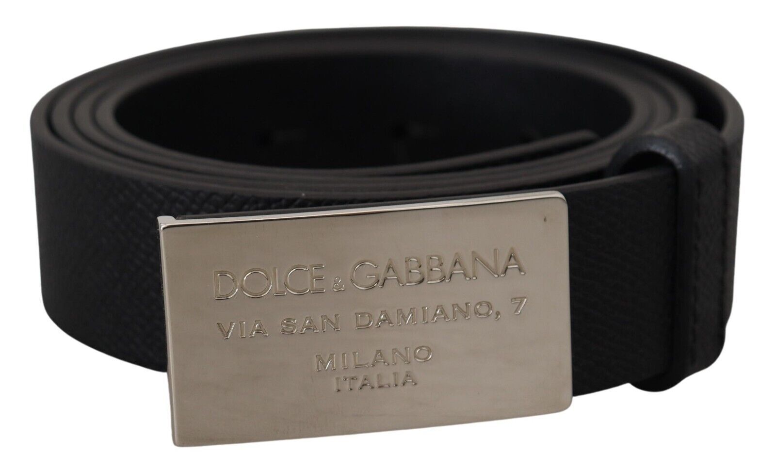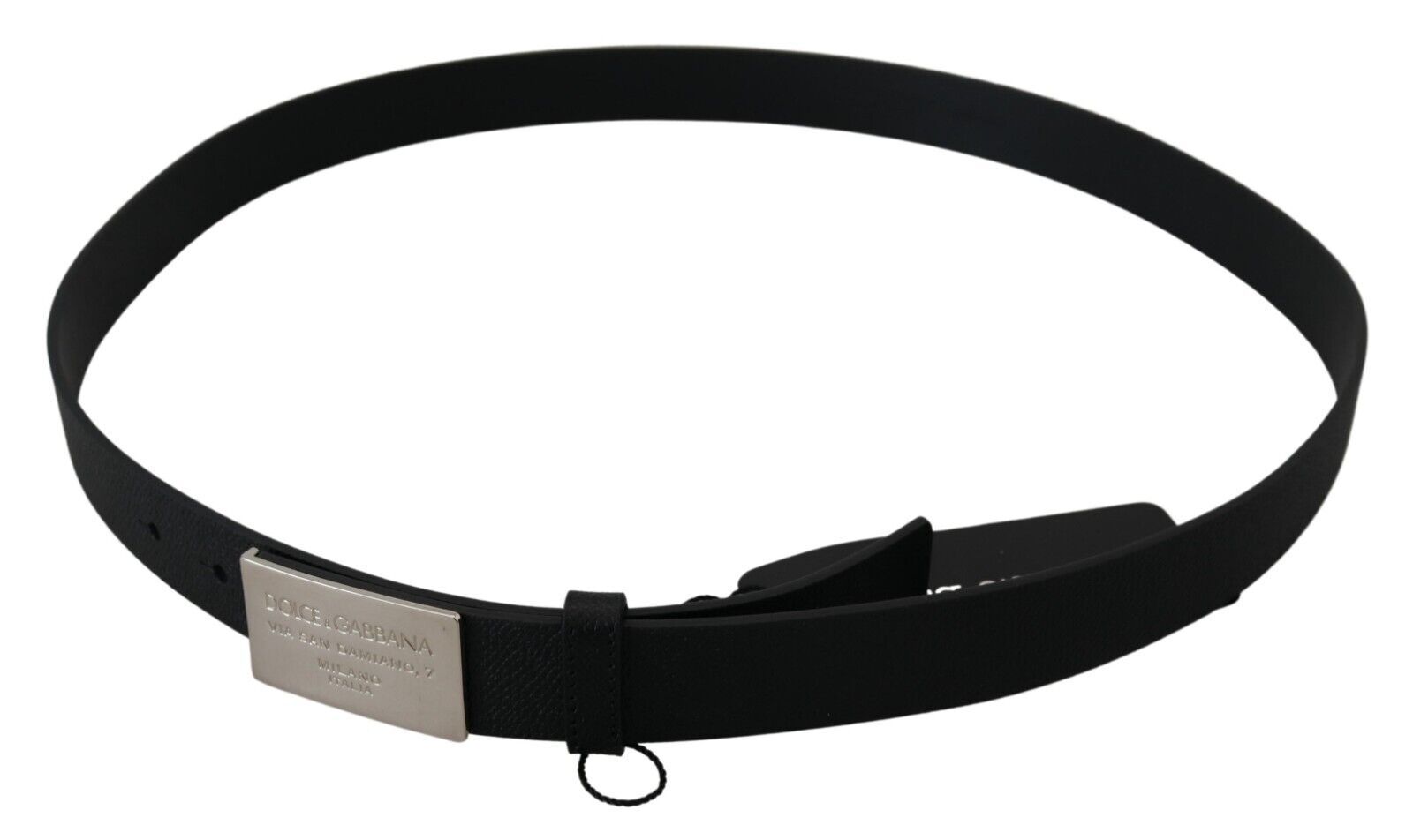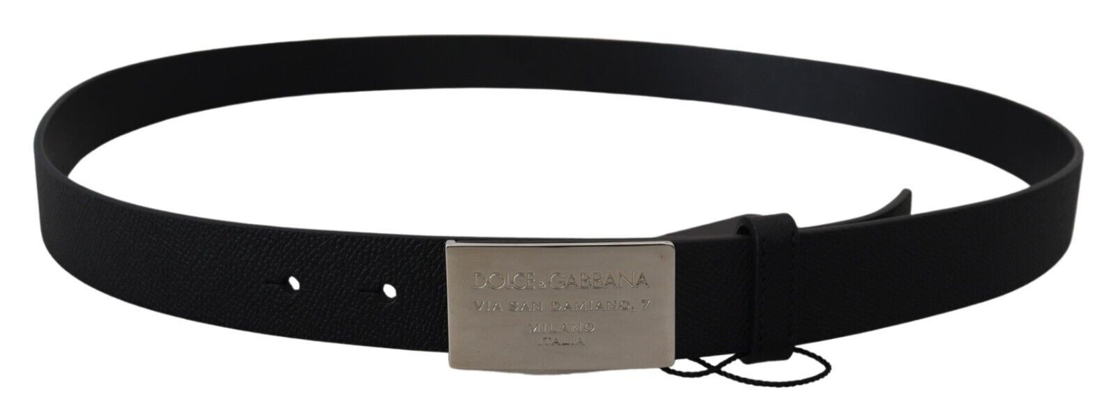 Refine your ensemble with the timeless elegance of this sleek Black Leather Belt. A testament to luxurious accessorizing, this piece boasts a classic design, expertly crafted from 100% Calf Leather. Its sleek rectangle metal buckle closure provides a secure and stylish fastening, making it a must-have addition to your wardrobe essentials. Designed and made in Italy, this Dolce & Gabbana belt epitomizes sophistication and high fashion.