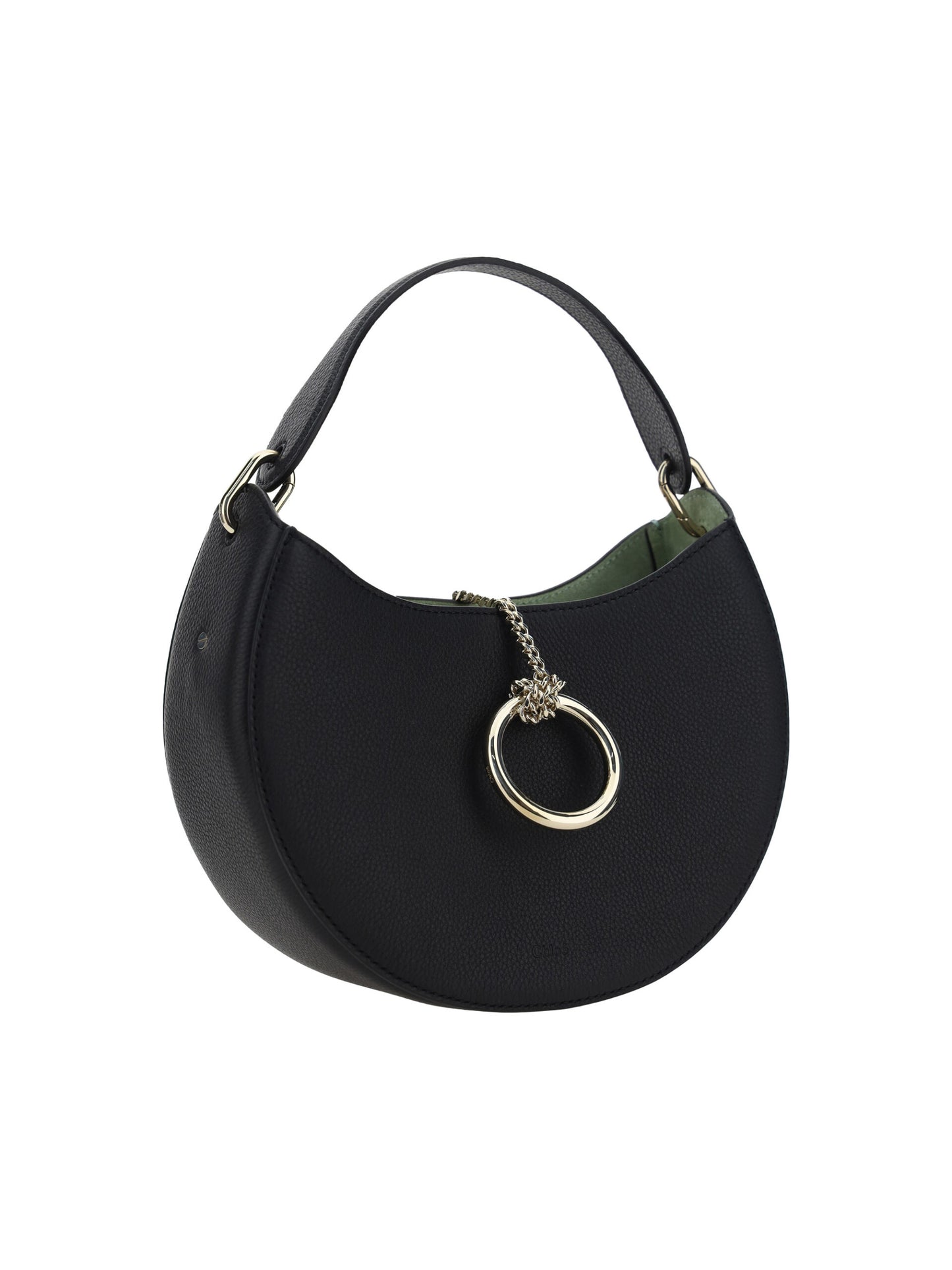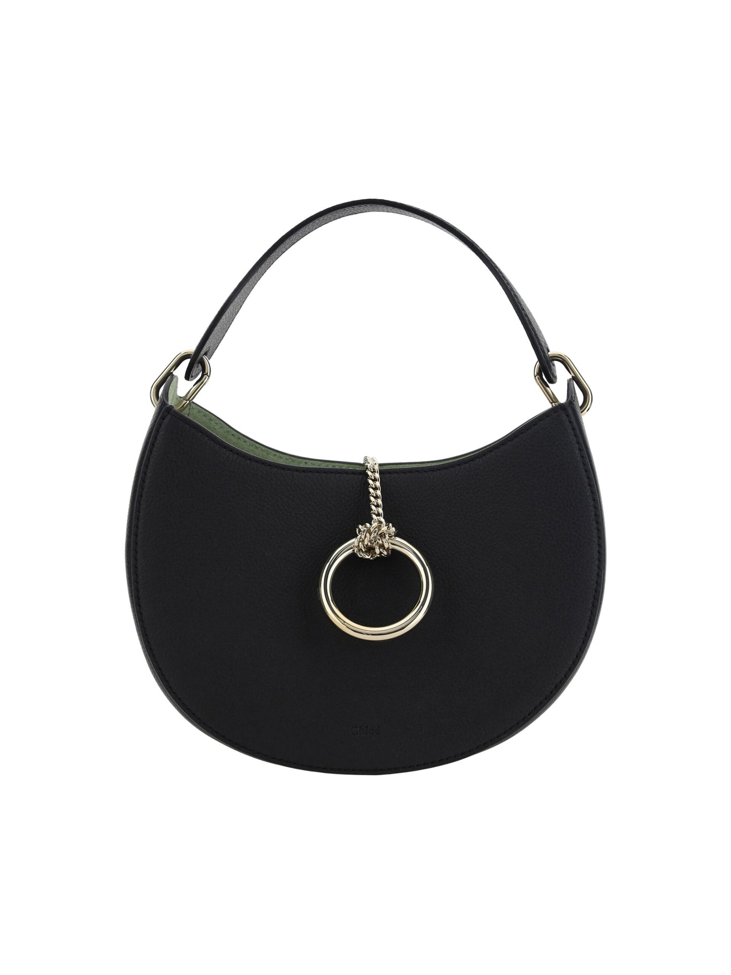 Indulge in the epitome of luxury with this 100% authentic Chloé Small Arlène Shoulder Bag. Exclusively crafted in Italy, this black calf leather masterpiece embodies sophistication with its rounded hobo design and the iconic Gold Ring closure. The bag is designed for versatility, featuring an adjustable and removable shoulder strap, and a well-organized interior with dual compartments. Whether for a chic daytime event or an elegant evening occasion, this shoulder bag seamlessly elevates any ensemble.
