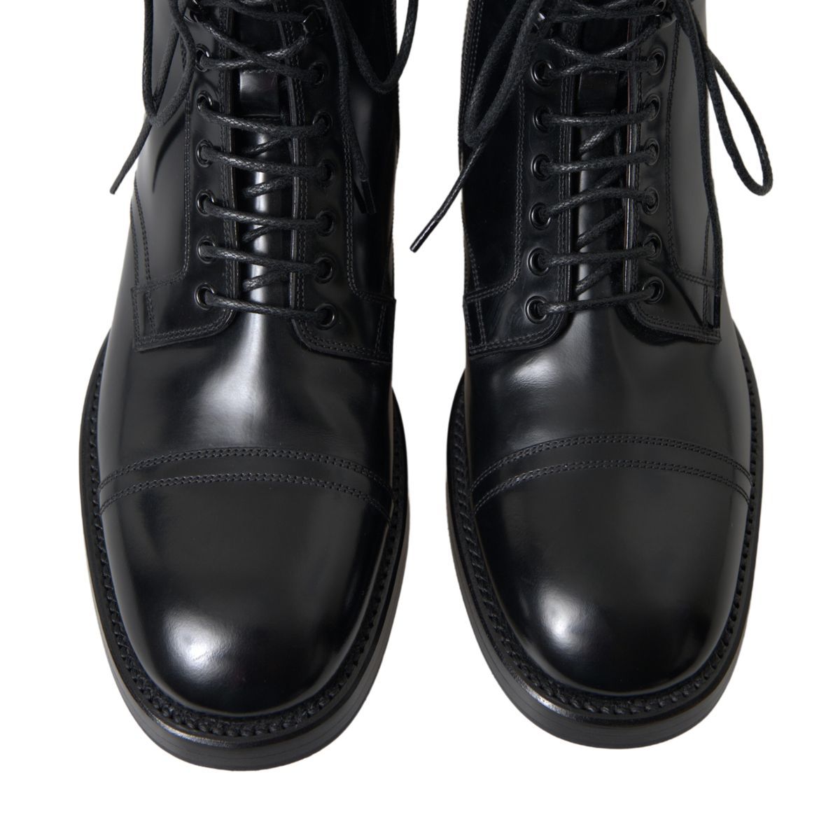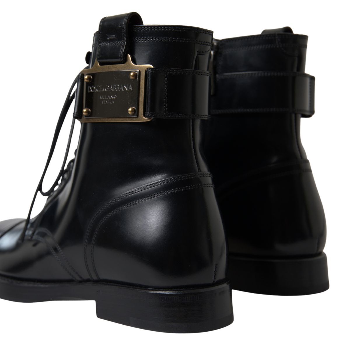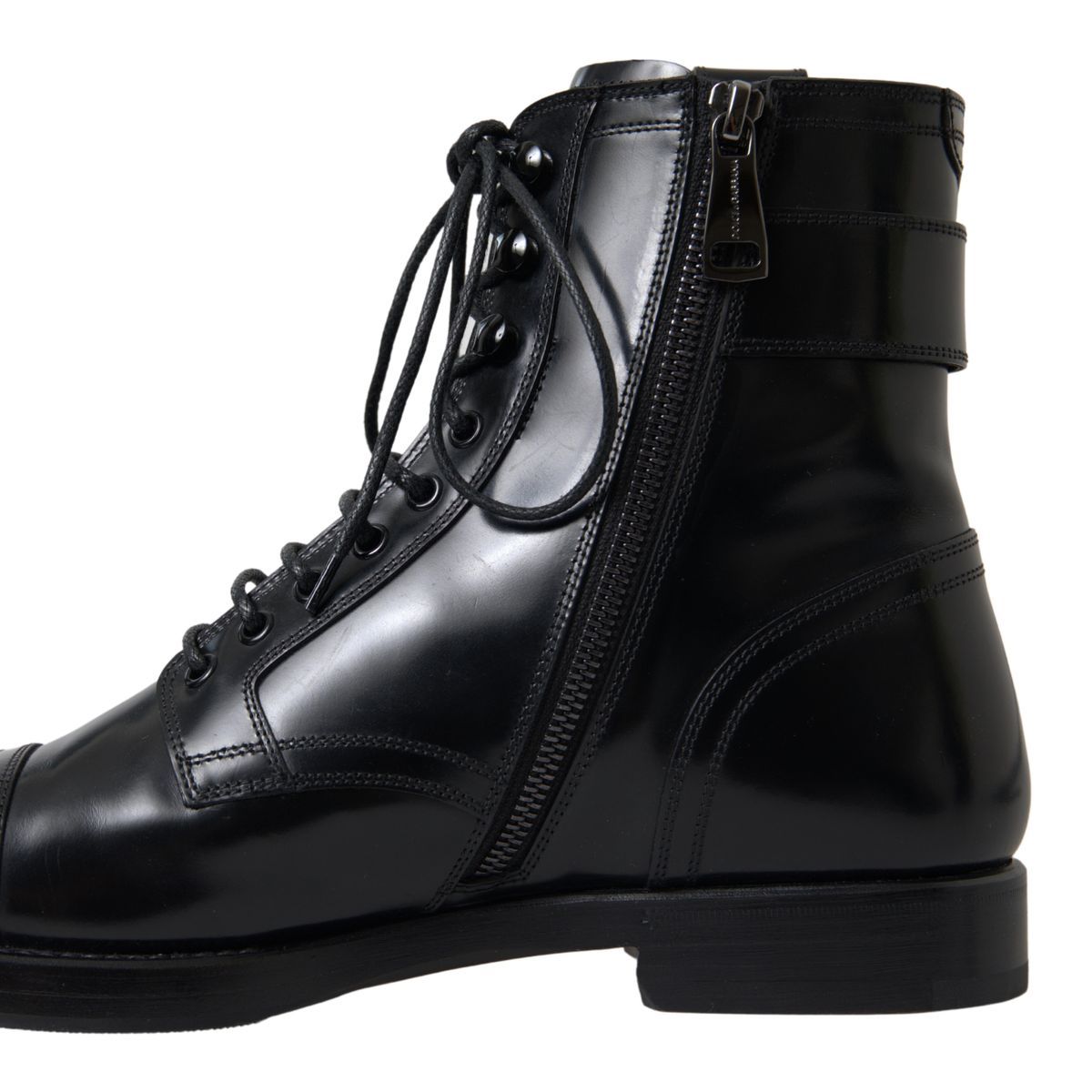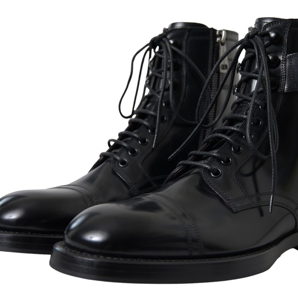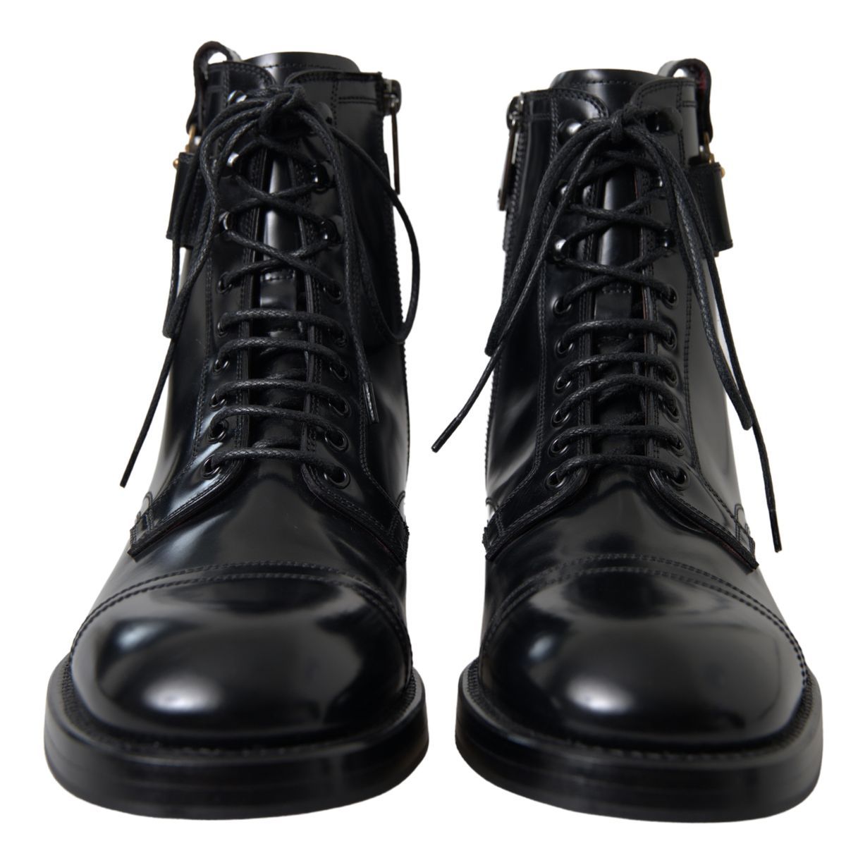 Step into style with these exquisite black formal boots, a perfect blend of elegance and masterful craftsmanship from the renowned house of Dolce & Gabbana. These authentic boots come brand new with tags, ensuring that you receive a product of the highest standard. Made in Italy, these boots boast a sleek silhouette with a convenient zipper closure and are adorned with a subtle yet recognizable logo detail, elevating their exclusivity and appeal.