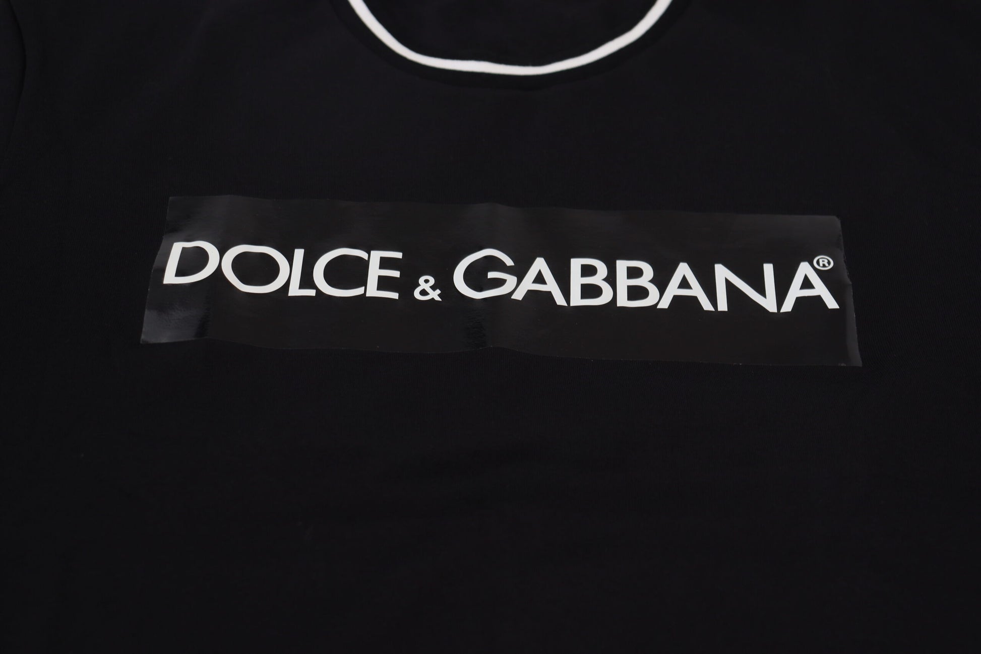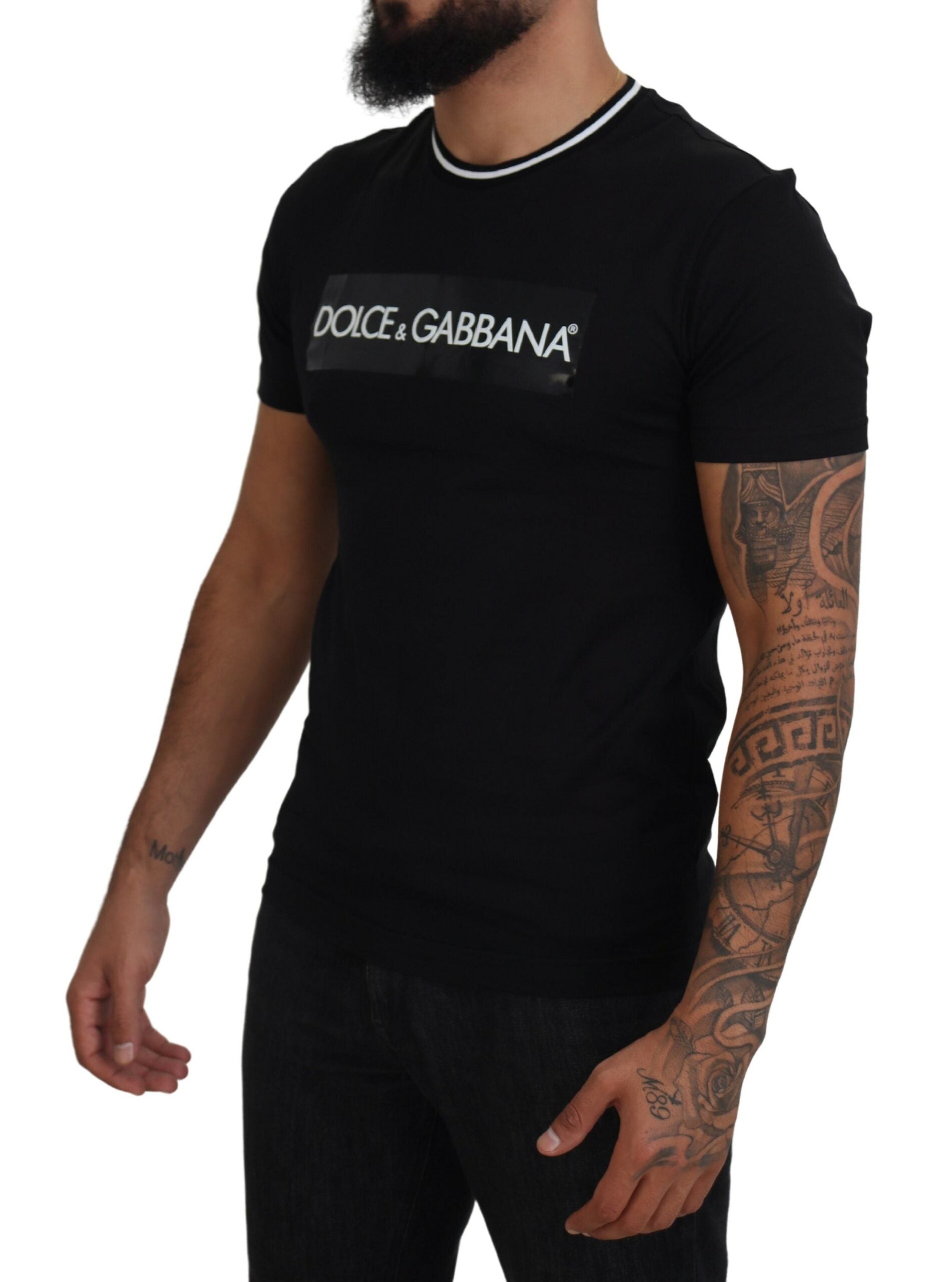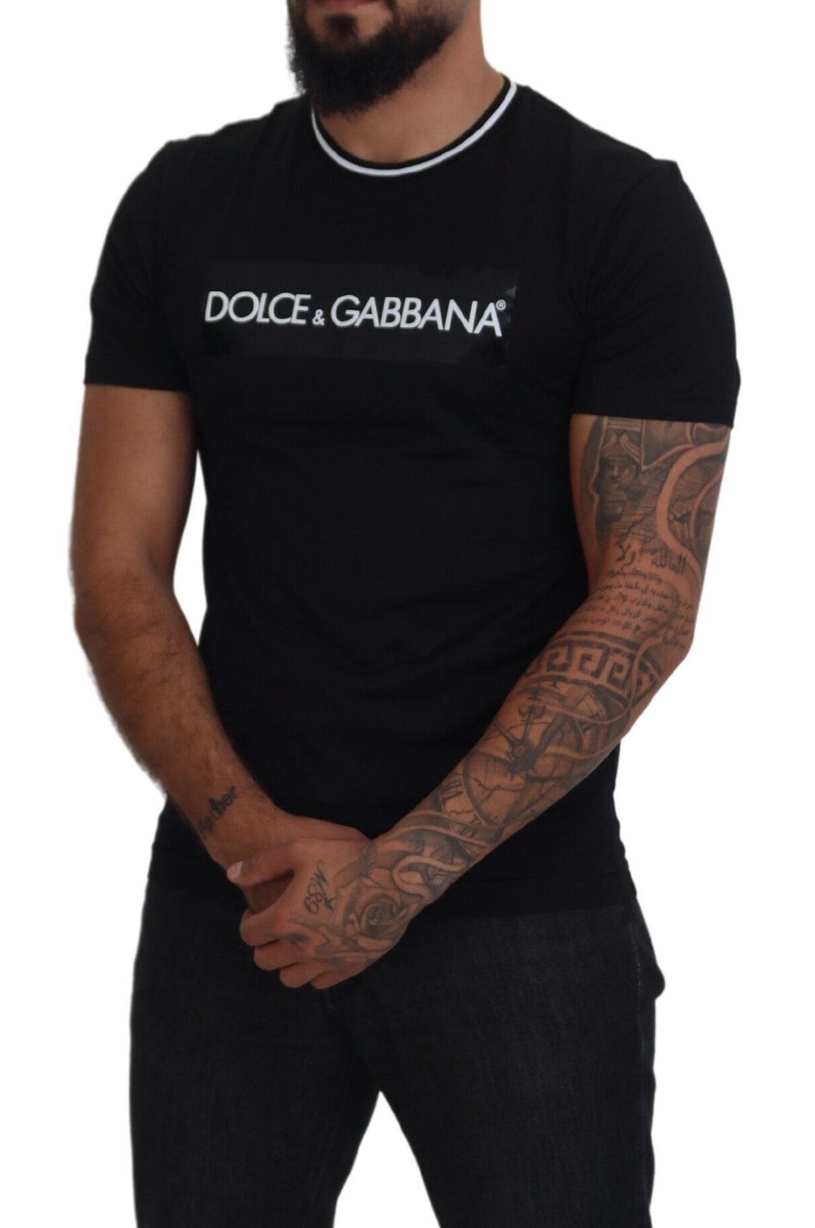 Indulge in the epitome of Italian craftsmanship with this stunning, brand new Dolce & Gabbana t-shirt. This 100% authentic tee is designed to seamlessly blend with your upscale casual wardrobe. Featuring a sleek black hue, adorned with the signature logo print, this t-shirt elevates the conventional short-sleeve and crew neckline design to a realm of high fashion. Crafted from soft, luxurious 100% cotton for uncompromised comfort and a regular fit that ensures a flattering silhouette. Experience the fusion of fashion and comfort, made with love in Italy.