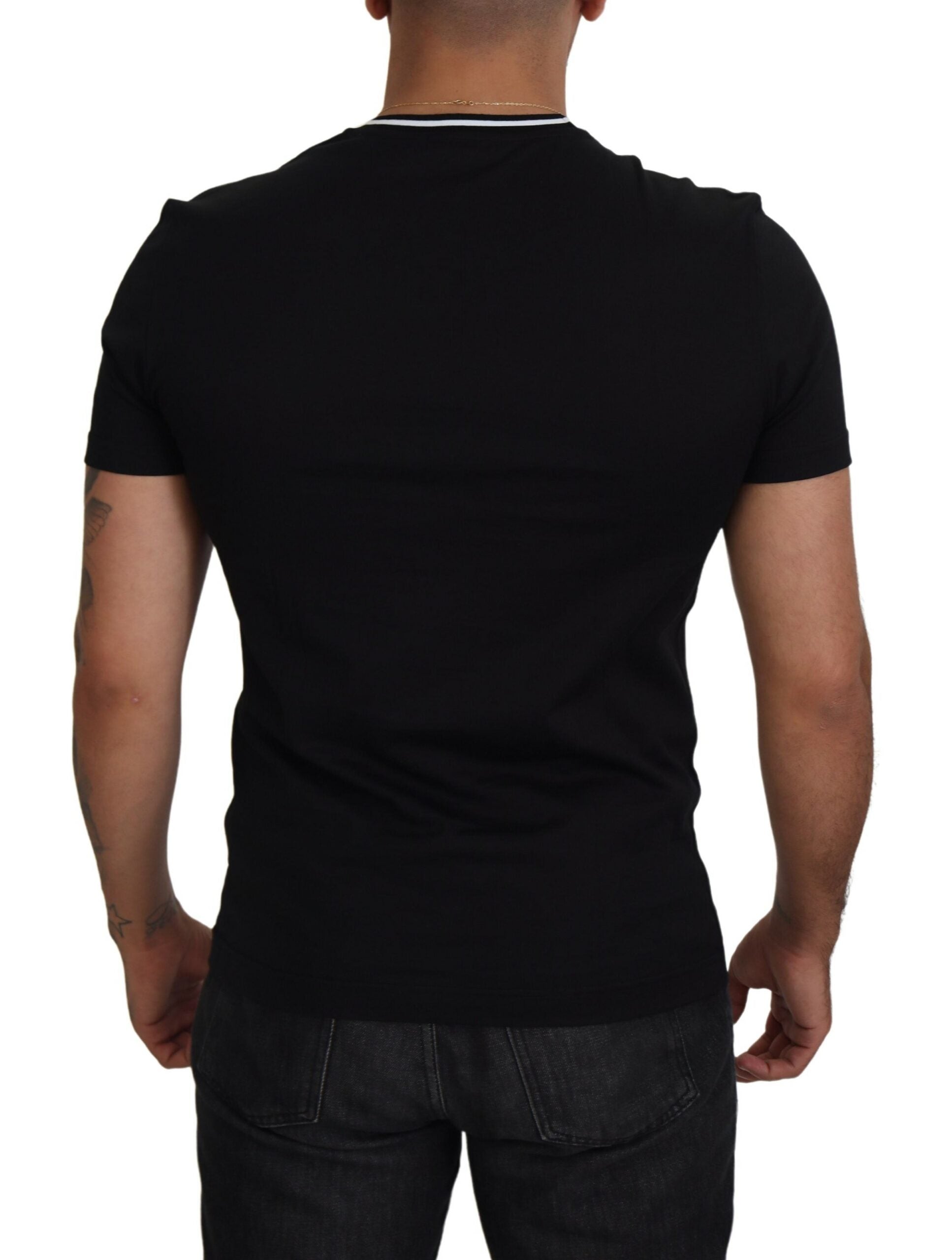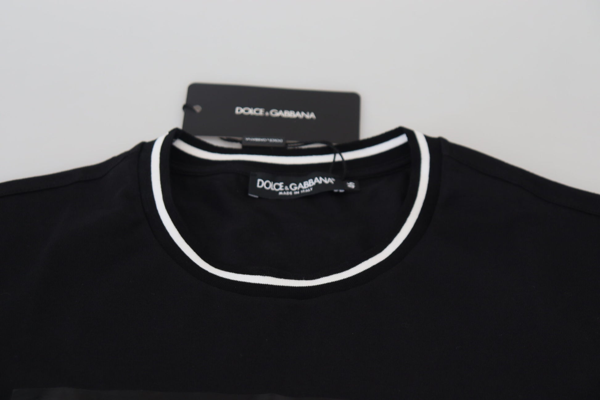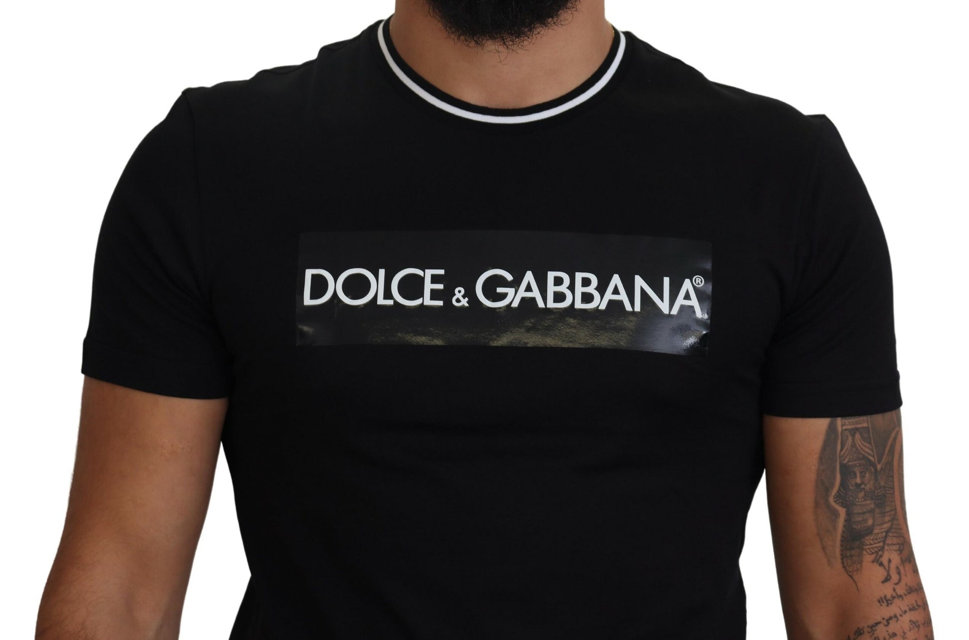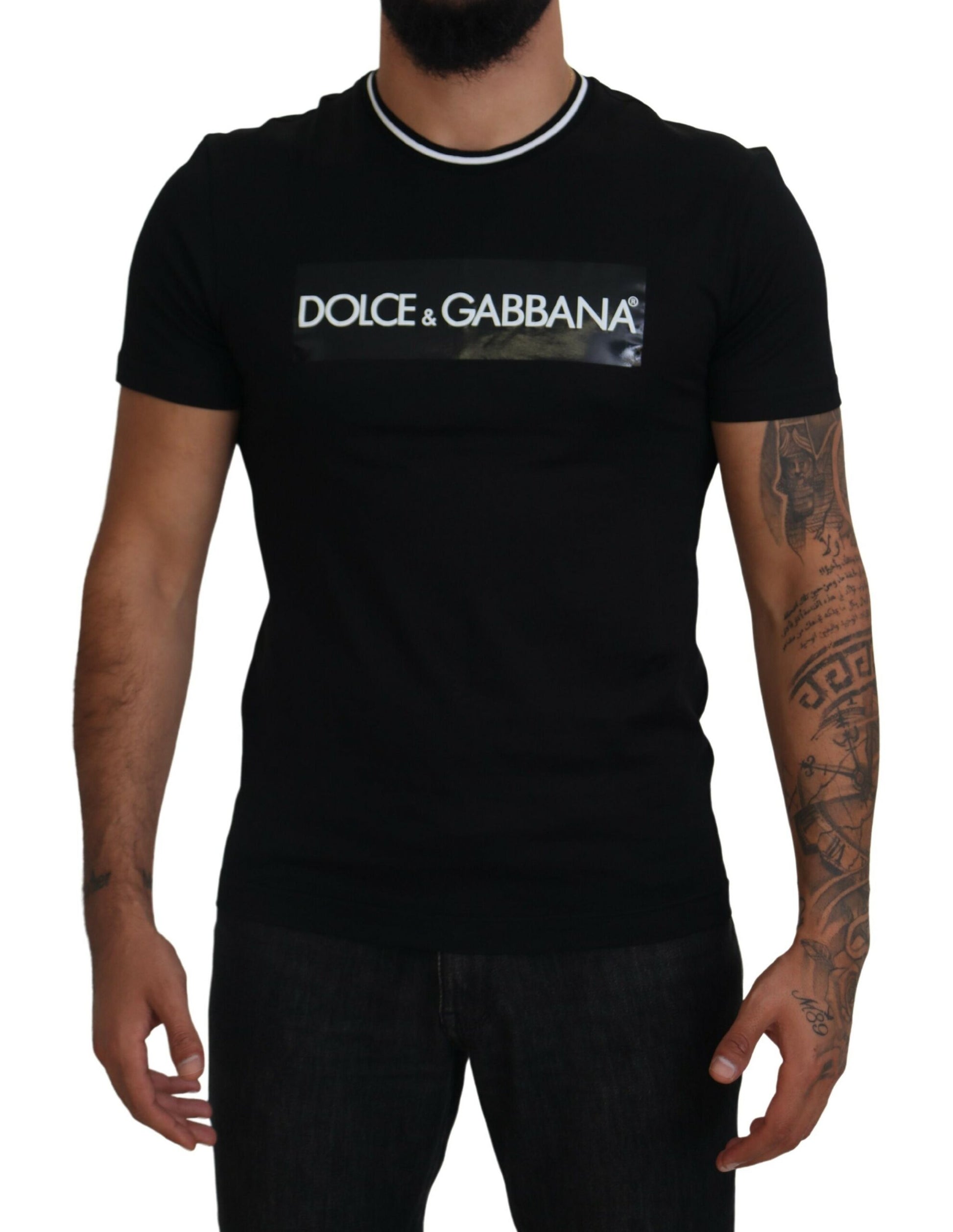 Indulge in the epitome of Italian craftsmanship with this stunning, brand new Dolce & Gabbana t-shirt. This 100% authentic tee is designed to seamlessly blend with your upscale casual wardrobe. Featuring a sleek black hue, adorned with the signature logo print, this t-shirt elevates the conventional short-sleeve and crew neckline design to a realm of high fashion. Crafted from soft, luxurious 100% cotton for uncompromised comfort and a regular fit that ensures a flattering silhouette. Experience the fusion of fashion and comfort, made with love in Italy.