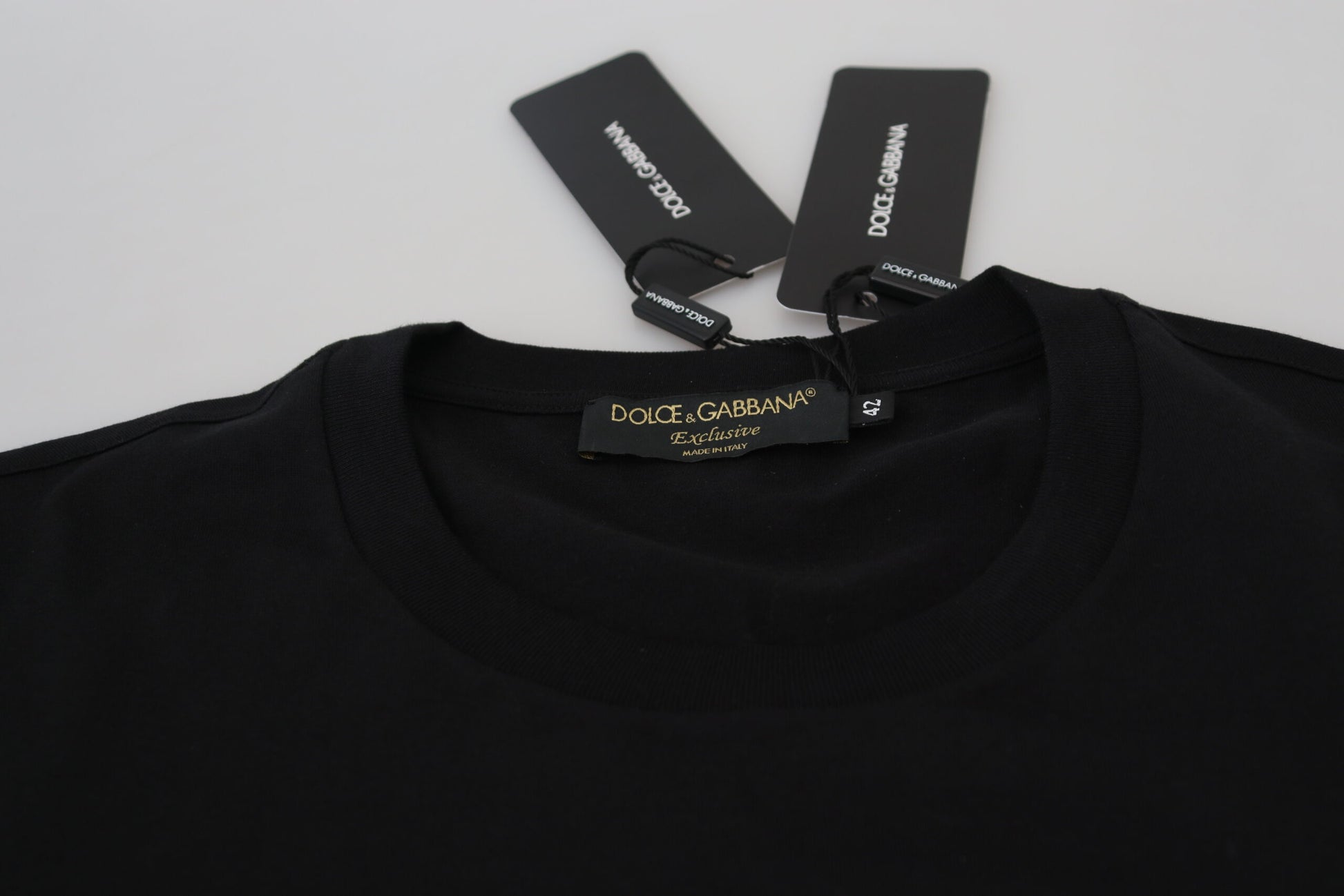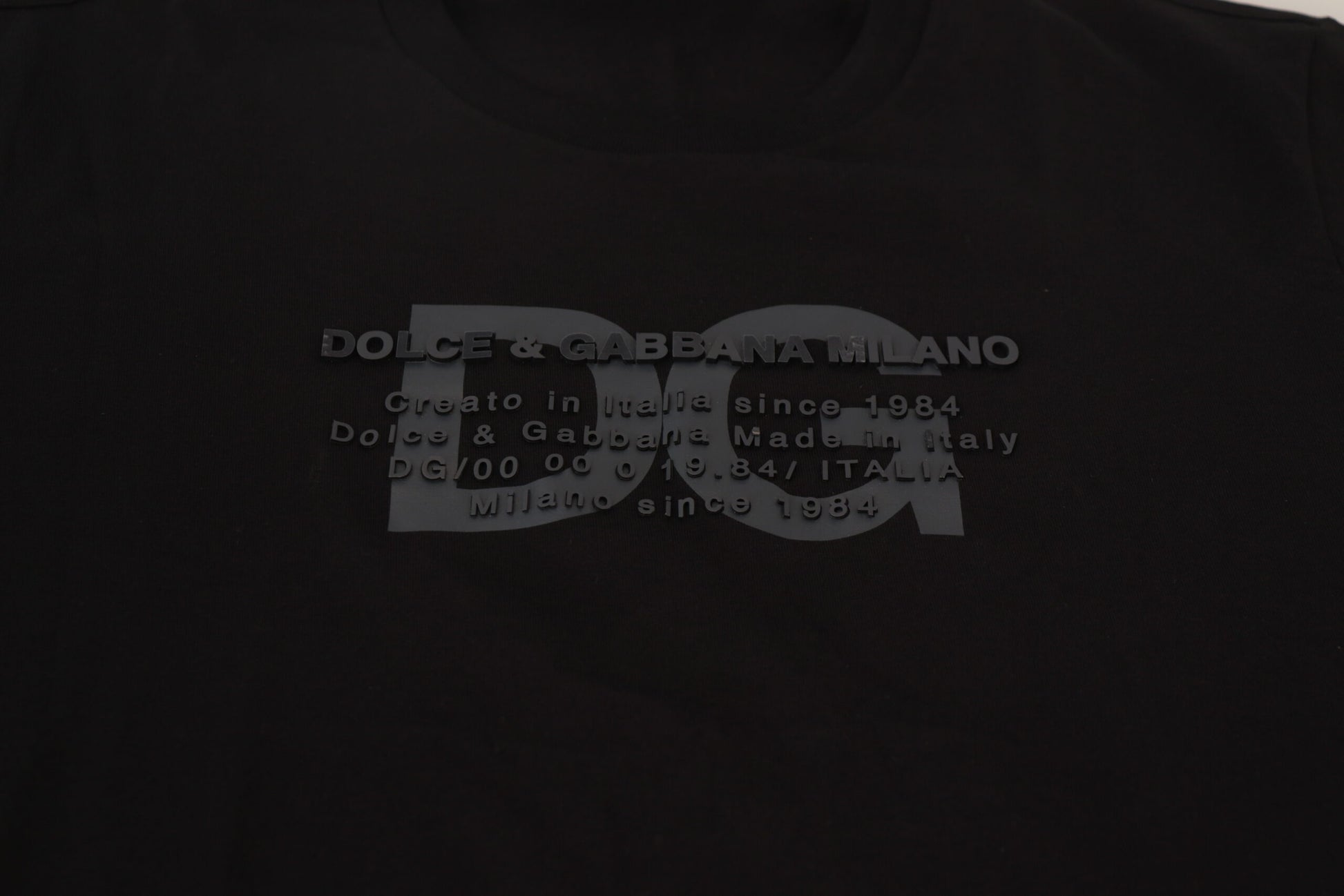 Step up your wardrobe with this sophisticated and stylish black T-shirt from the renowned fashion house Dolce & Gabbana. This piece is brand new with tags, featuring a comfortable regular fit and a bold logo print that captures the eye. Crafted from high-quality 100% cotton, it offers both luxury and comfort, making it a perfect addition to your casual ensemble. Expertly made in Italy, this T-shirt with short sleeves and a classic crew neckline exemplifies the craftsmanship and attention to detail that Dolce & Gabbana is known for.
