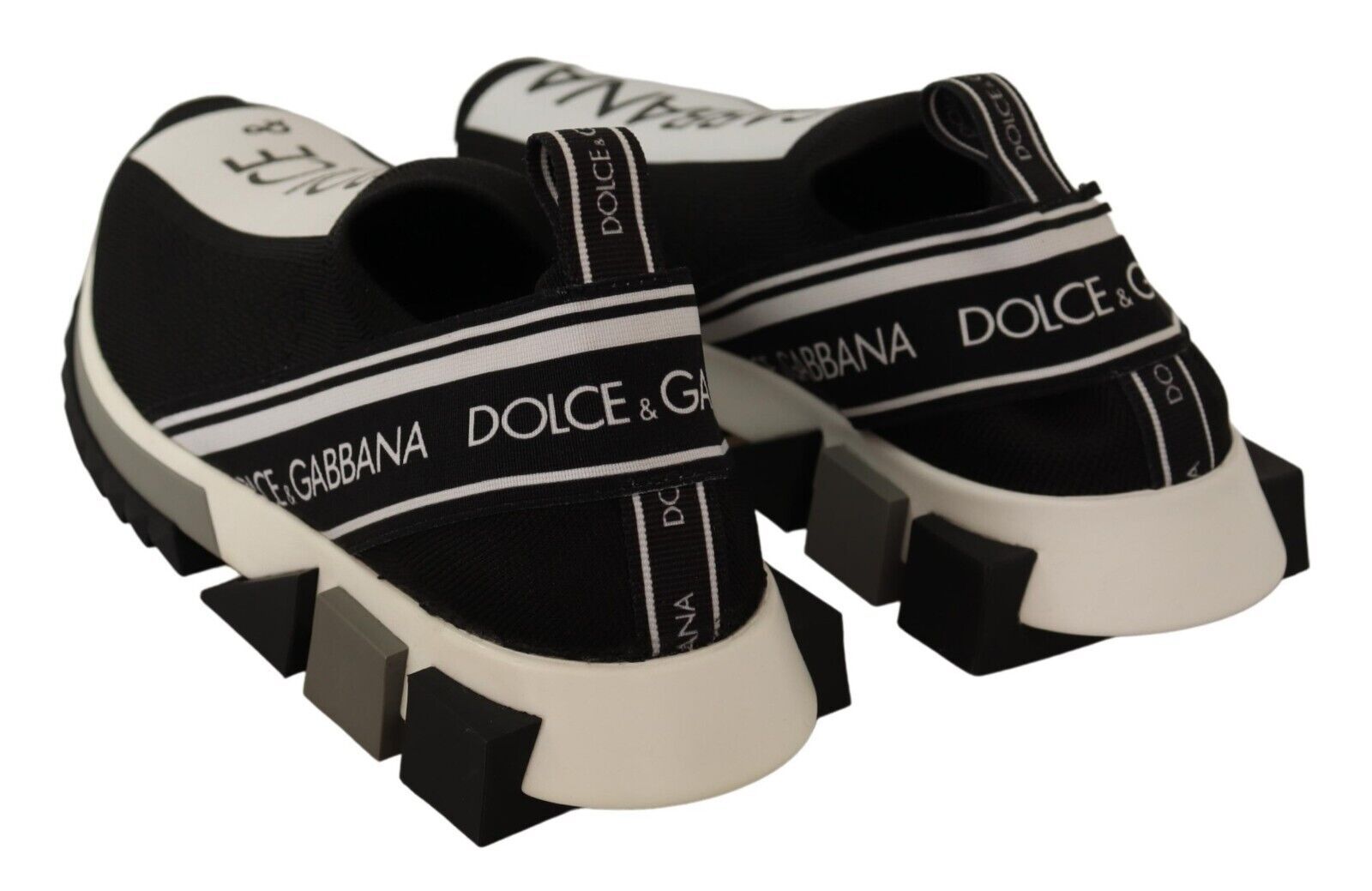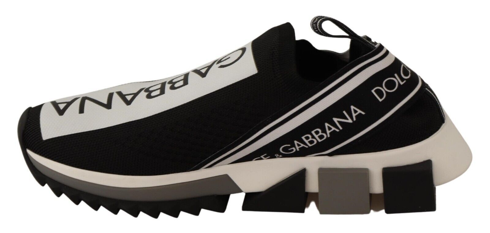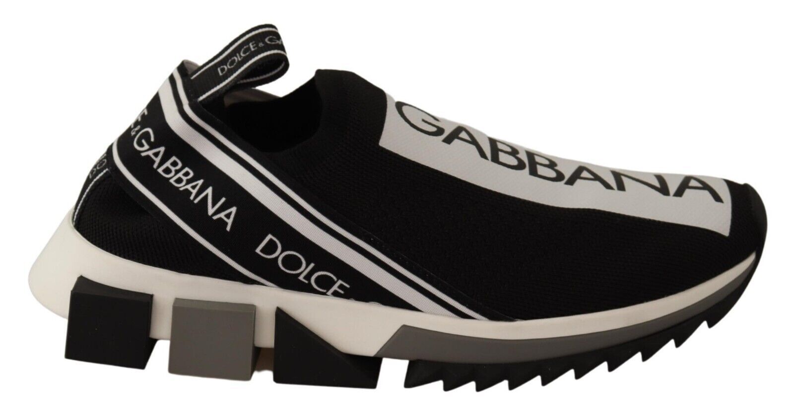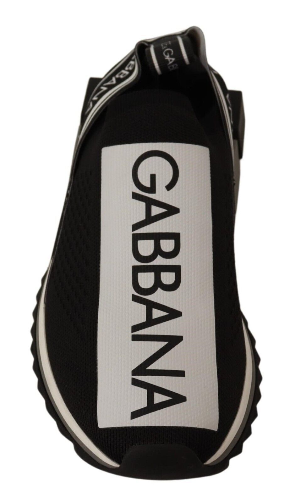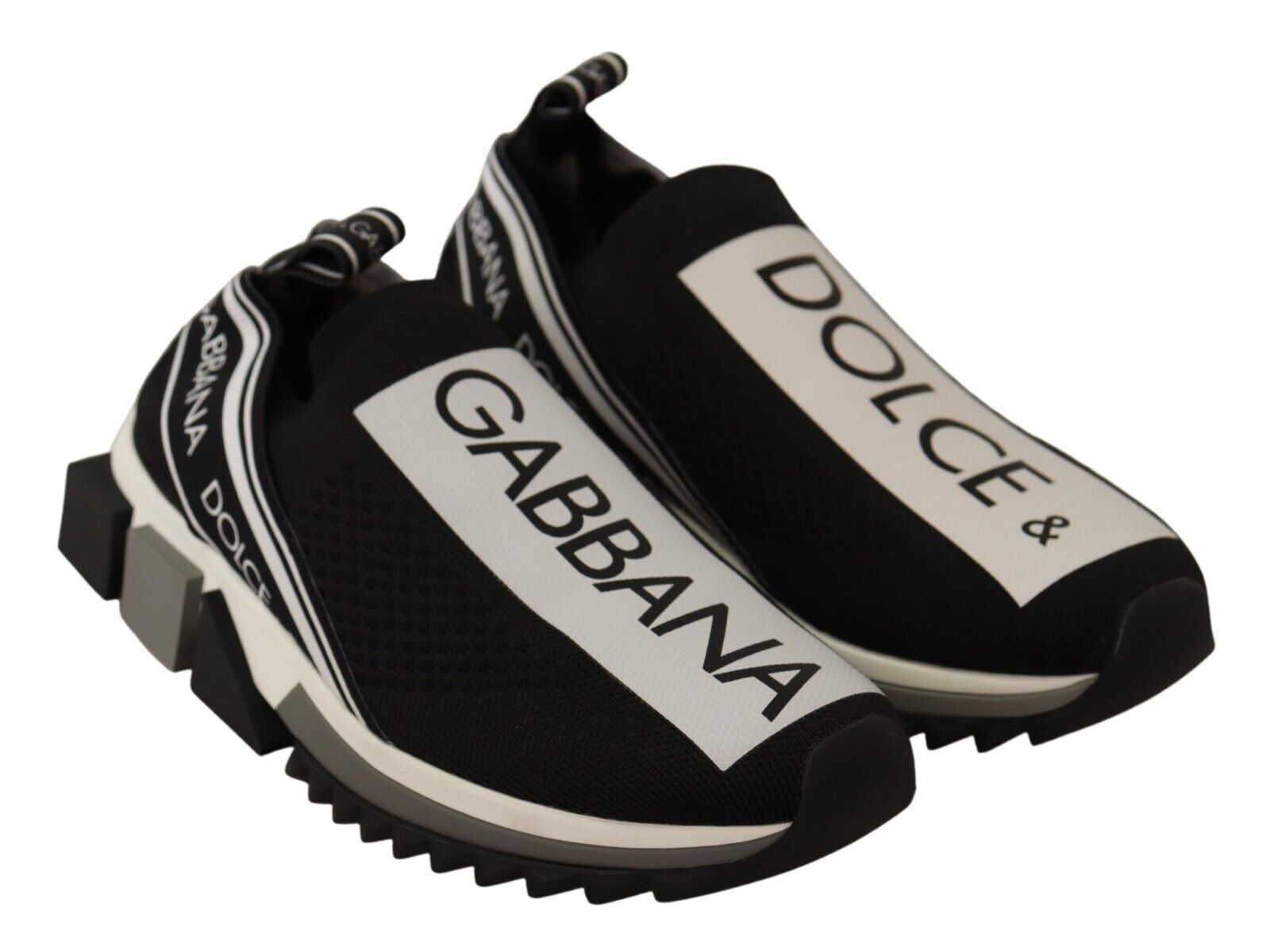 Step into luxury with these chic, brand new Dolce & Gabbana Sorrento Slip-On Sneakers. Designed with a modern monochrome aesthetic, they feature a distinctive logo print on the front and an elasticized logo-embroidered strap at the heel for a snug fit. Built for comfort and style, the sneakers boast a sophisticated rubber sole that marries functionality with the elegance characteristic of Dolce & Gabbana. These sneakers represent an intersection of high Italian craftsmanship and exclusive design, perfect for adding a touch of luxury to any outfit.
