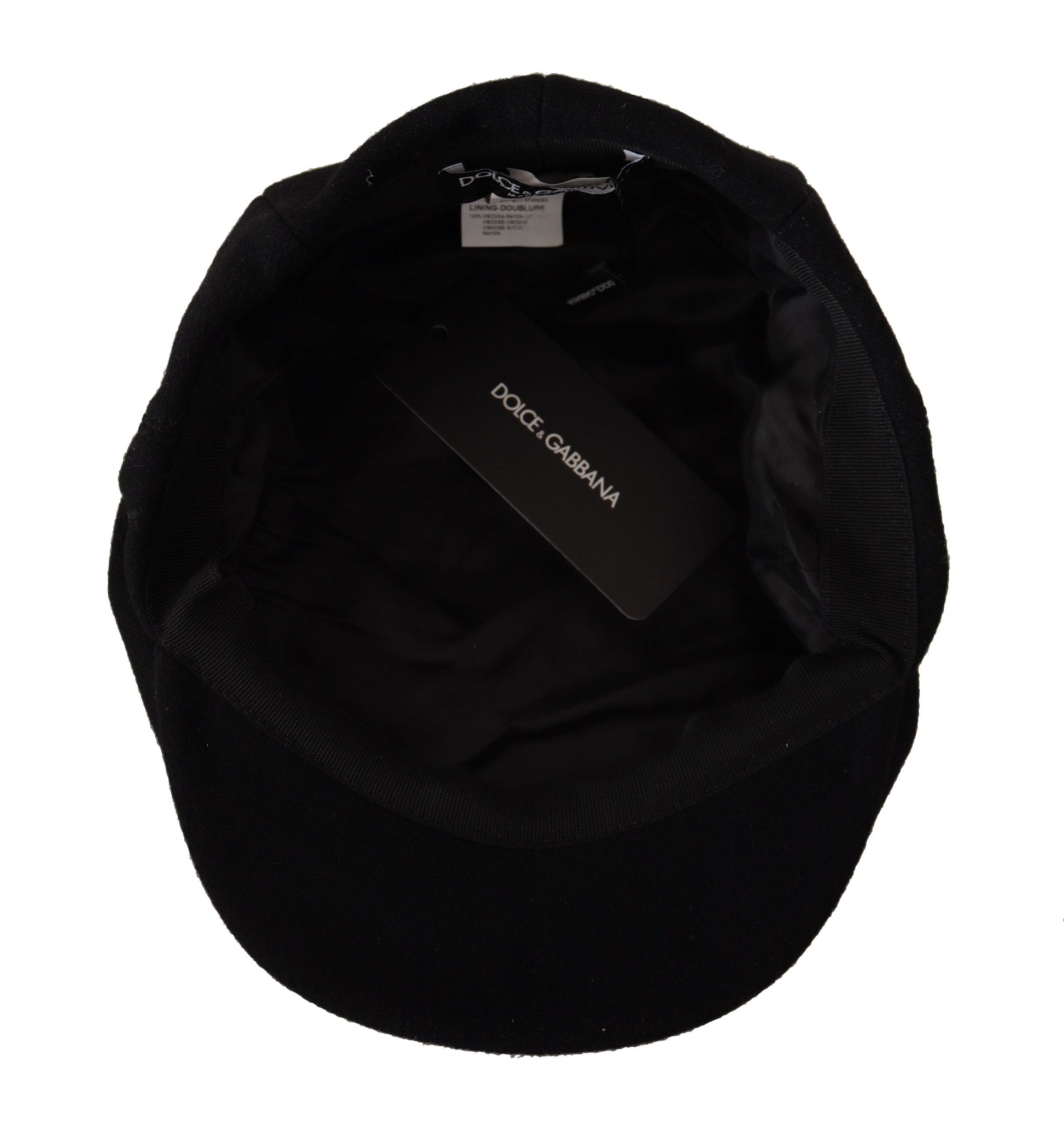 Step up your style with this sophisticated Black Newsboy Hat, a symbol of timeless elegance. Crafted from a high-quality virgin wool blend, this headwear is a testament to classic charm infused with modern finesse. Embrace the impeccable craftsmanship of Dolce & Gabbana, a brand synonymous with luxury and sartorial excellence.