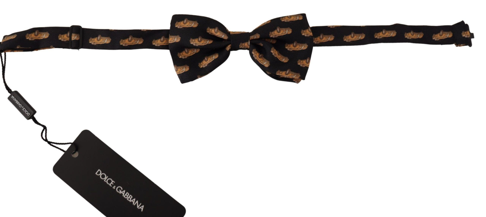 Discover the epitome of elegance with our stunning Dolce & Gabbana bow tie, perfect for adding a touch of luxury to your formal attire. This 100% Authentic bow tie, brand new with tags, features a unique black orange car print that is sure to make a statement. Handcrafted from the finest 100% silk, it comes with an adjustable neck strap, ensuring a perfect fit for any size.