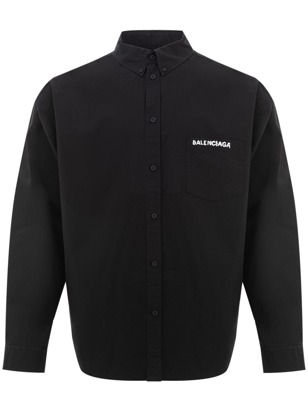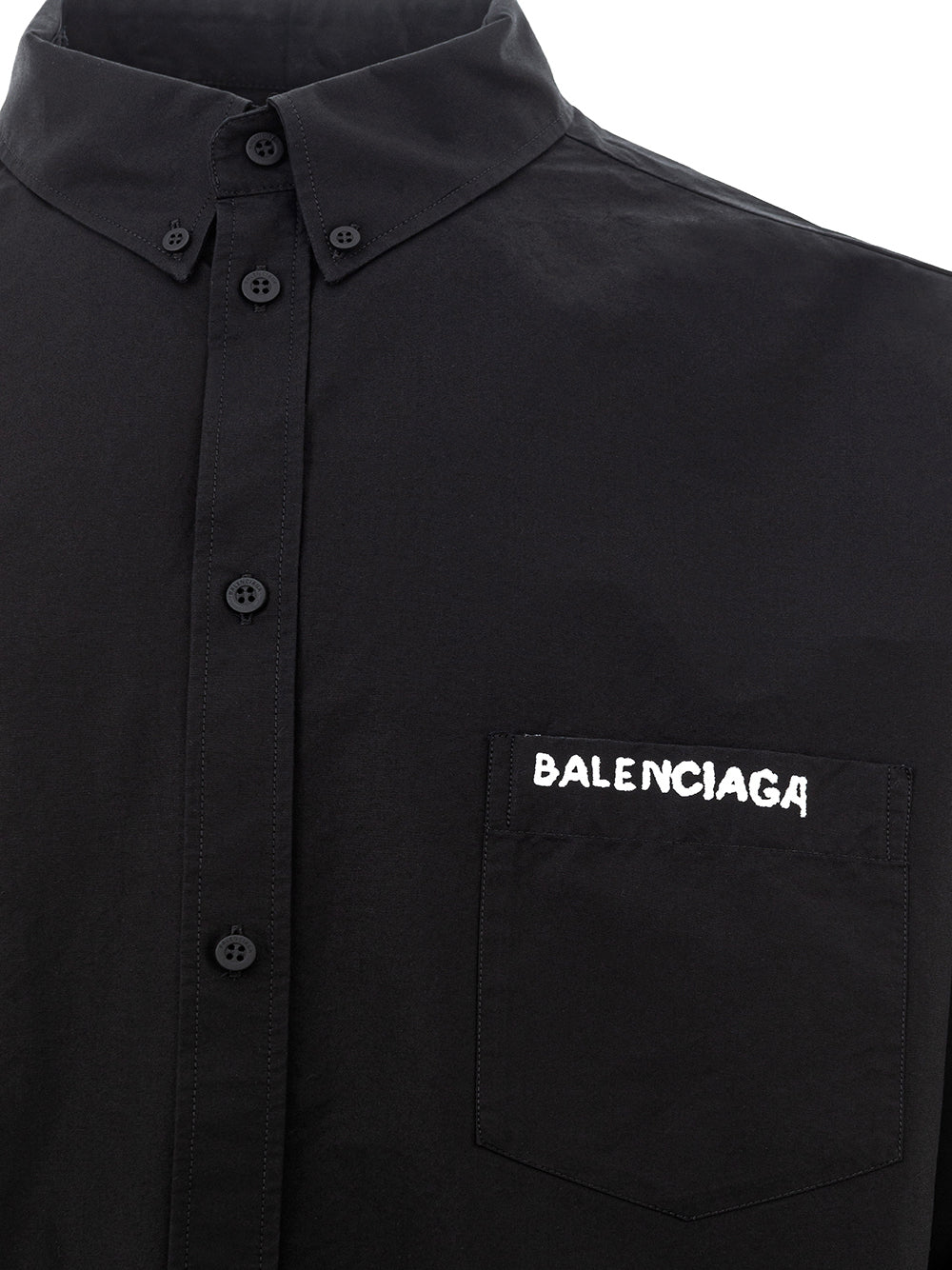 Discover the epitome of modern luxury with this stunning oversized shirt. Crafted from 100% soft cotton, this black shirt by Balenciaga exudes elegance with its sharp silhouette and bold detailing. Featuring a front button closure, the shirt boasts the iconic logo printed on the side and a faded logo detail on the back. Its oversized fit ensures a contemporary and comfortable style, making it perfect for any high-fashion wardrobe. Made in Italy, it represents the pinnacle of designer craftsmanship.
