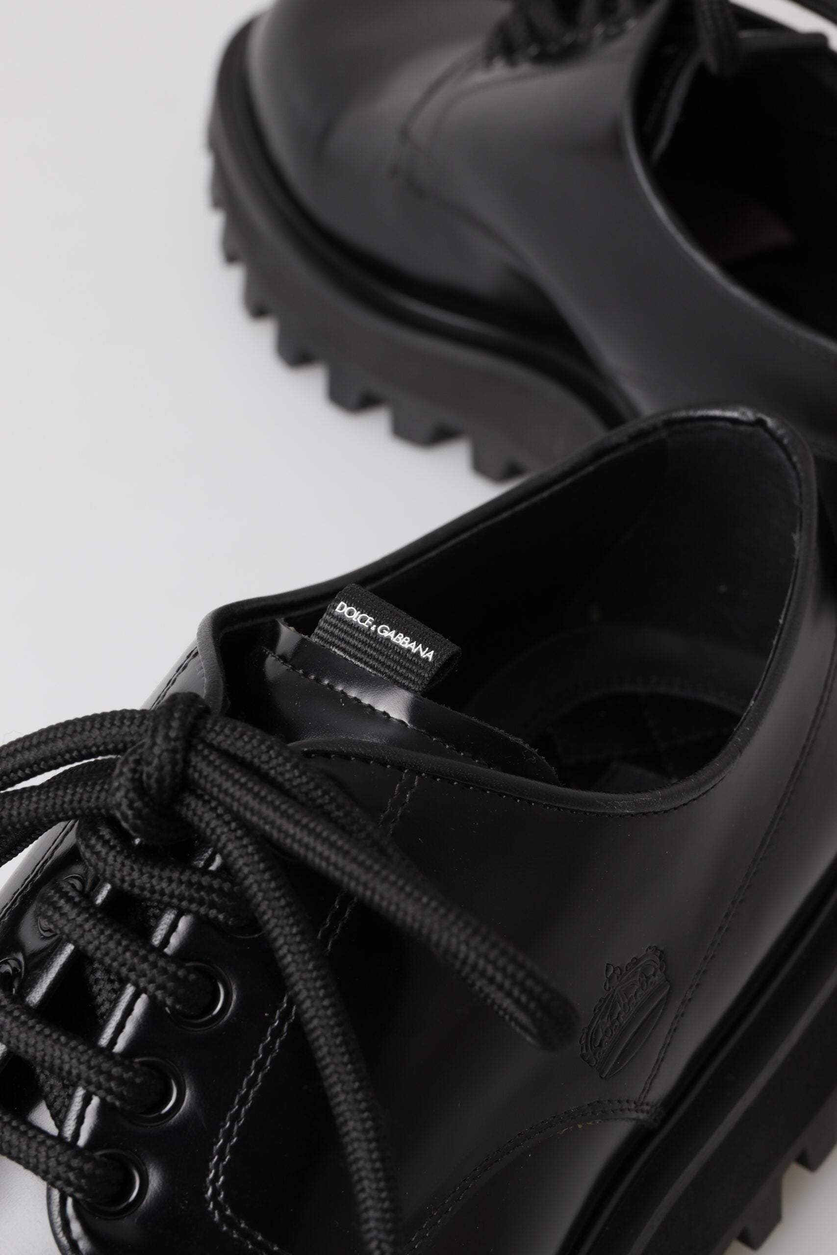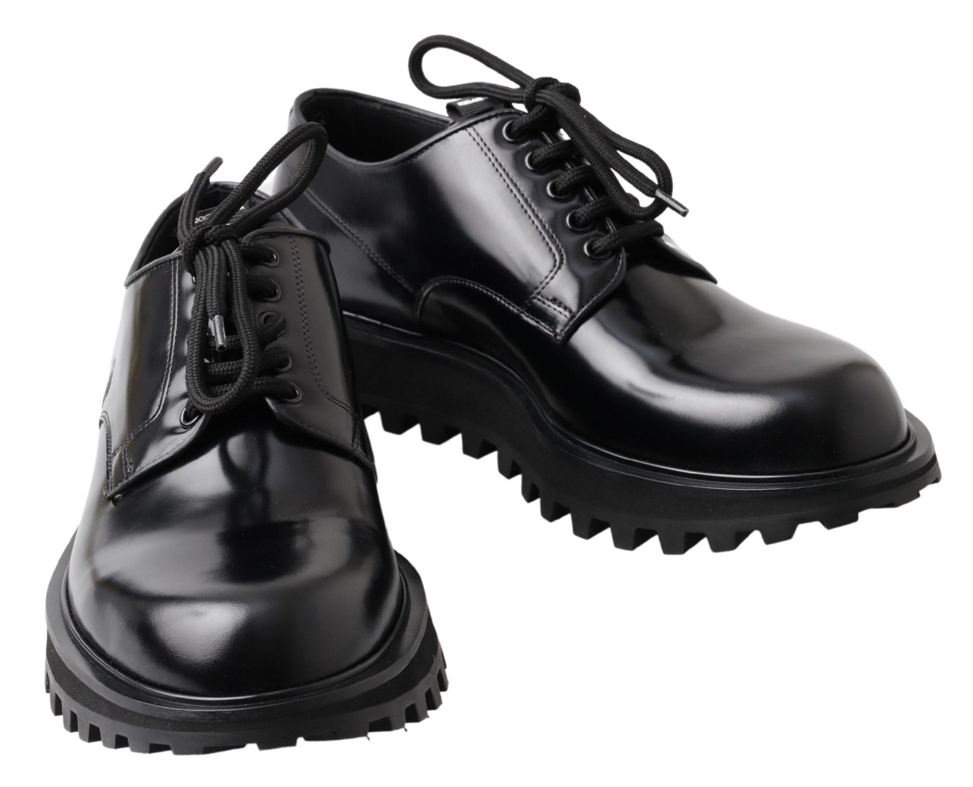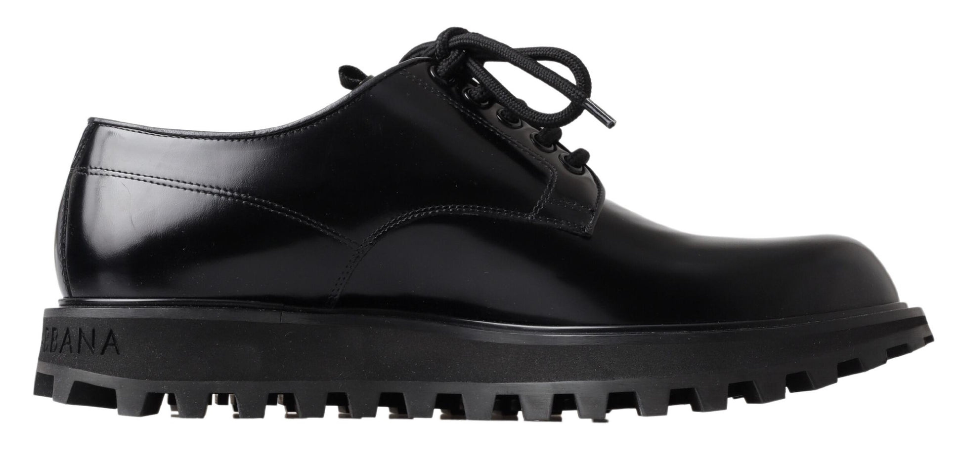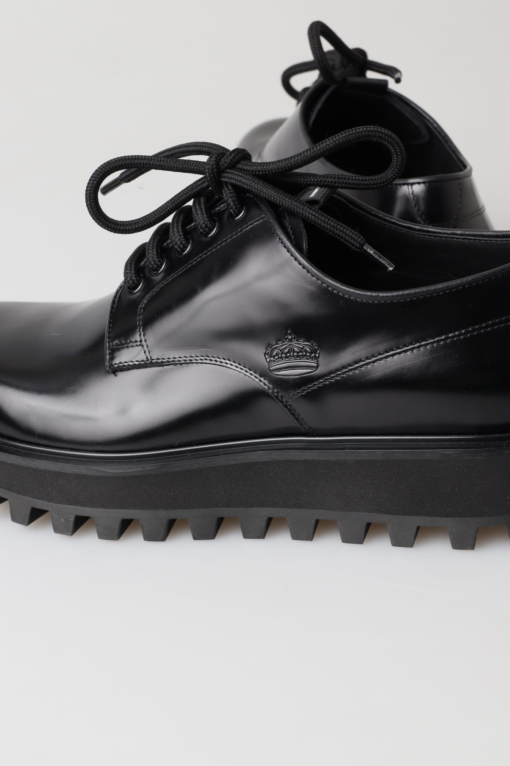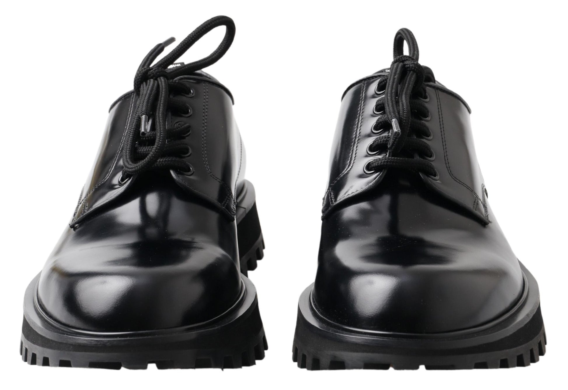 Step into elegance with these pristine, brand new Derby formal shoes by Dolce & Gabbana. Crafted from the finest 100% leather, these shoes promise both luxury and durability. The sleek black colorway offers a timeless look, while the rubber sole ensures practicality without sacrificing style. Impeccably made in Italy, these shoes feature the iconic logo details, reflecting the exquisite craftsmanship and attention to detail that Dolce & Gabbana is renowned for.