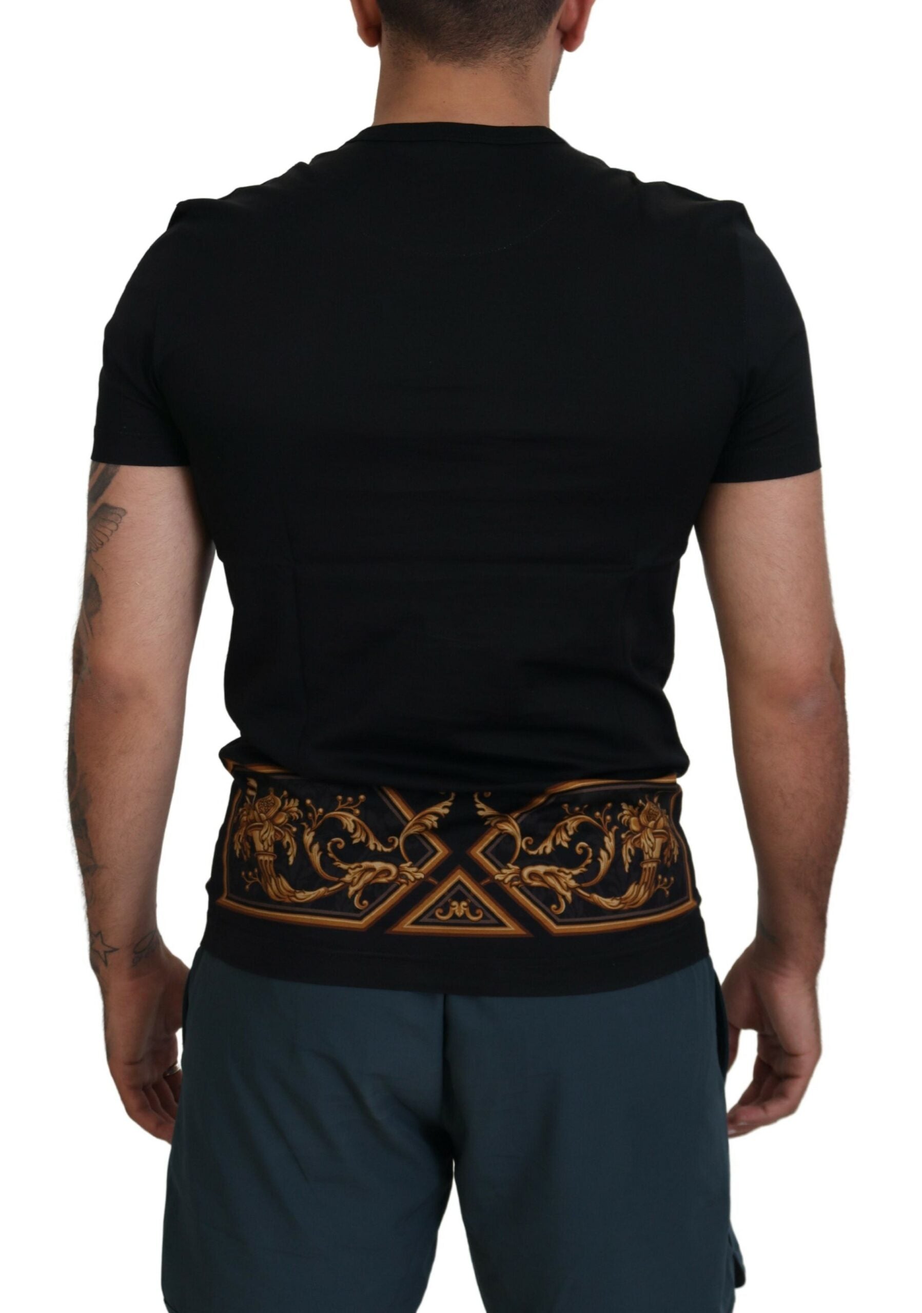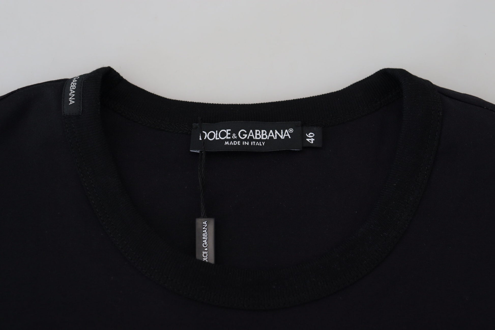Unveil your sophisticated style with this 100% Authentic Dolce & Gabbana casual t-shirt. Crafted in Italy, the pure cotton fabric ensures maximum comfort and longevity. The sleek black hue paired with the brand’s distinct print design offers a dashing addition to your wardrobe. Perfect for a casual outing or a relaxed evening, this t-shirt with short sleeves and a classic crew neck will keep your fashion game on point.