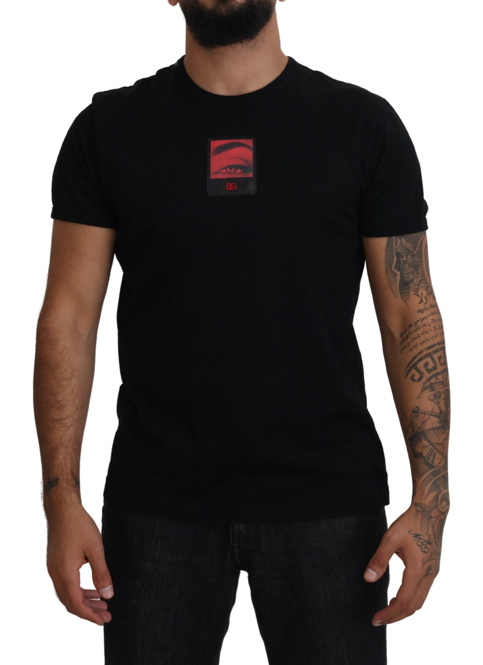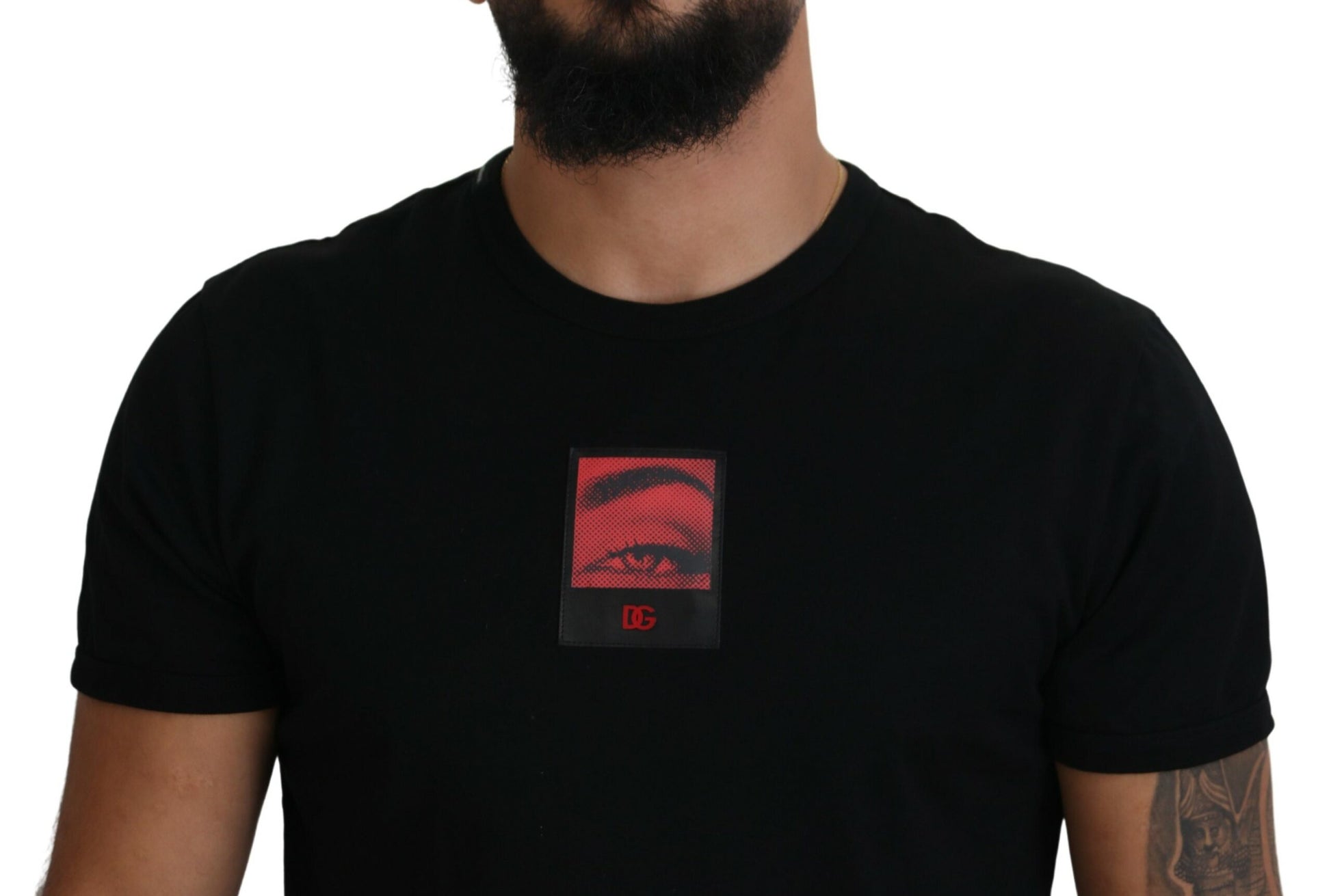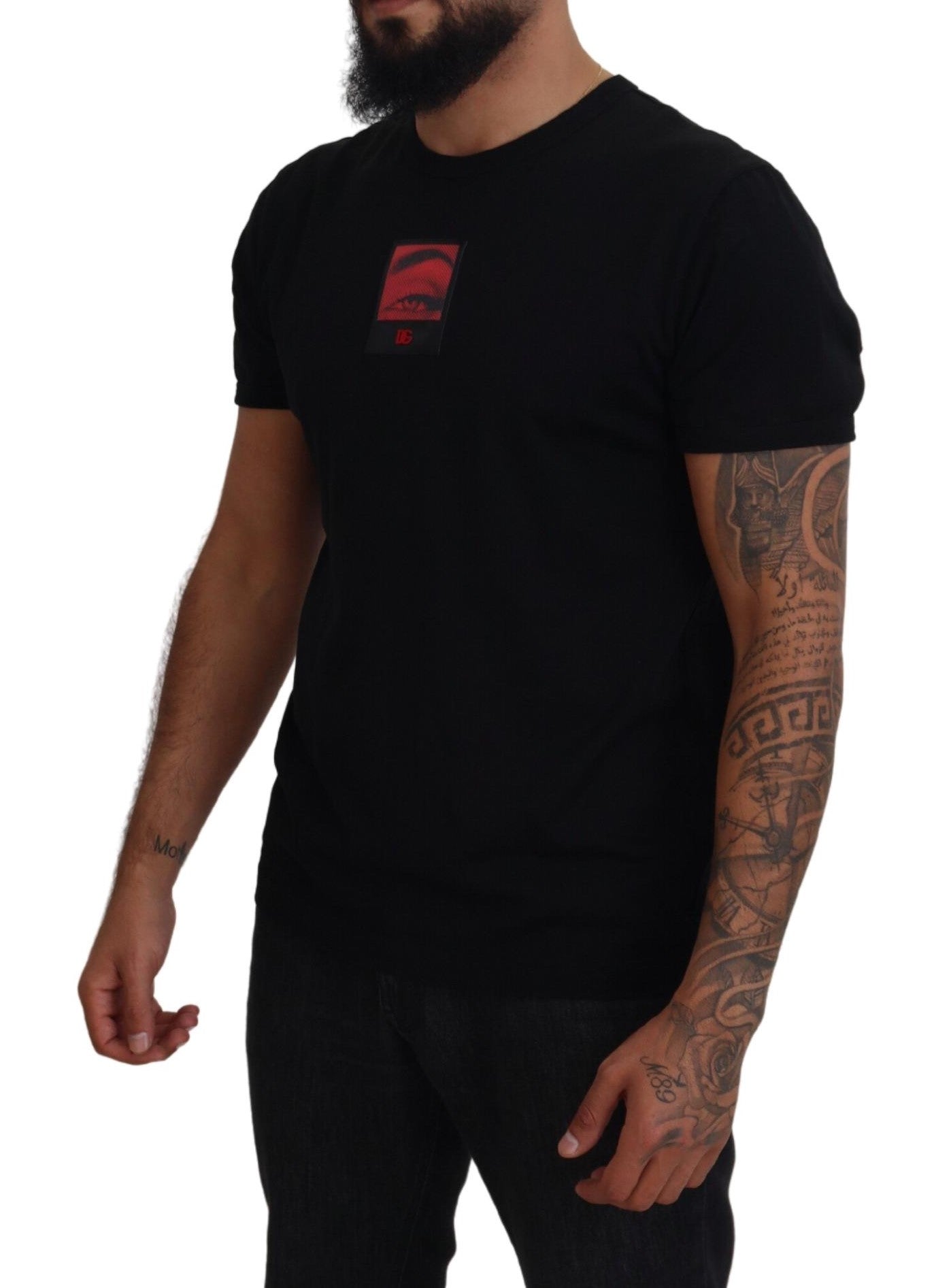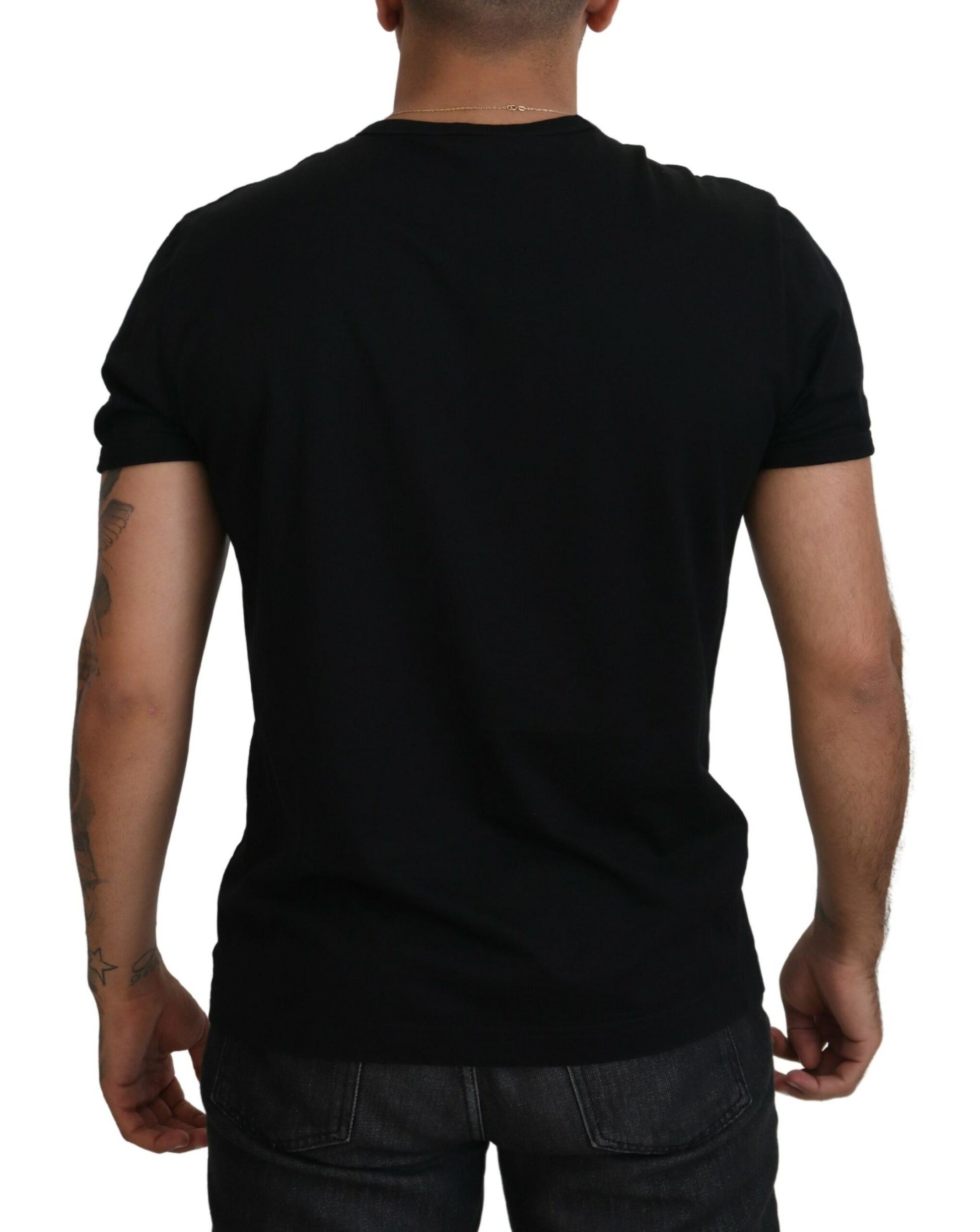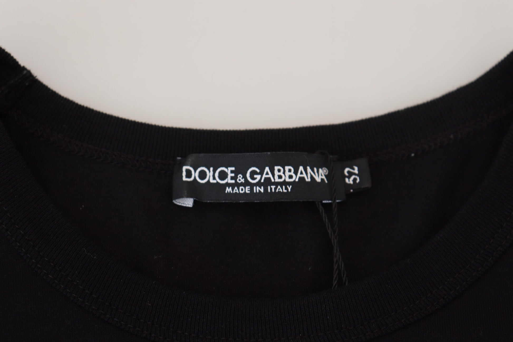 Exude sophistication with this stunning new arrival from Dolce & Gabbana. Featuring short sleeves and a classic crew neck cut, this regular fit t-shirt comes in a versatile black hue, accented with eye-catching print for that touch of luxury. Finely crafted from high-quality cotton, it ensures not only style but also maximum comfort. This piece is a testament to Italian craftsmanship and is perfect for enhancing your everyday ensembles.