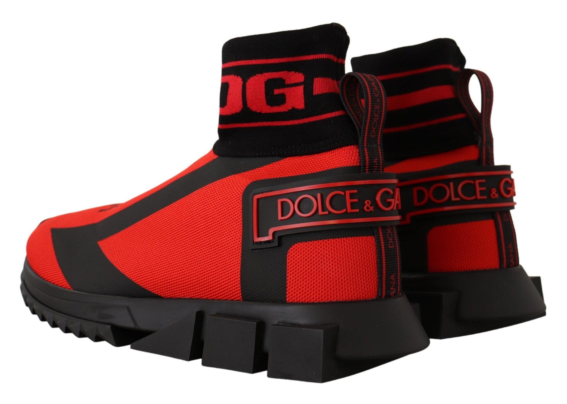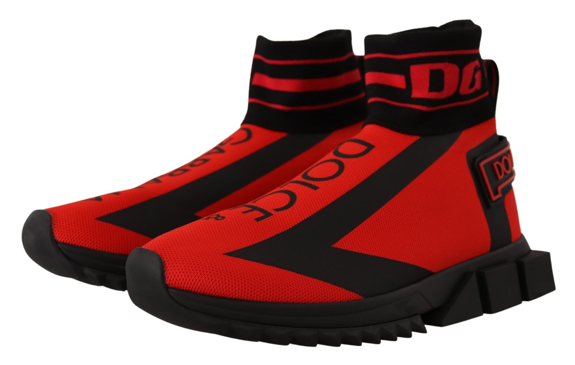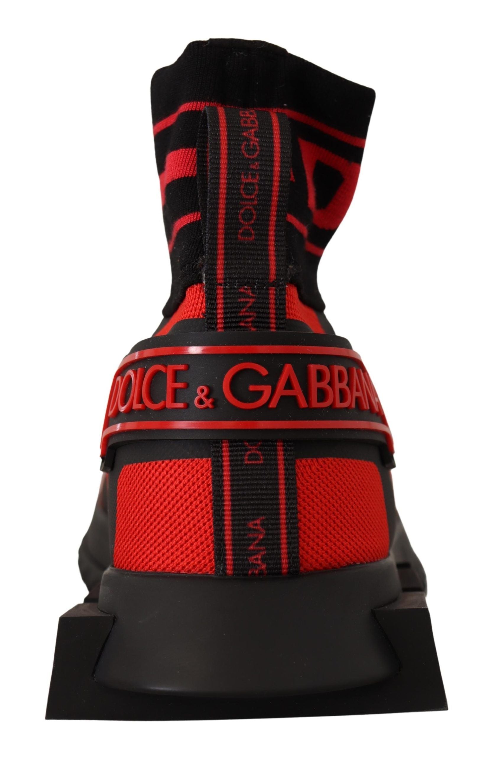 Step into luxury with these exquisite Dolce & Gabbana sneakers, brand new with tags. Designed with a modern silhouette, these men’s Sorrento casual sock sneakers boast a sleek monochrome black design with a striking red detail, perfect for those who appreciate the mix of casual sophistication and comfort. Made in Italy, these shoes reflect an unparalleled level of craftsmanship and feature a comfortable rubber sole, ensuring both durability and style.