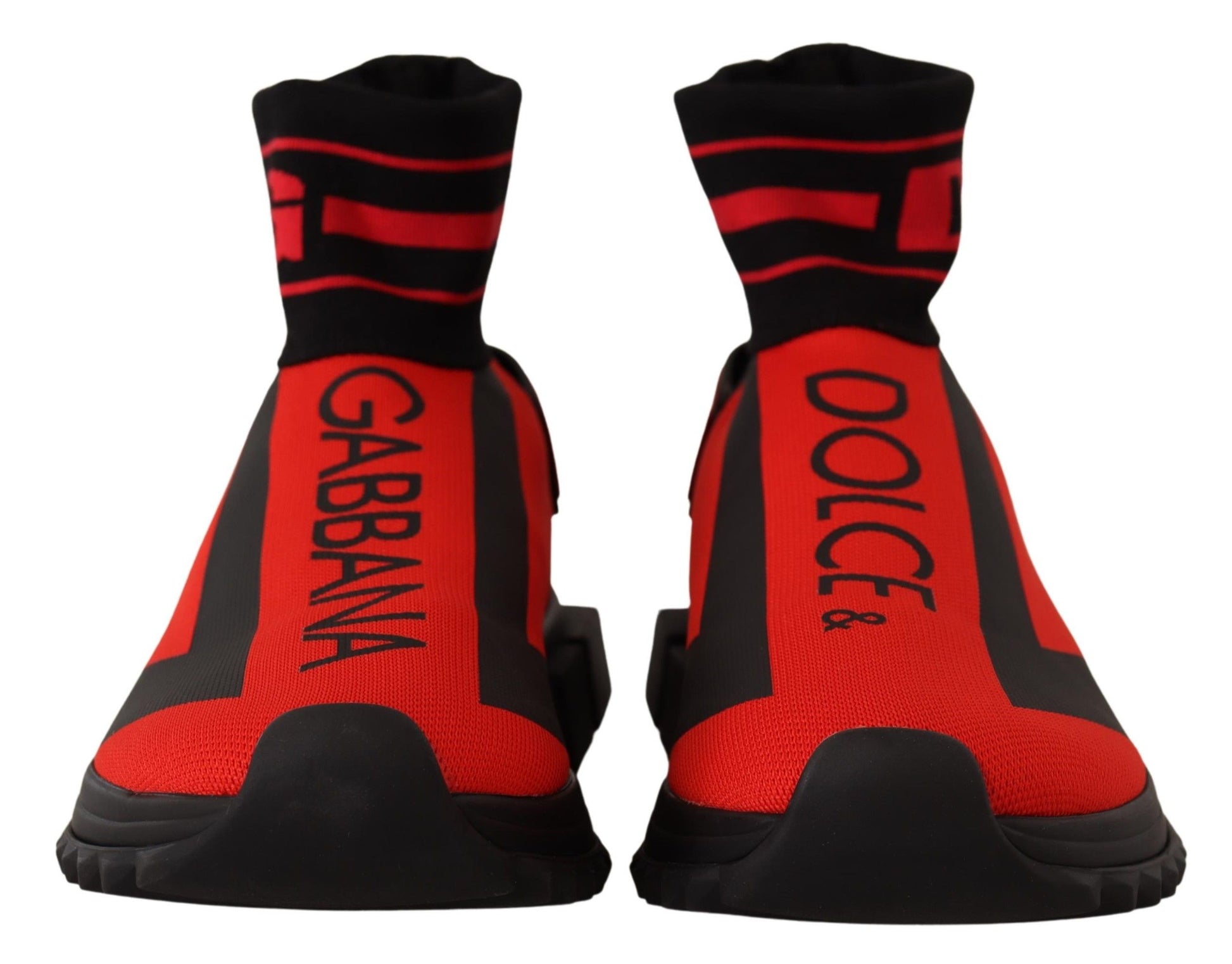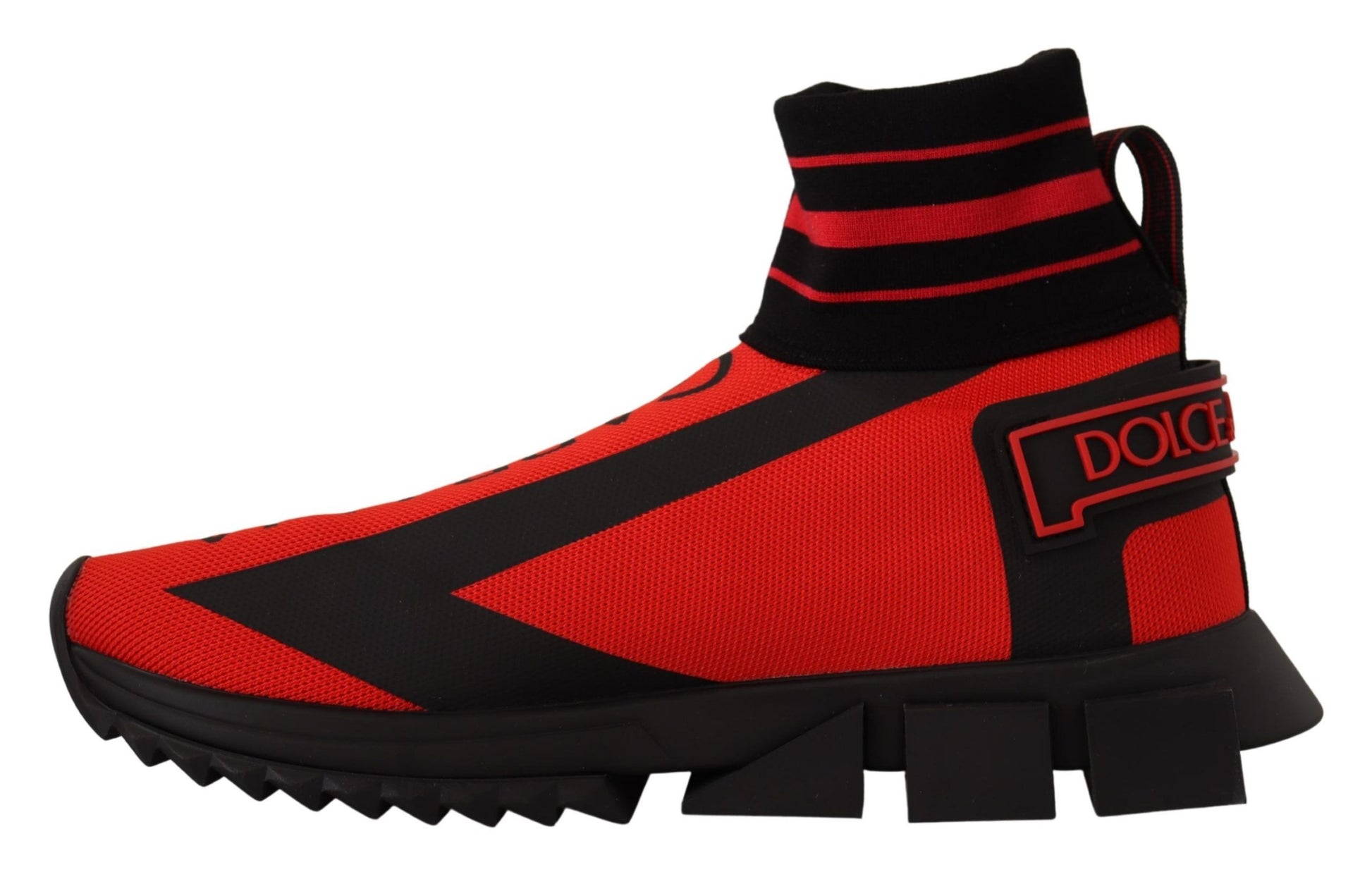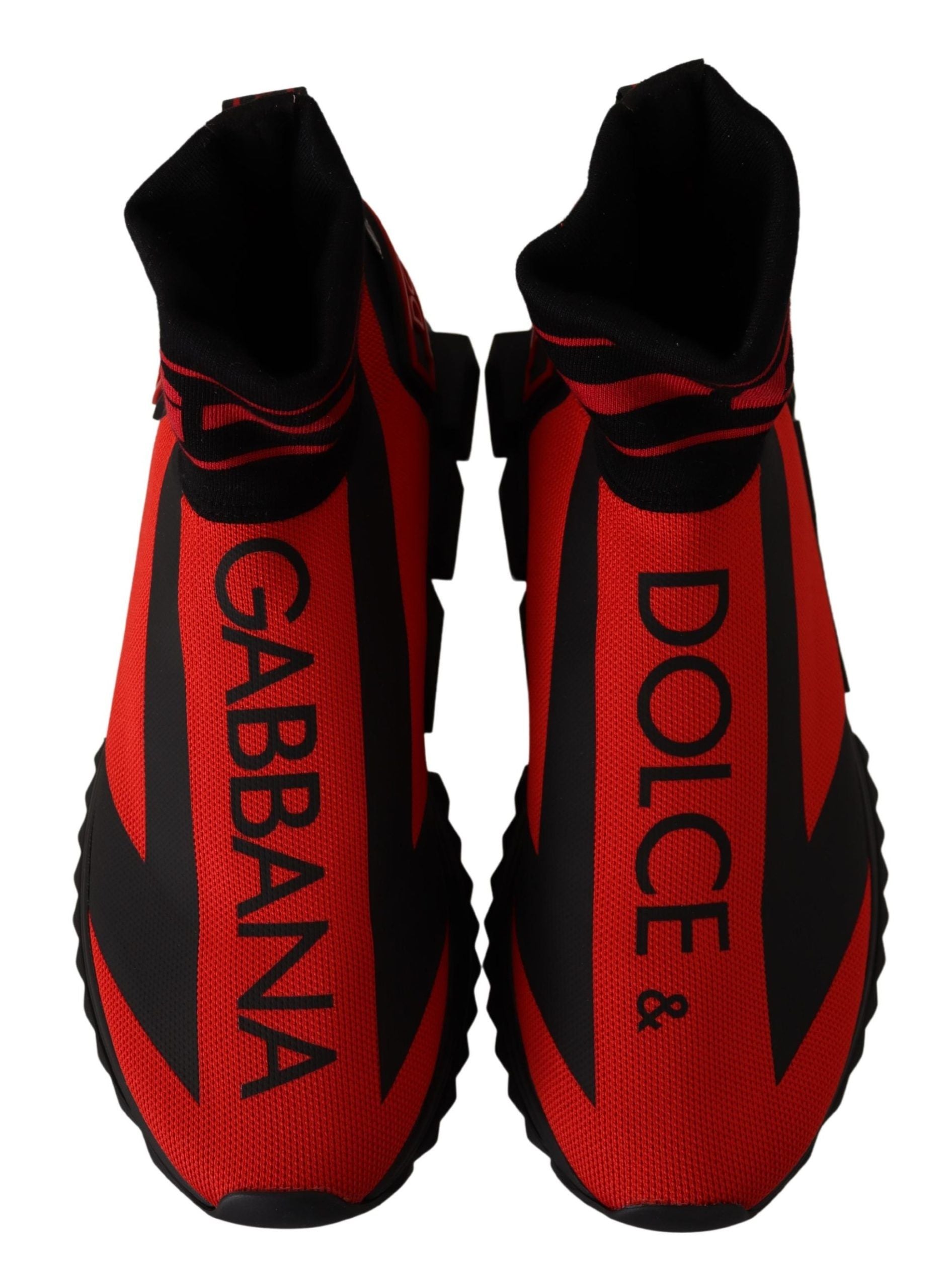 Step into luxury with these exquisite Dolce & Gabbana sneakers, brand new with tags. Designed with a modern silhouette, these men’s Sorrento casual sock sneakers boast a sleek monochrome black design with a striking red detail, perfect for those who appreciate the mix of casual sophistication and comfort. Made in Italy, these shoes reflect an unparalleled level of craftsmanship and feature a comfortable rubber sole, ensuring both durability and style.