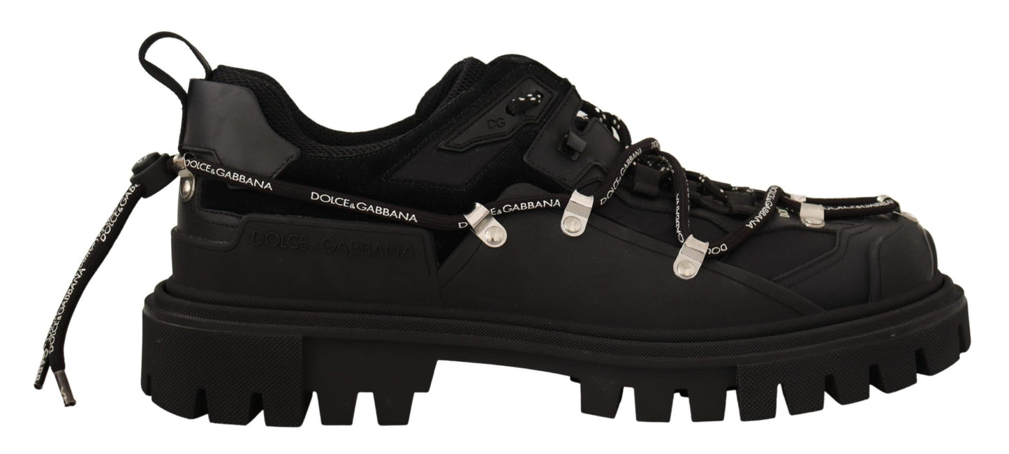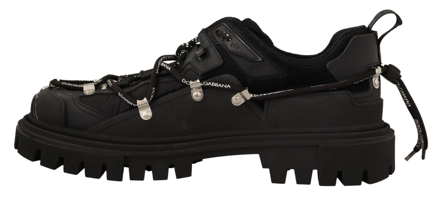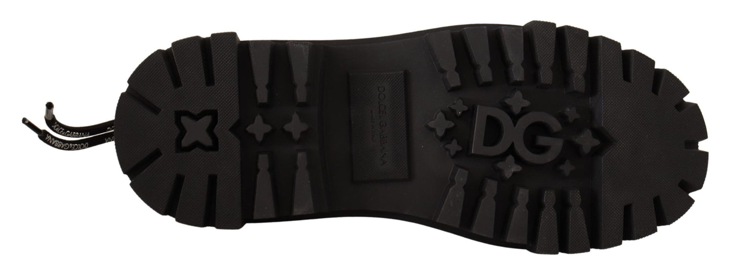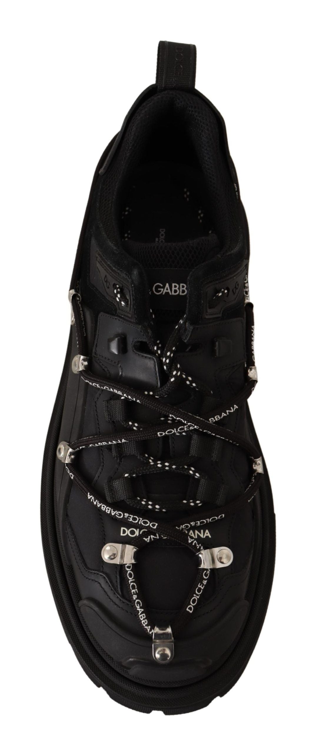 Discover the epitome of Italian craftsmanship with these exquisite sneakers from Dolce & Gabbana. Perfect for the modern man, these lace-up casual sneakers blend luxury with comfort. Their sleek black leather design, complemented by a durable rubber sole, makes them an ideal choice for any stylish ensemble. With the iconic logo detail, these shoes are sure to make a statement wherever you go. Made in Italy, they’re not just shoes, but a testament to high-end fashion and exclusivity.