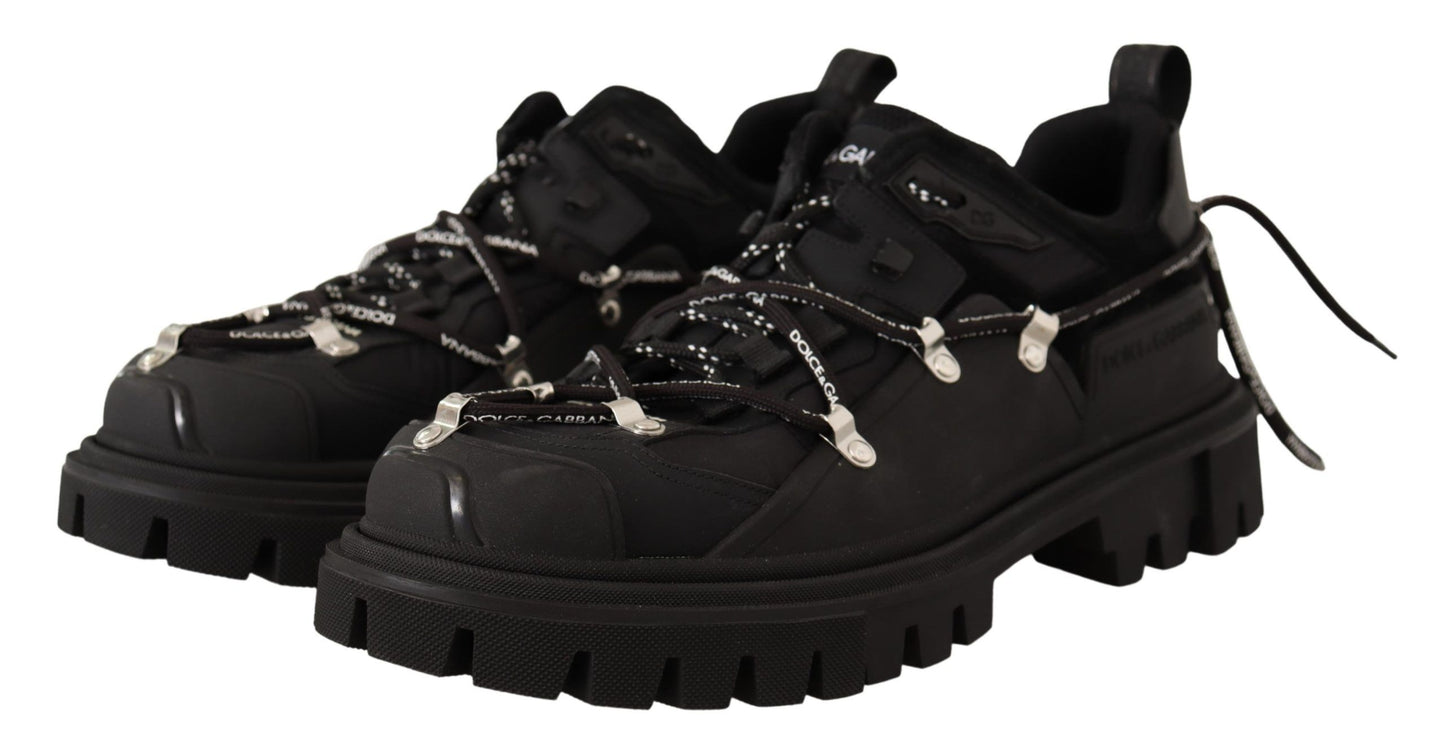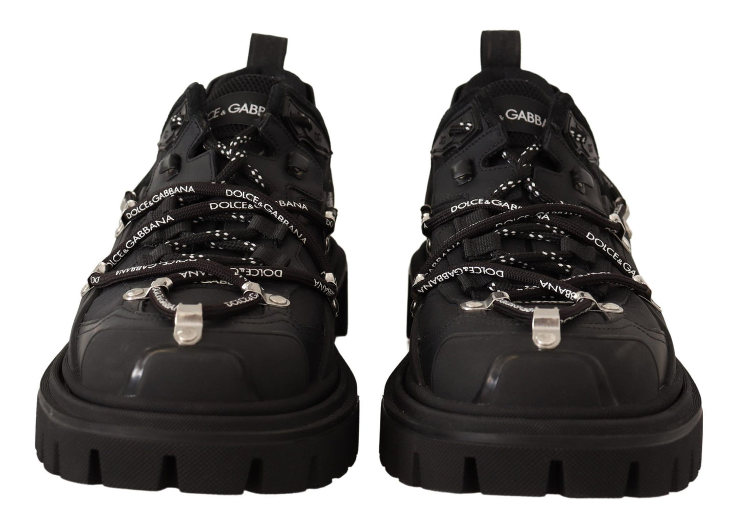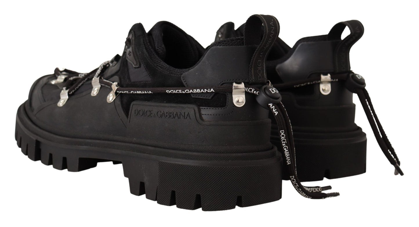 Discover the epitome of Italian craftsmanship with these exquisite sneakers from Dolce & Gabbana. Perfect for the modern man, these lace-up casual sneakers blend luxury with comfort. Their sleek black leather design, complemented by a durable rubber sole, makes them an ideal choice for any stylish ensemble. With the iconic logo detail, these shoes are sure to make a statement wherever you go. Made in Italy, they’re not just shoes, but a testament to high-end fashion and exclusivity.