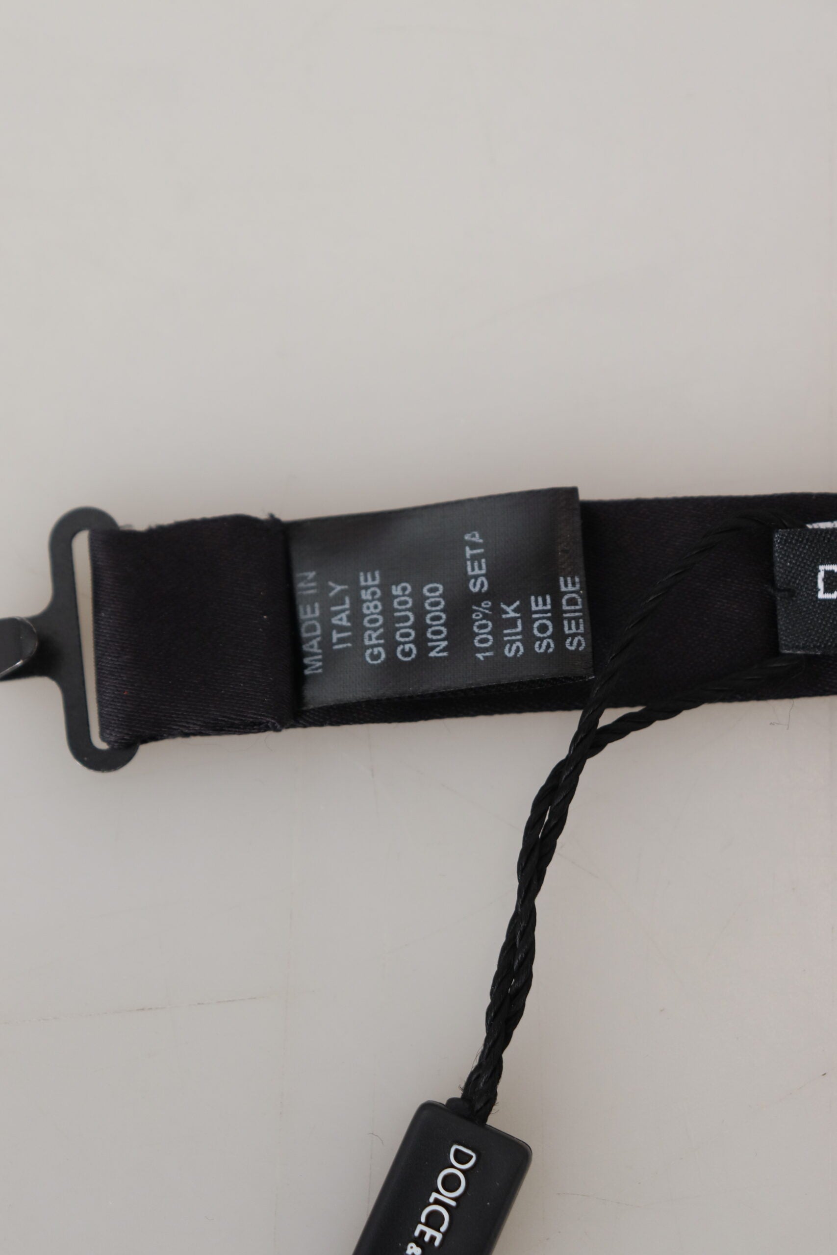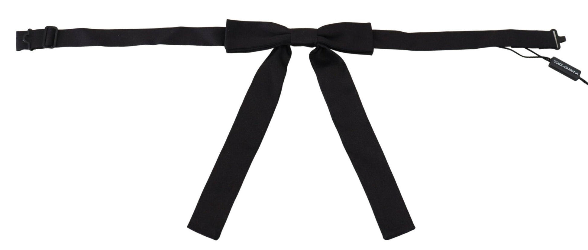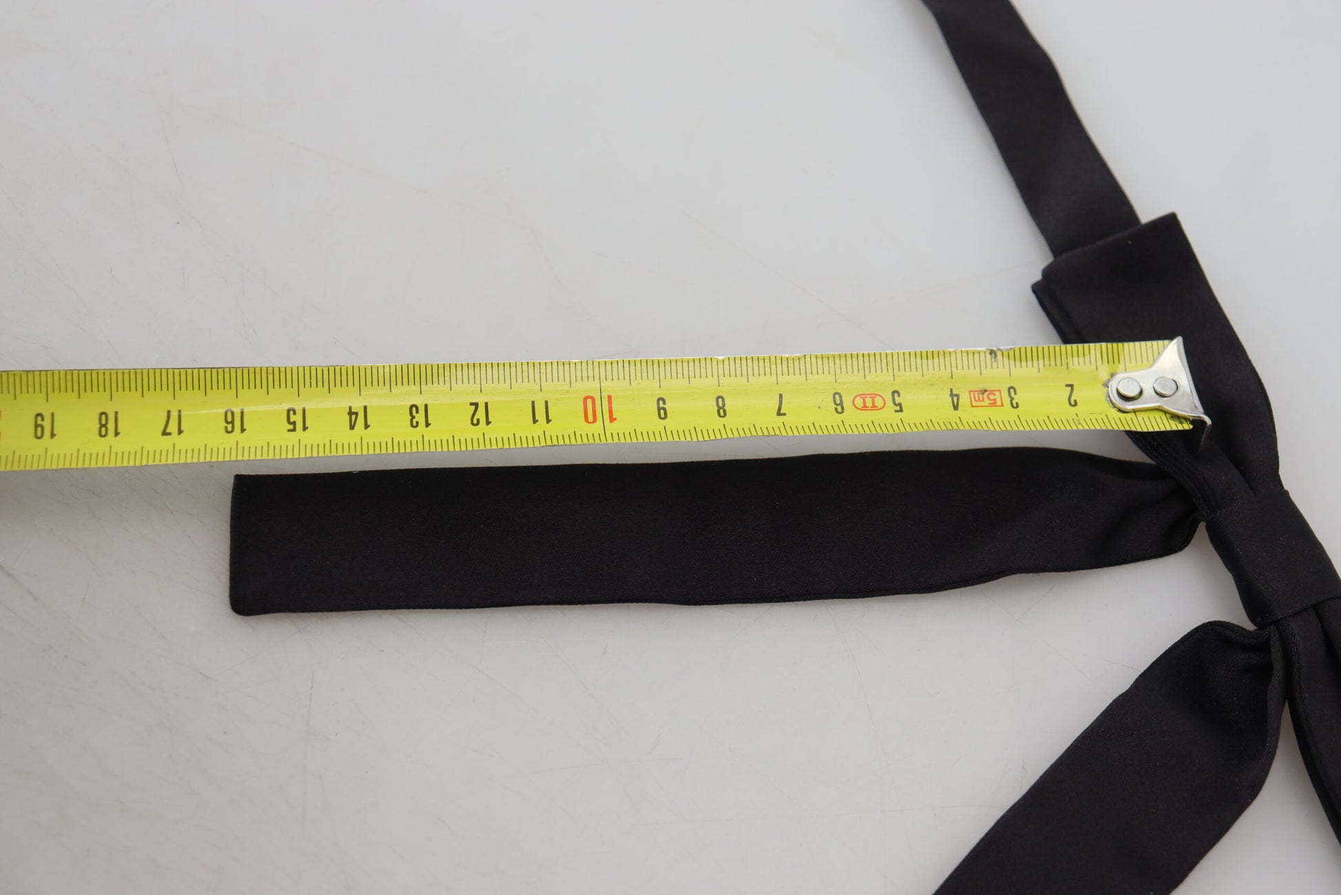 Introducing a touch of sophistication to your formal attire with this elegant black bow tie from Dolce & Gabbana. Crafted from sumptuous 100% silk, this tied model boasts a stylish design complemented by a convenient metal hook clasp for effortless wear. Made in Italy, this bow tie represents the pinnacle of luxury accessories and is sure to make a suave statement at any high-profile event.