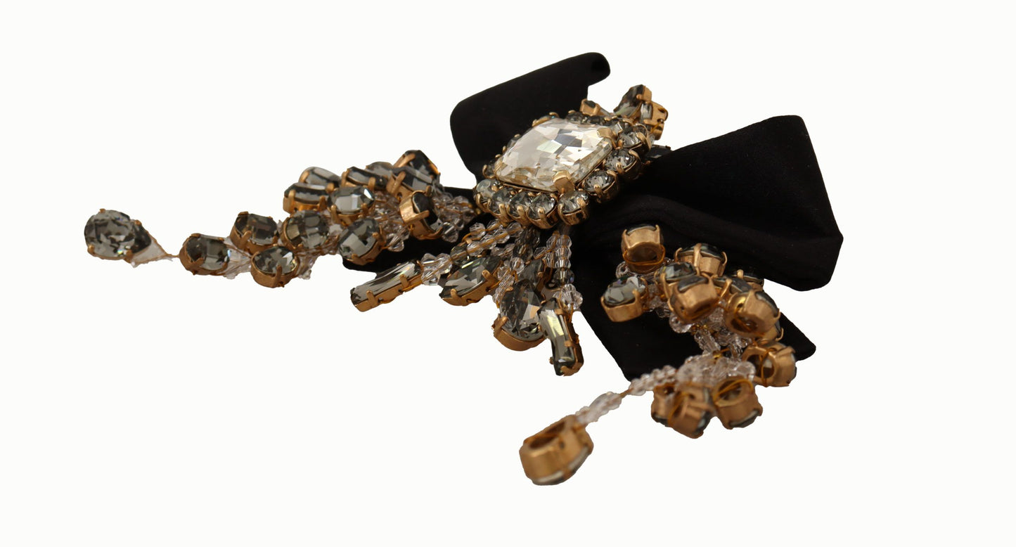 Discover the epitome of Italian craftsmanship with this stunning Dolce & Gabbana Black Silk Hairband, a perfect blend of elegance and style. Adorned with sparkling clear and grey crystals set against gold metal detailing, this luxurious hair accessory is sure to turn heads. Crafted from a sumptuous combination of silk, crystal, and brass, it’s designed to add a touch of opulent charm to your ensemble. Whether it’s a sophisticated evening event or a chic daytime gathering, this hairband clip from Dolce & Gabbana, made with love in Italy, promises to elevate your look with its exquisite bow style and prominent logo details.