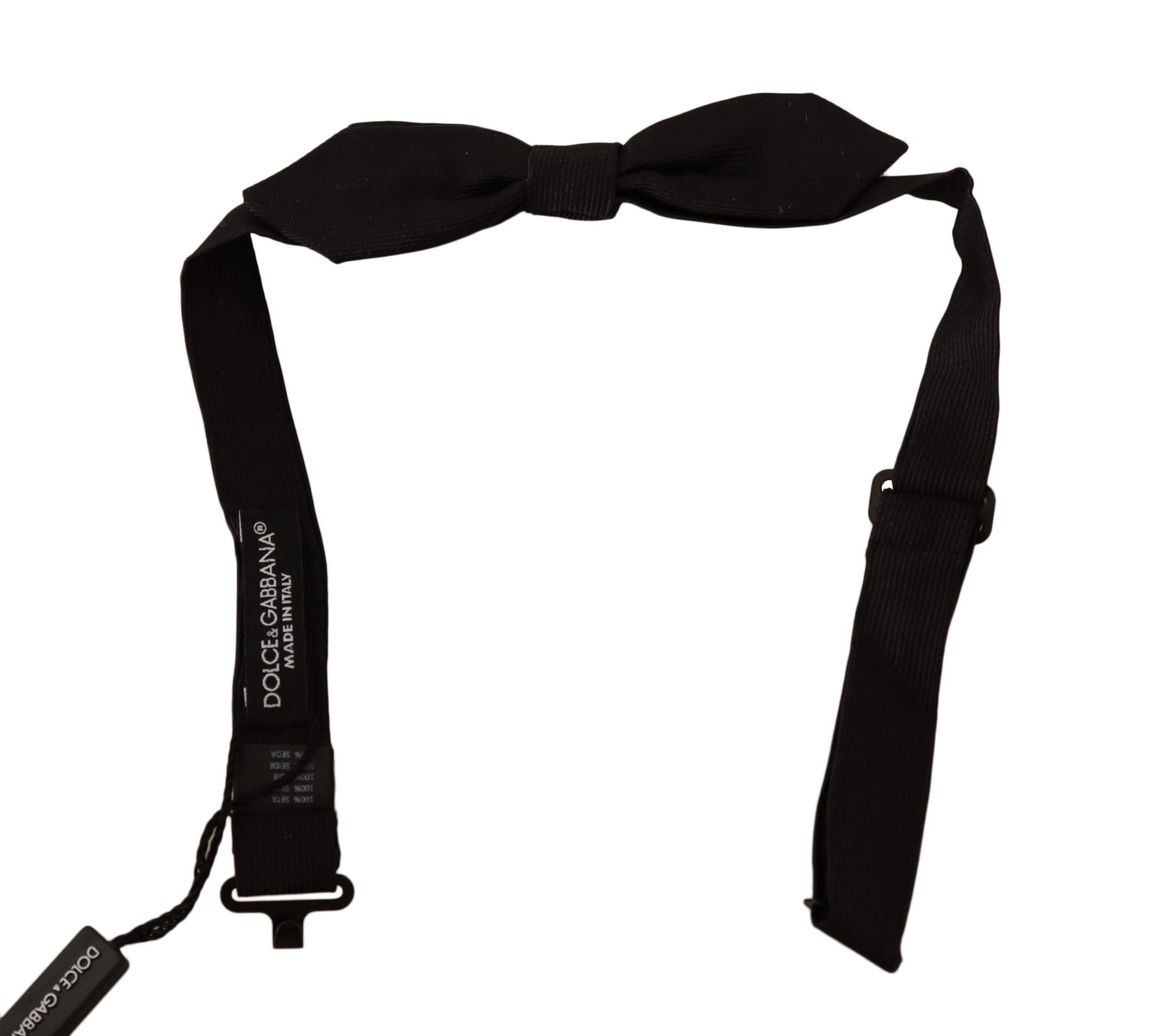 Accentuate your evening attire with this exquisite Dolce & Gabbana silk bow tie. Crafted with impeccable attention to detail, this luxurious accessory features a refined metal clasp, ensuring a perfect shape and fit to elevate your formal look. Made in Italy, it exemplifies sophistication and is a must-have for any gentleman’s wardrobe.