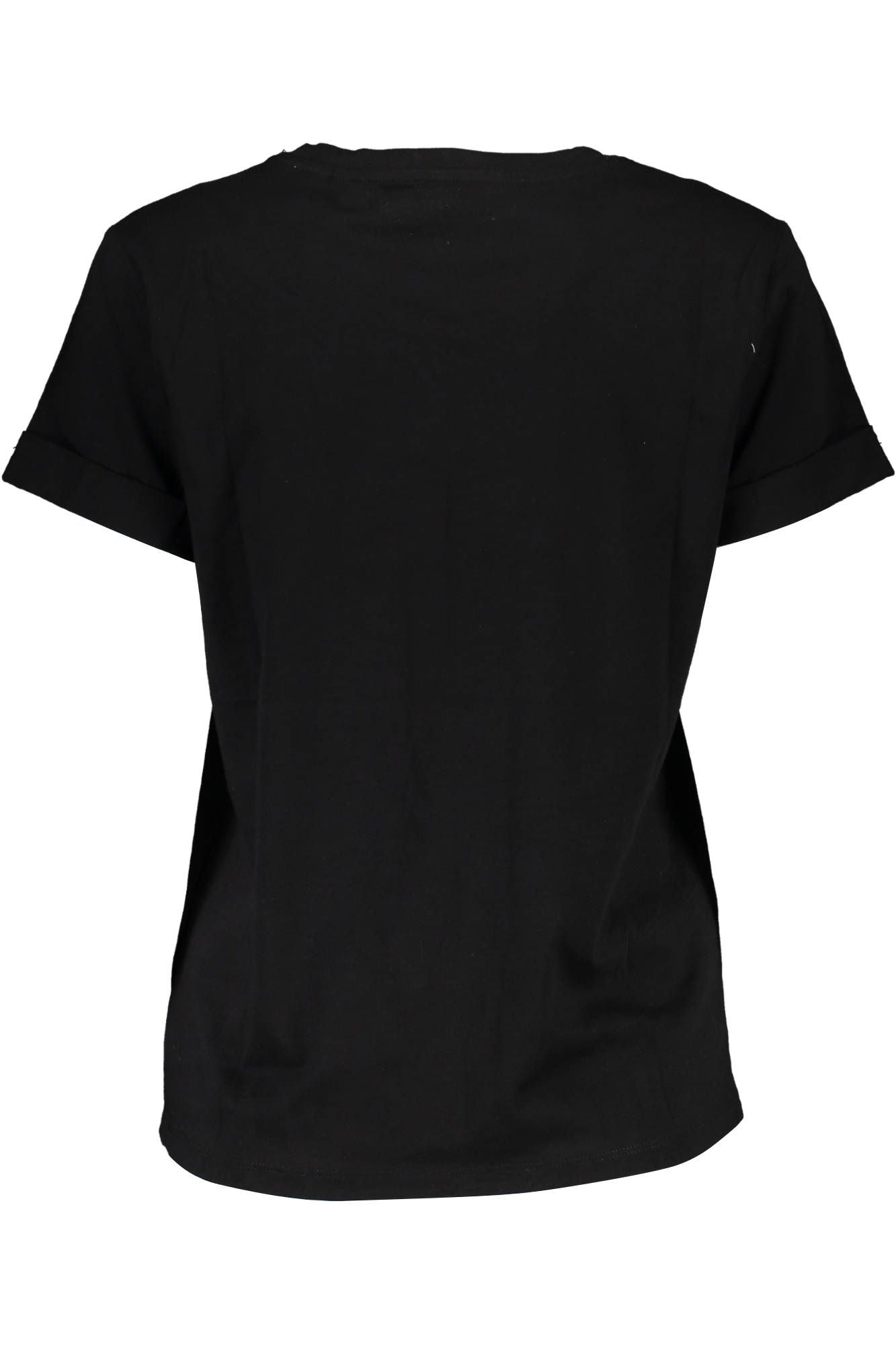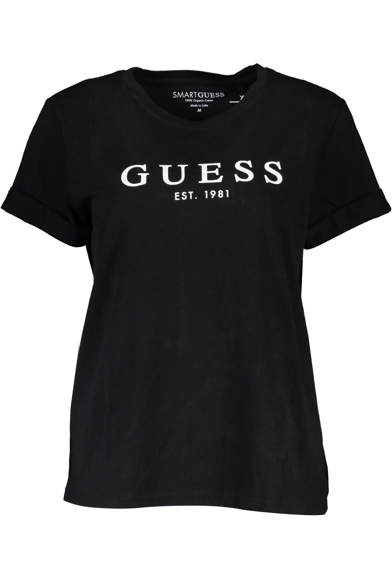 Embrace effortless style with our sleek black t-shirt from Guess Jeans. Crafted from premium organic cotton for maximum comfort and sustainability, this tee features an elegant wide neckline partnered with a distinct print and the iconic Guess logo, making it a versatile addition to your wardrobe.
